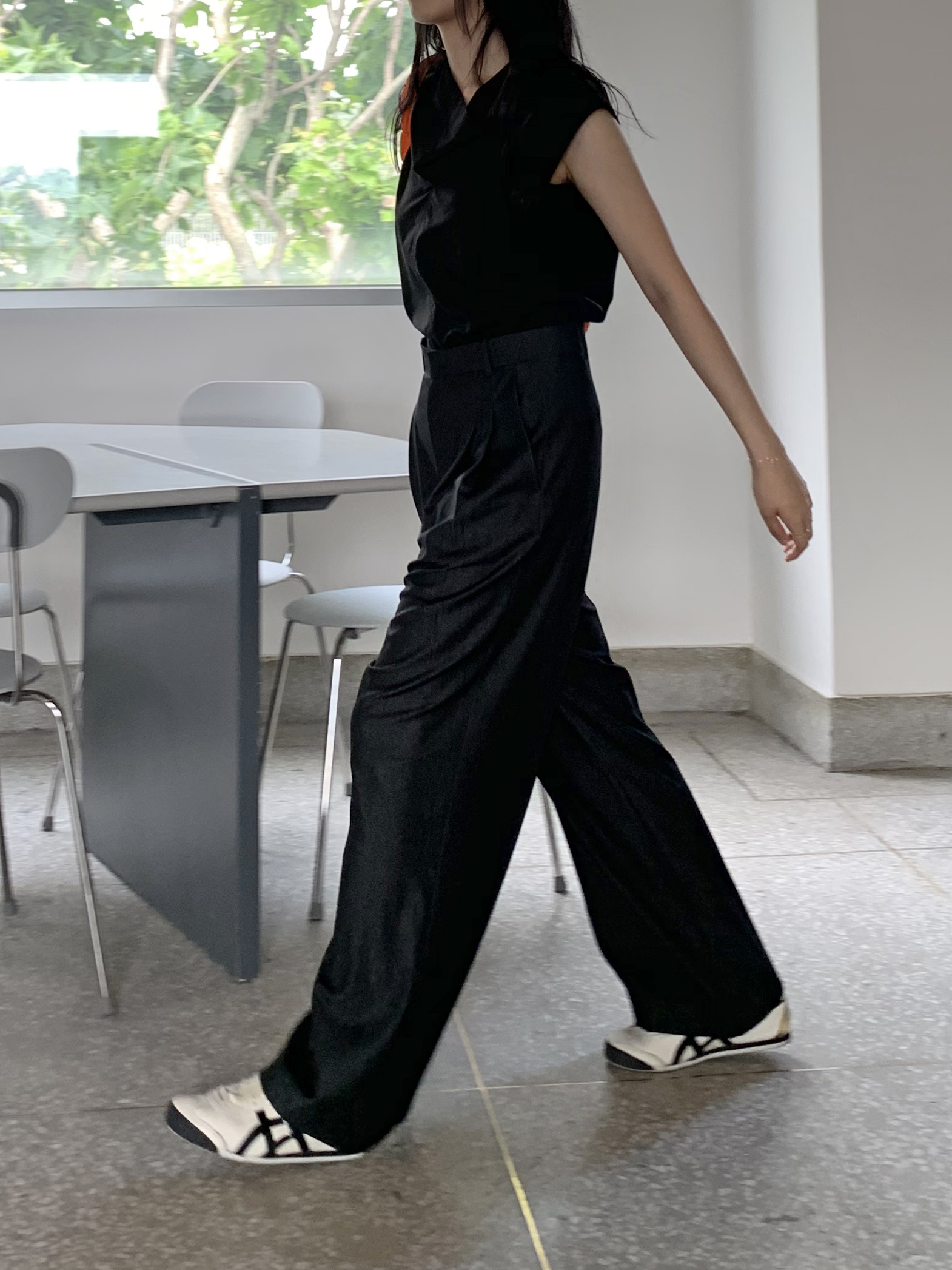 차르르한 소재와 만나 유연한 실루엣이 더욱 멋지게 연출되어요 :)