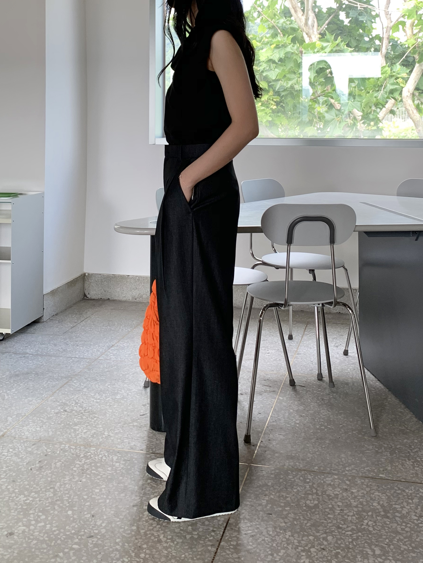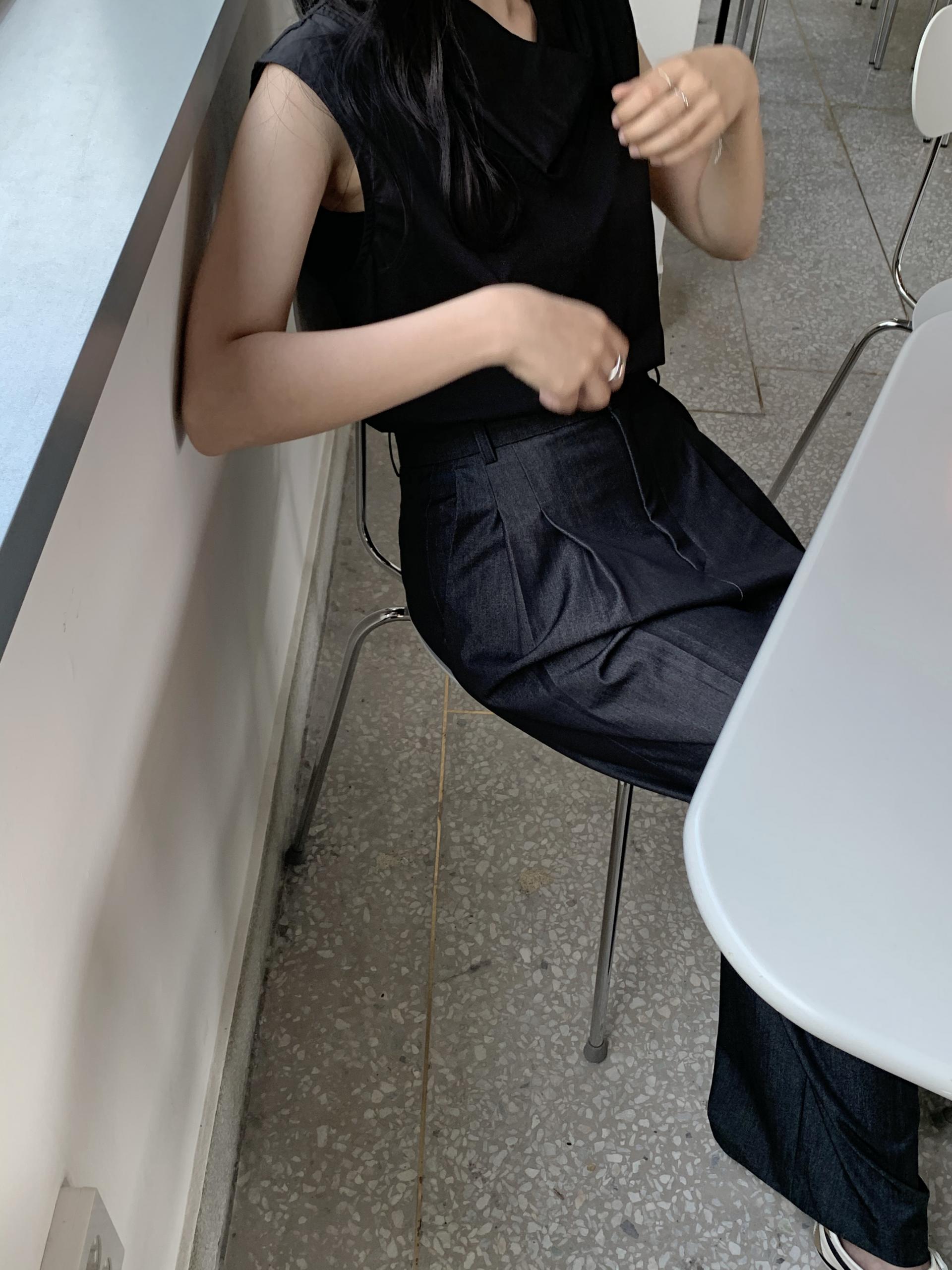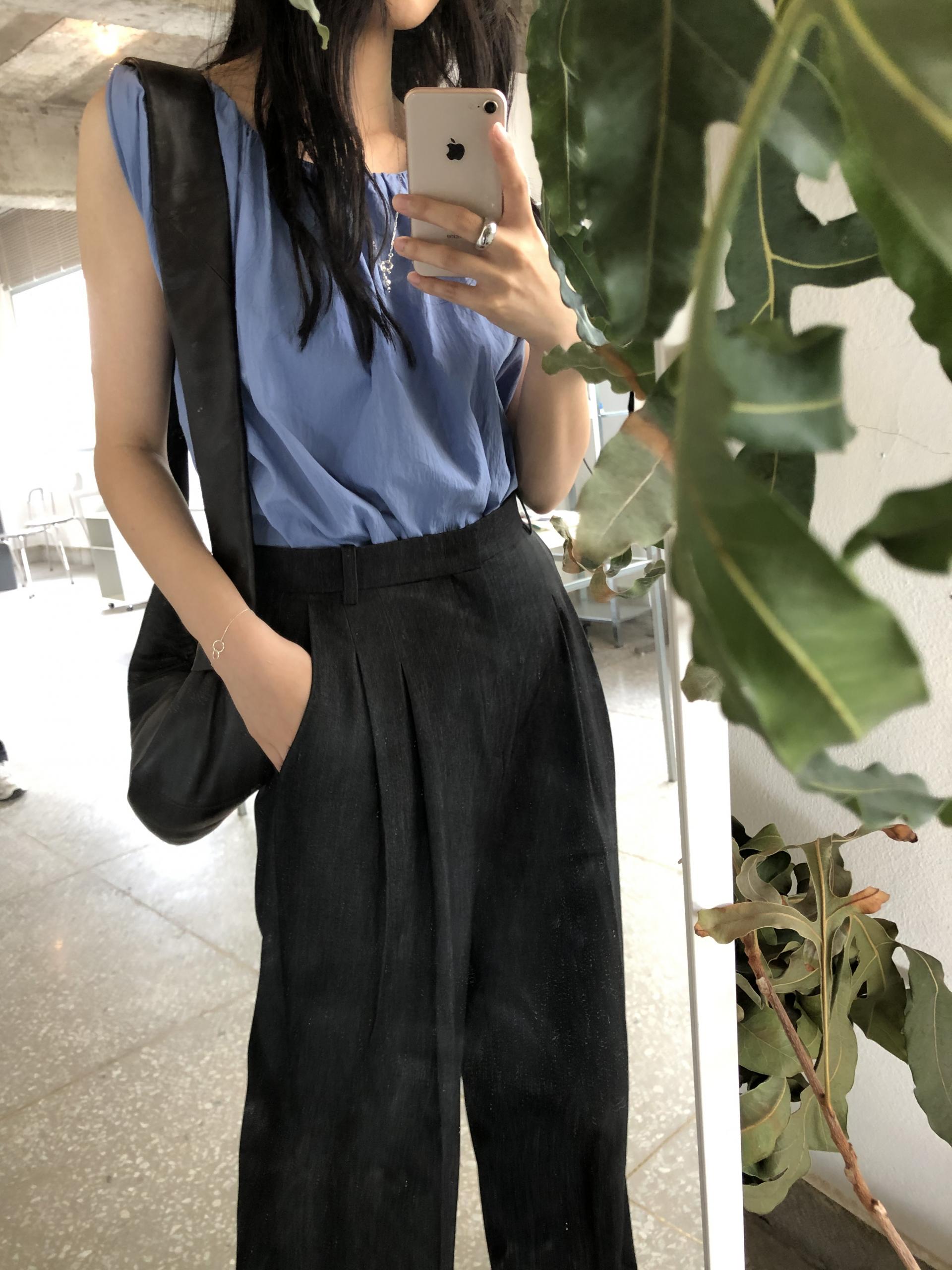 여름과 잘 어울리는 진청과 좀 더 딥한 흑청컬러로 생지 원단같은 느낌을 내지만 실제 데님이 아니기 때문에 이염 걱정 없이 편하게 착용이 가능해요.
