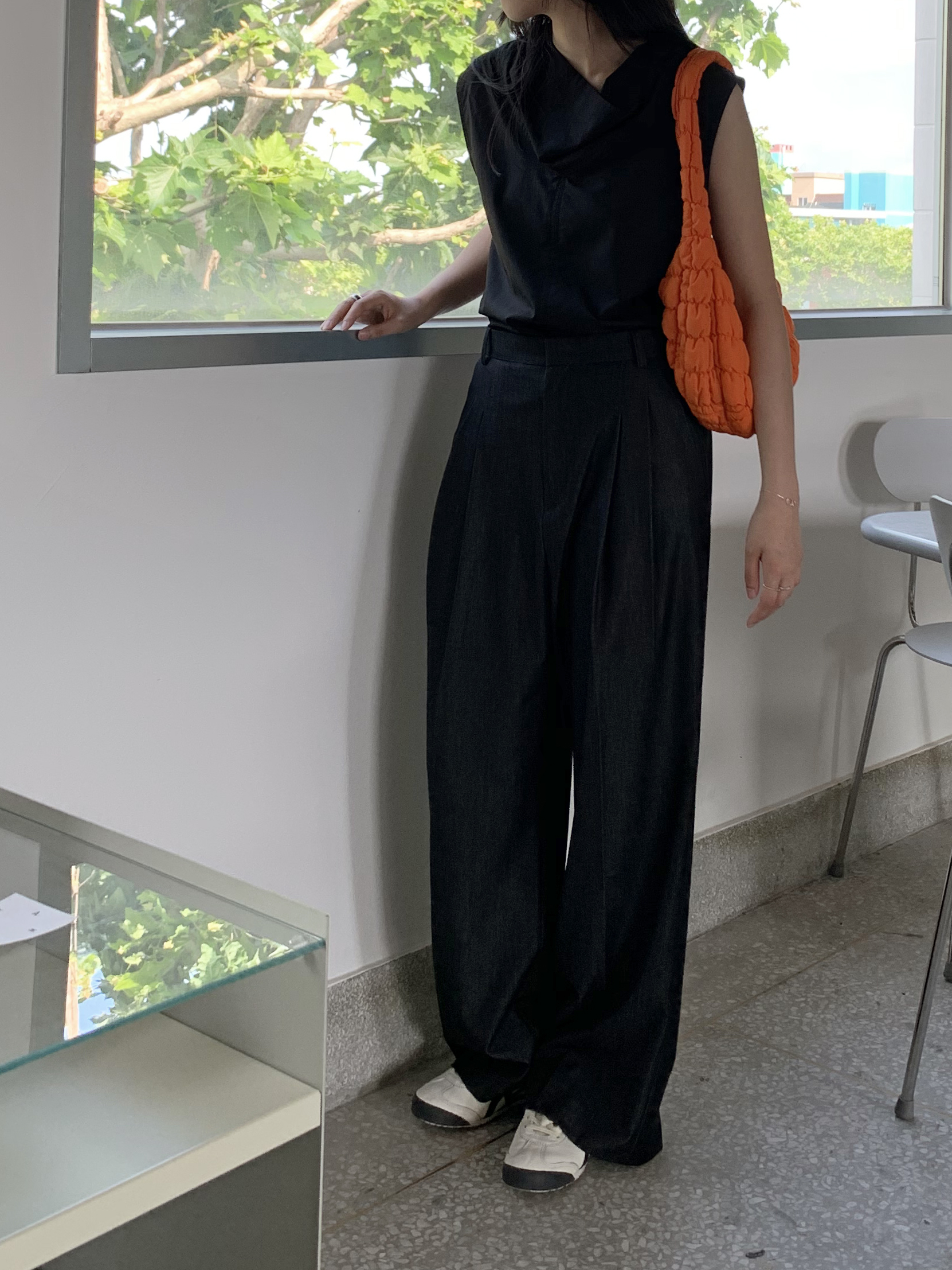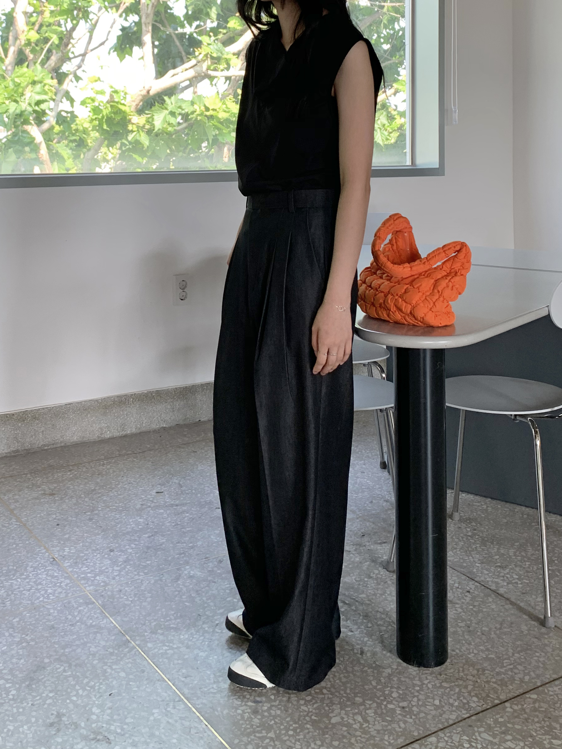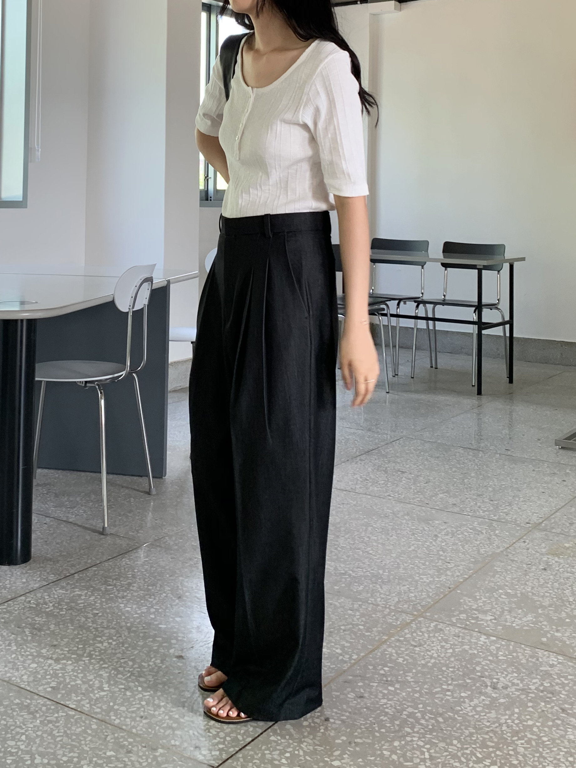 여름과 잘 어울리는 진청과 좀 더 딥한 흑청컬러로 생지 원단같은 느낌을 내지만 실제 데님이 아니기 때문에 이염 걱정 없이 편하게 착용이 가능해요.