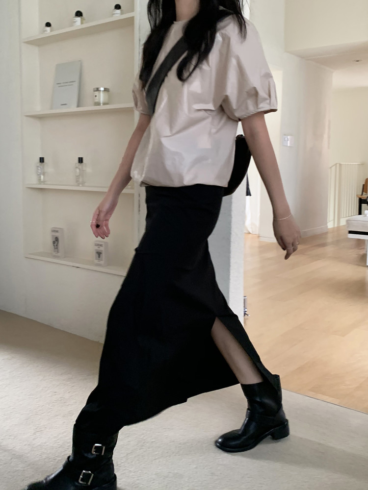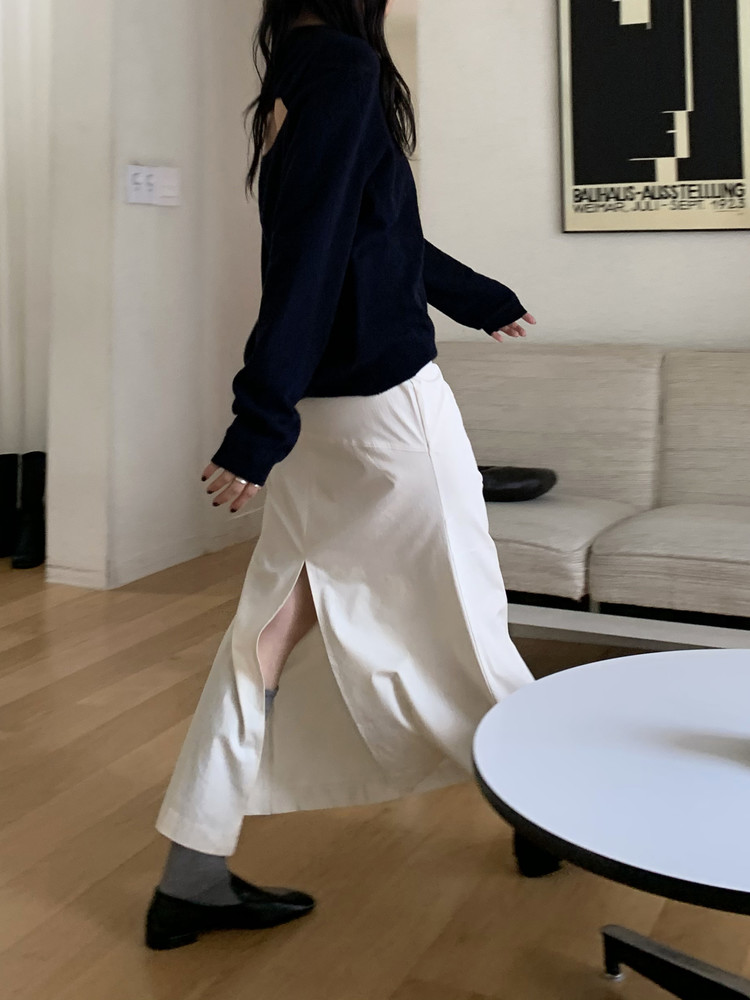 크림, 블랙 두가지 컬러로 보여드려요. 미니멀하면서도 심심하지 않은, 핏에 충실한 스커트라 여기저기, 오래오래 입을 수 있을 것 같아요. 두 컬러 모두 추천드려요!