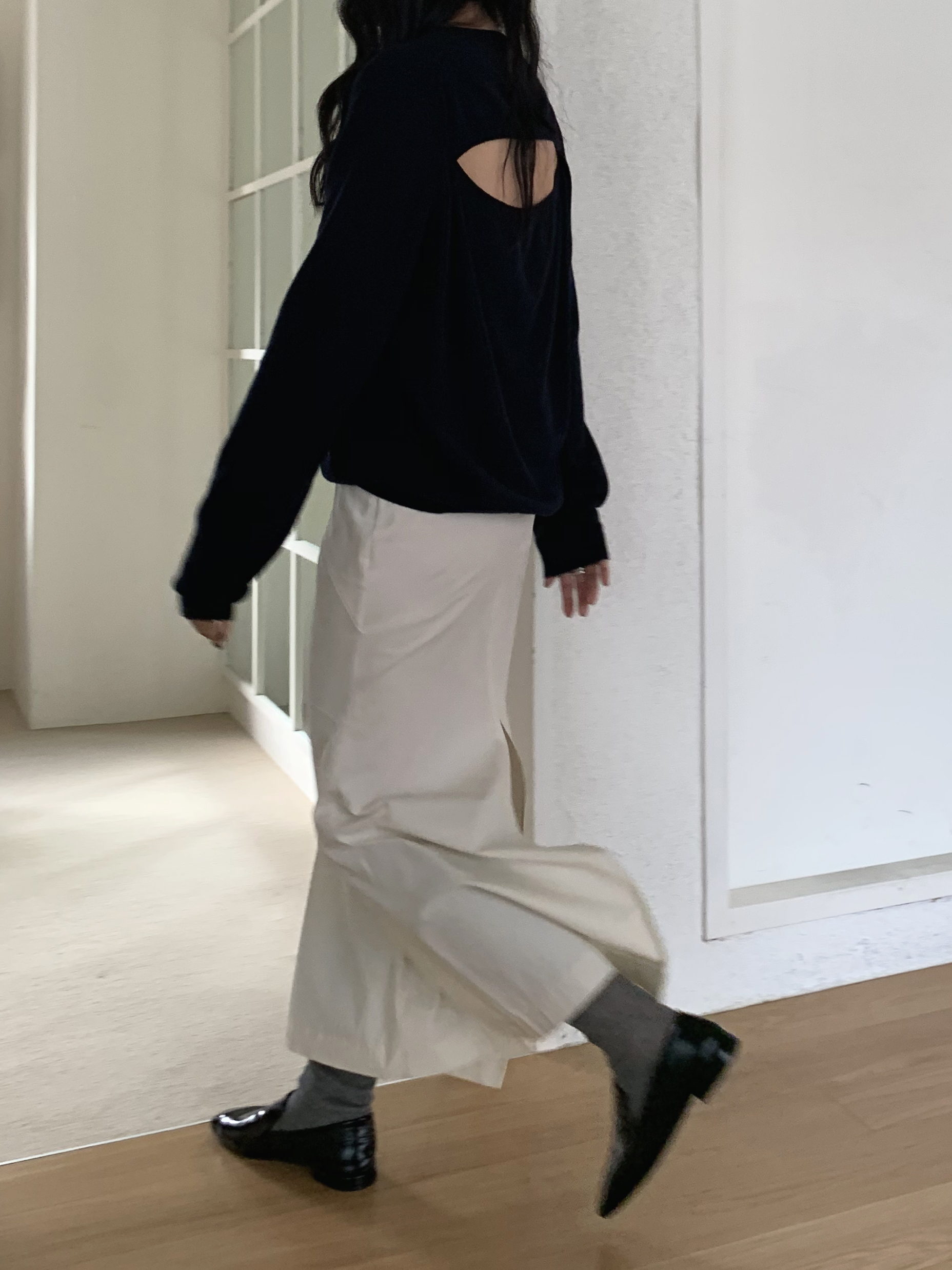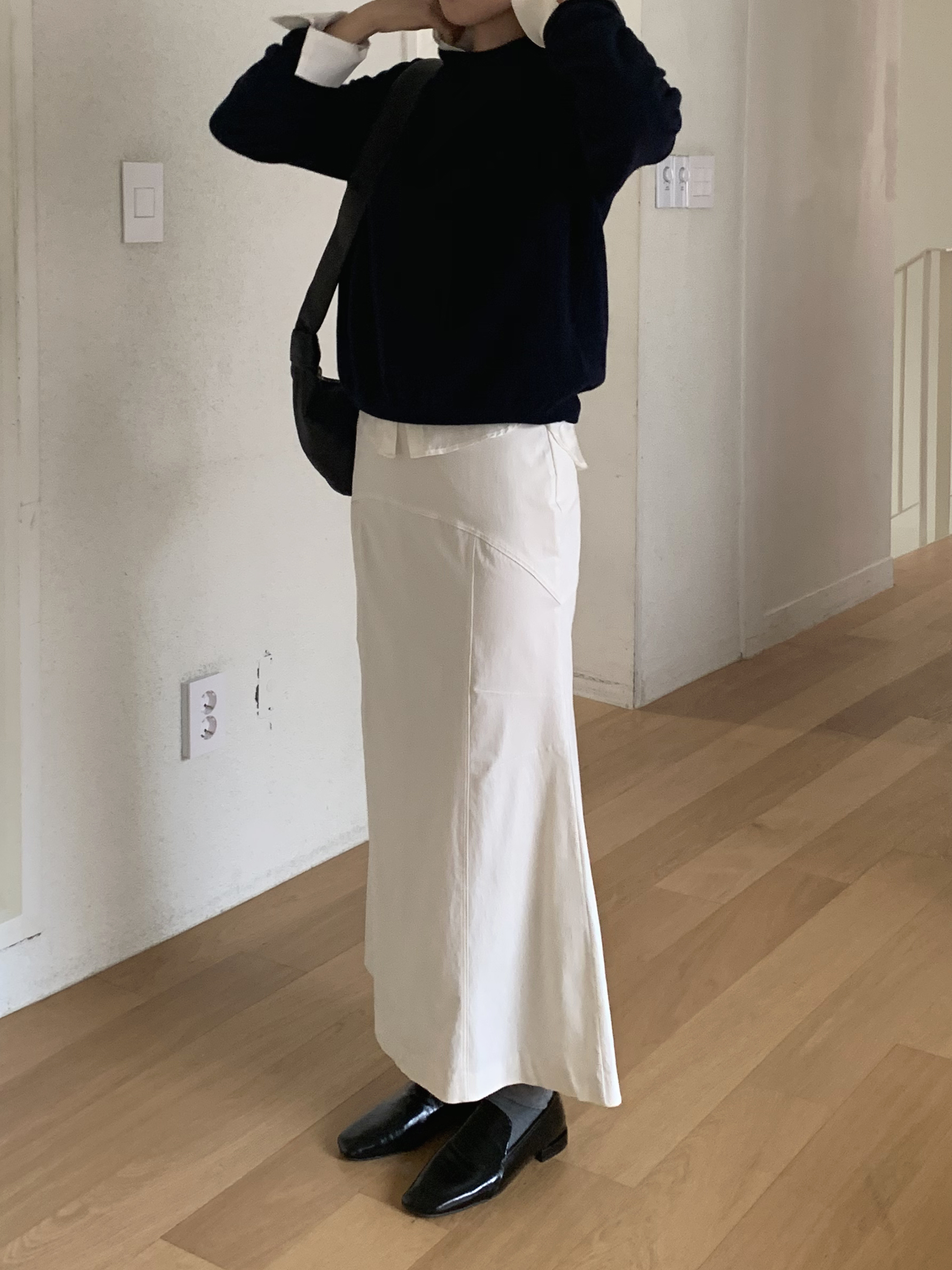 기존에 보여드렸던 실루엣과는 조금 다른 스커트라 더 마음에 들었어요.