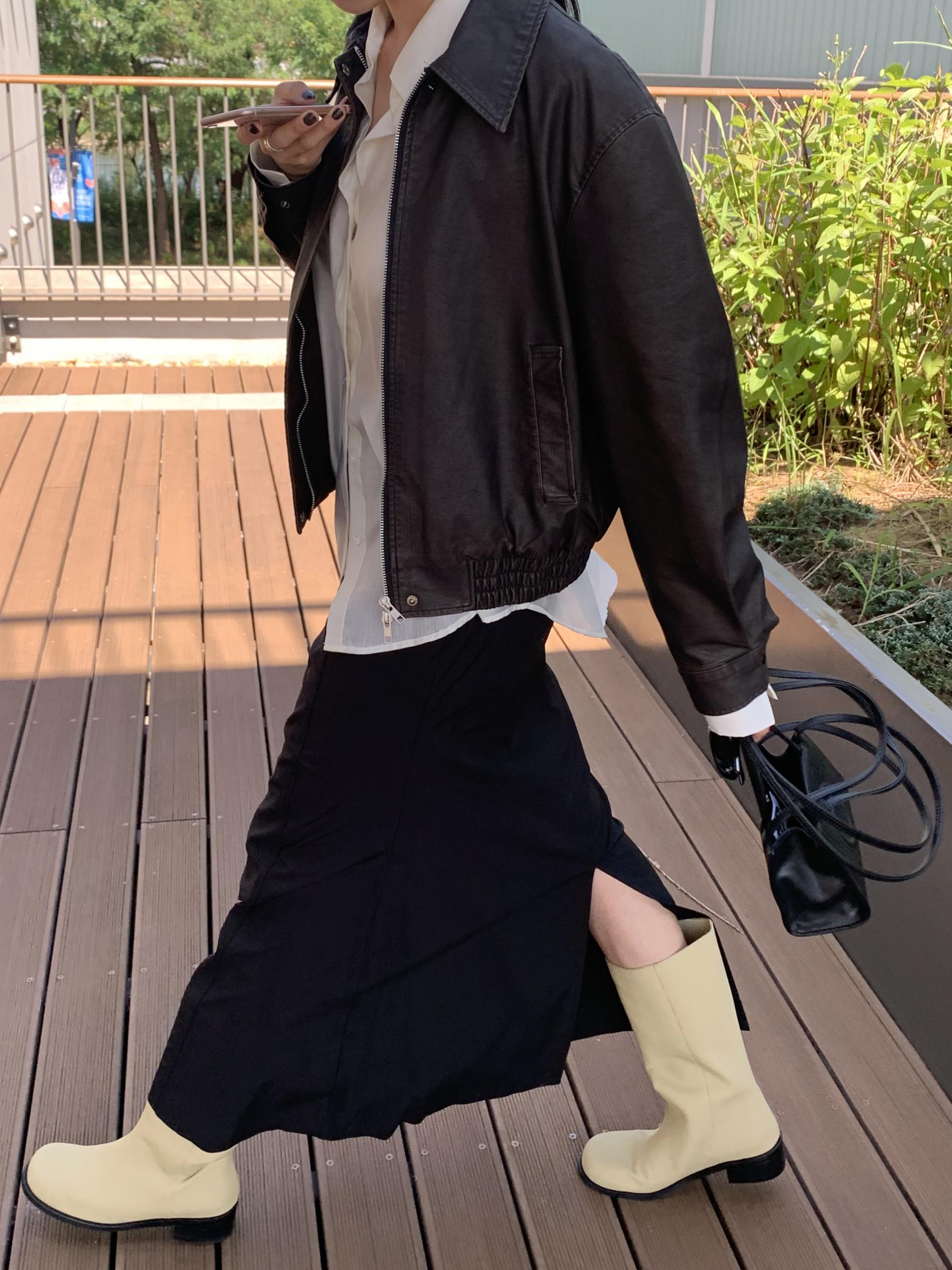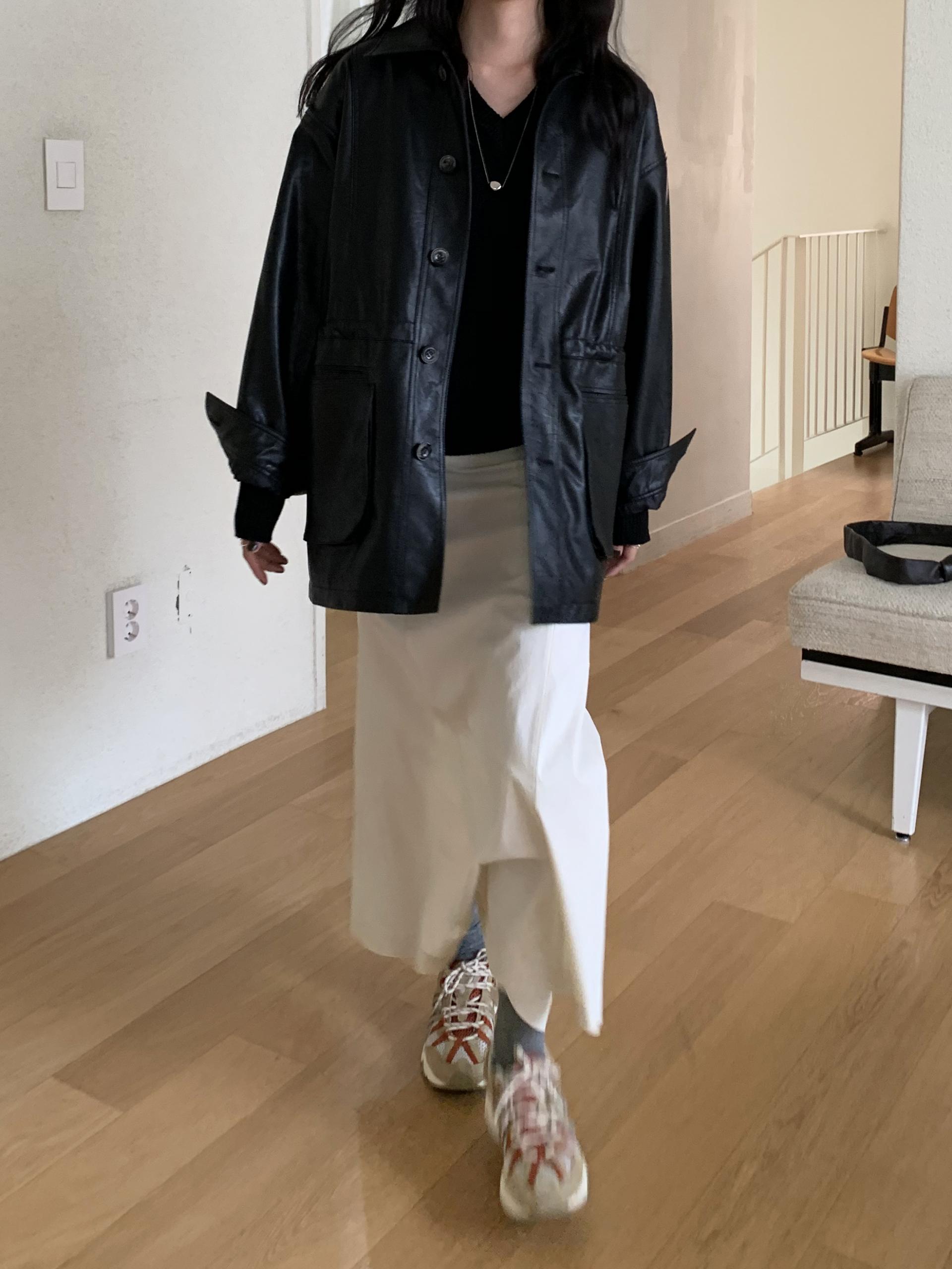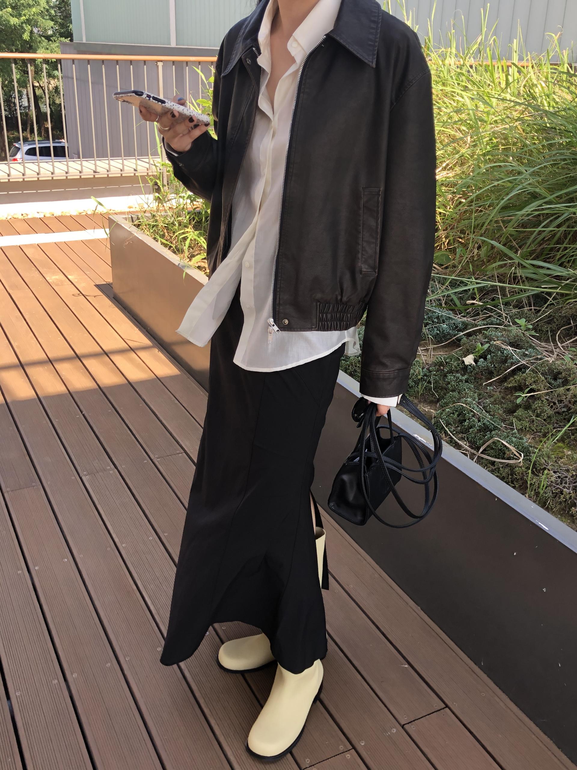 봄부터 초가을까지 즐길 수 있는 적당히 얇은 두께감으로 실루엣이 더욱 잘 사는 느낌이에요.