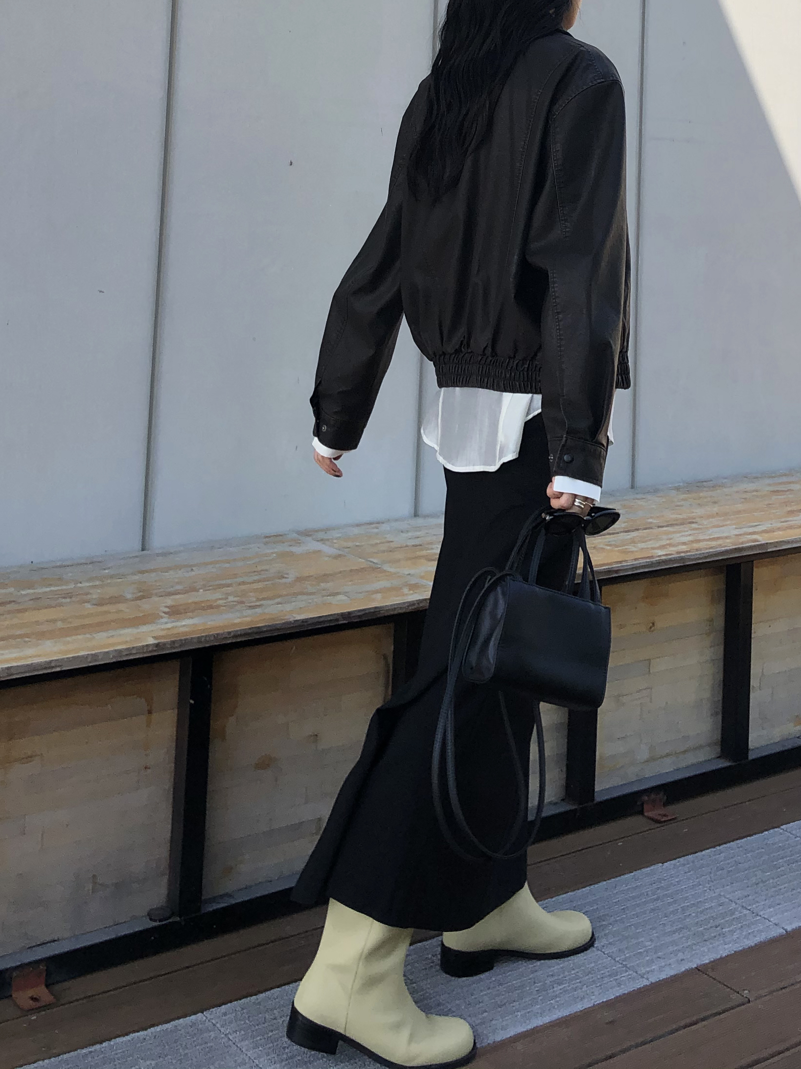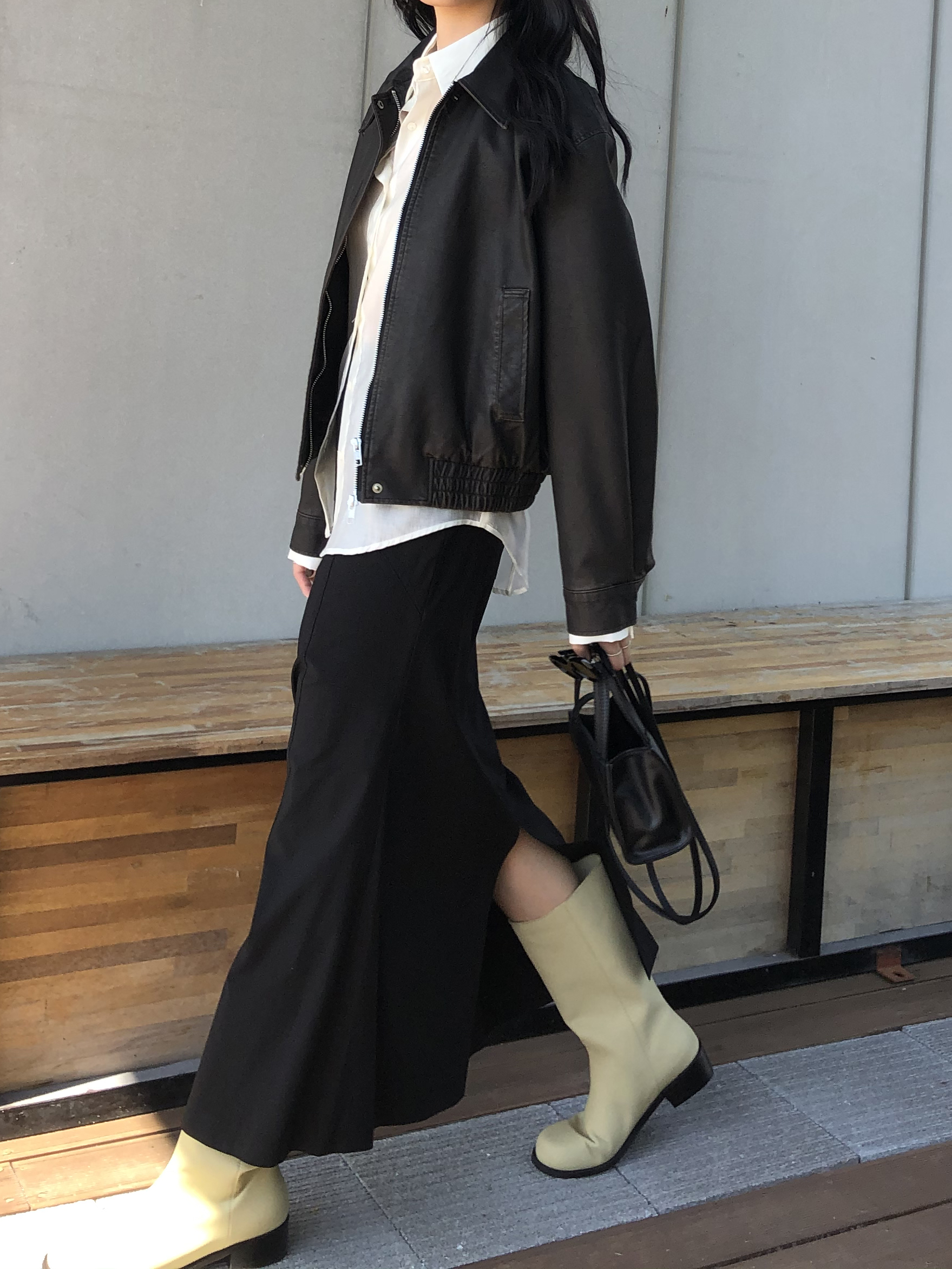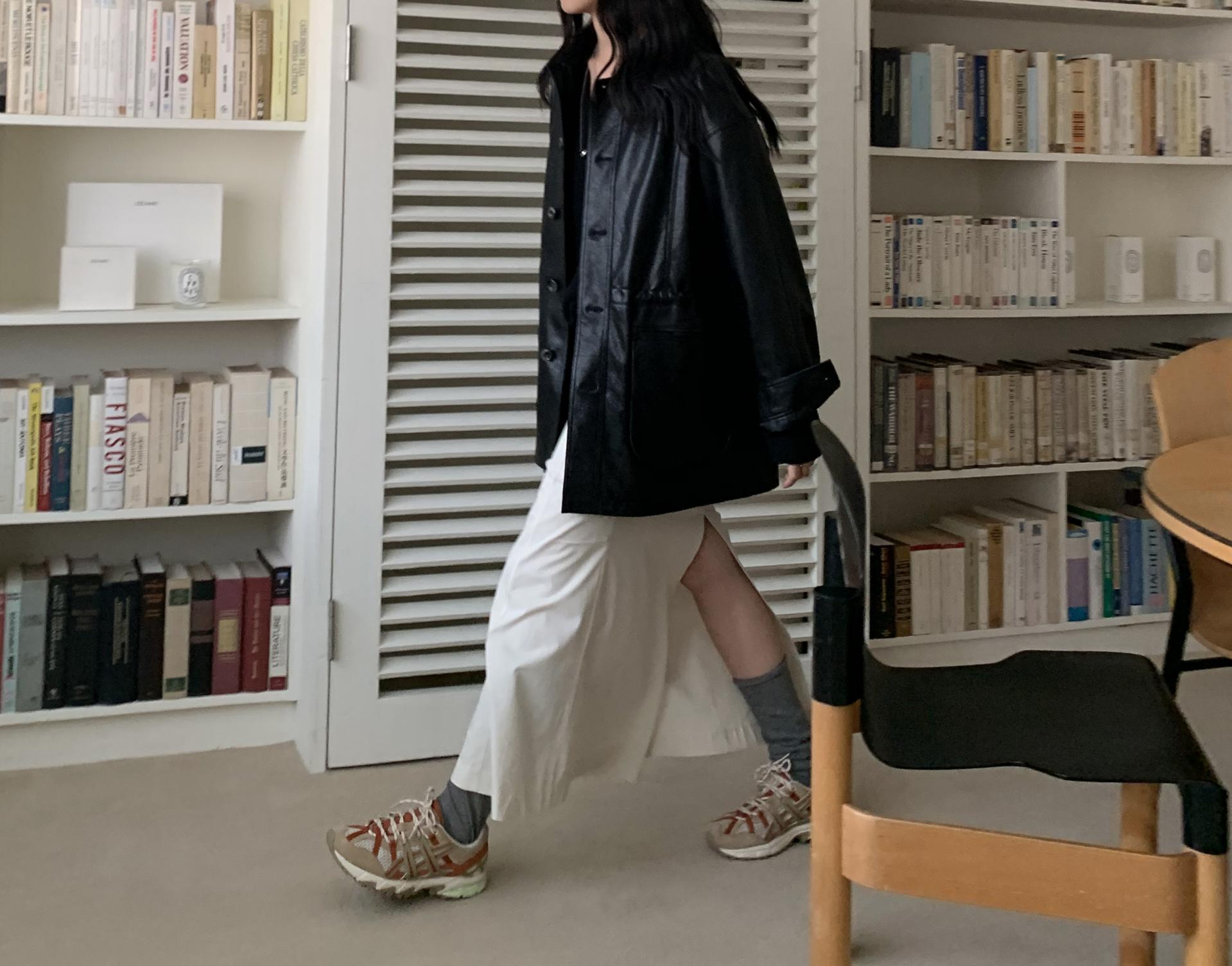 봄부터 초가을까지 즐길 수 있는 적당히 얇은 두께감으로 실루엣이 더욱 잘 사는 느낌이에요.