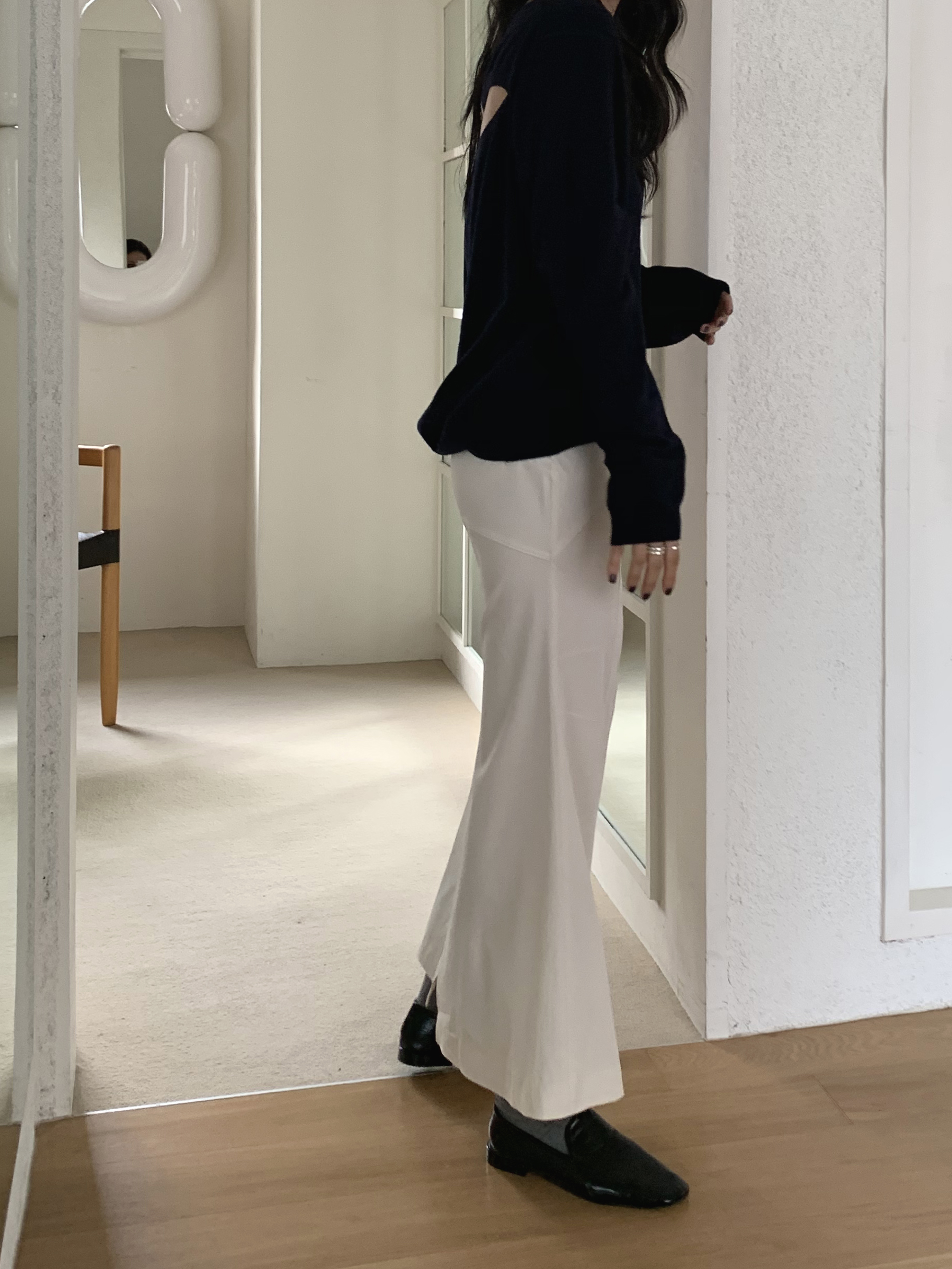 일반 H라인보다 조금 더 드라마틱하게 연출할 수 있어요. 그렇다고 과하거나 하는 느낌 전혀 없이 니트, 셔츠, 자켓 등 어디에 입어도 정말 만족스러웠답니다.