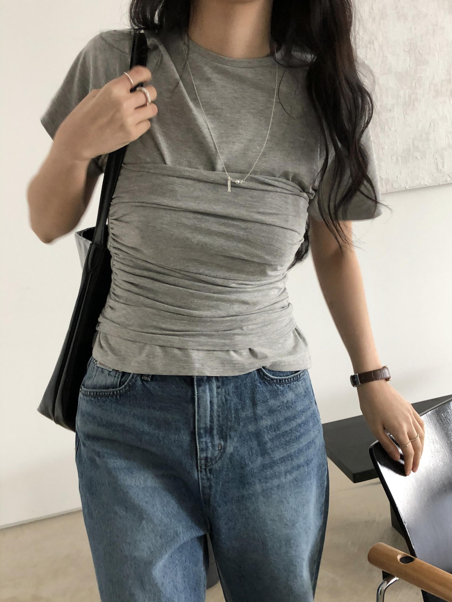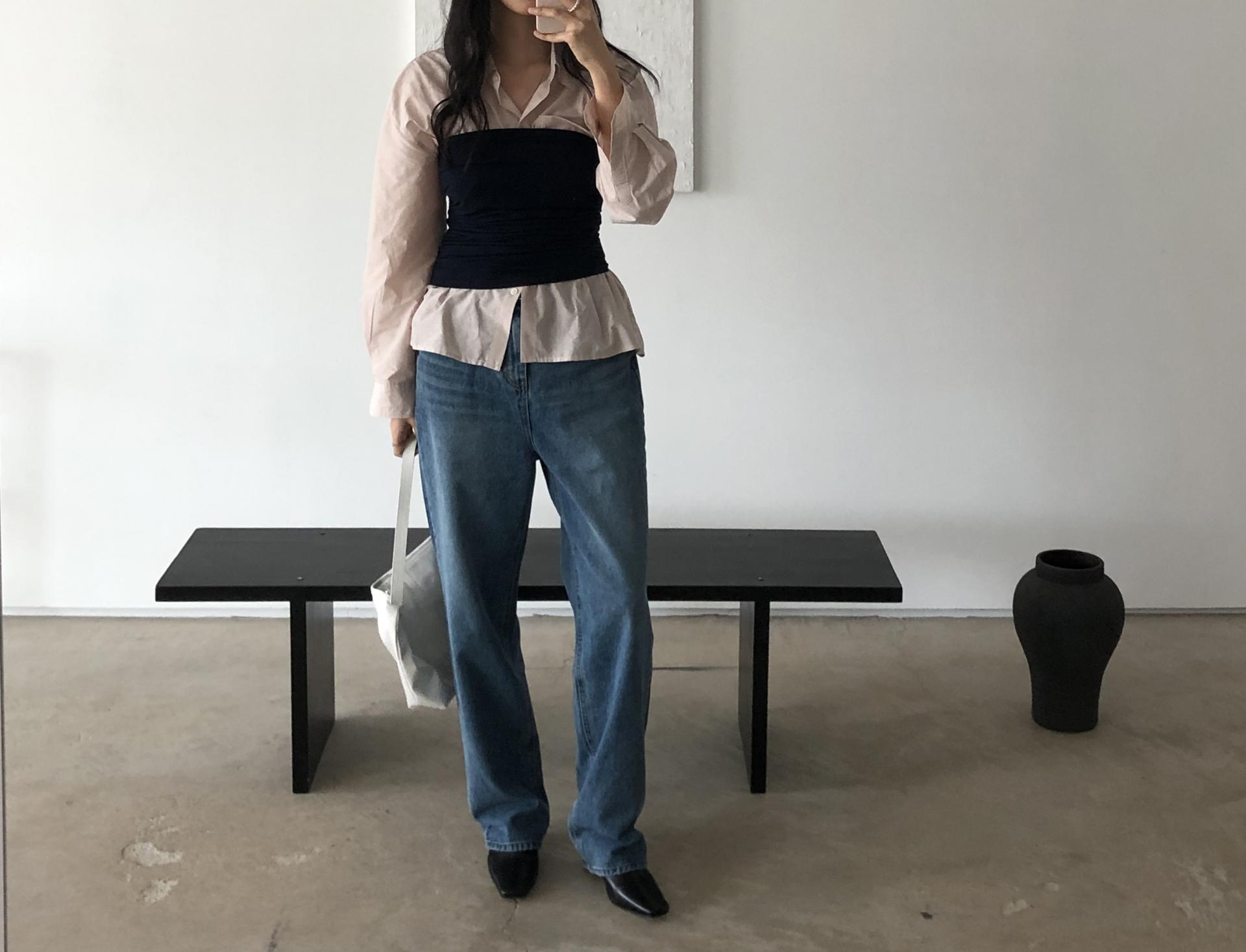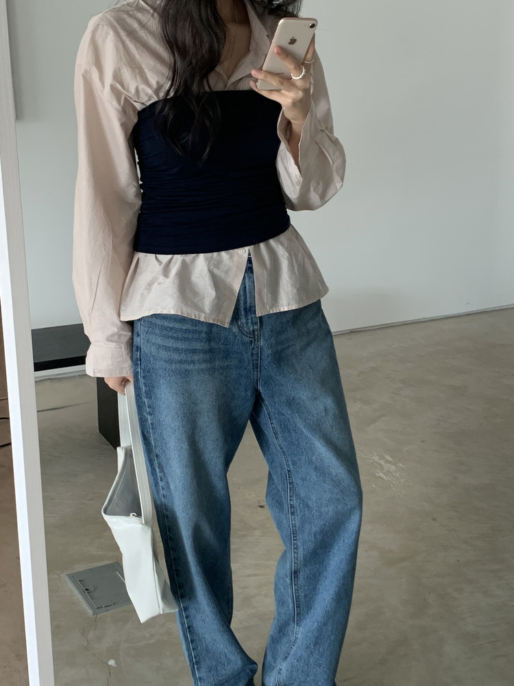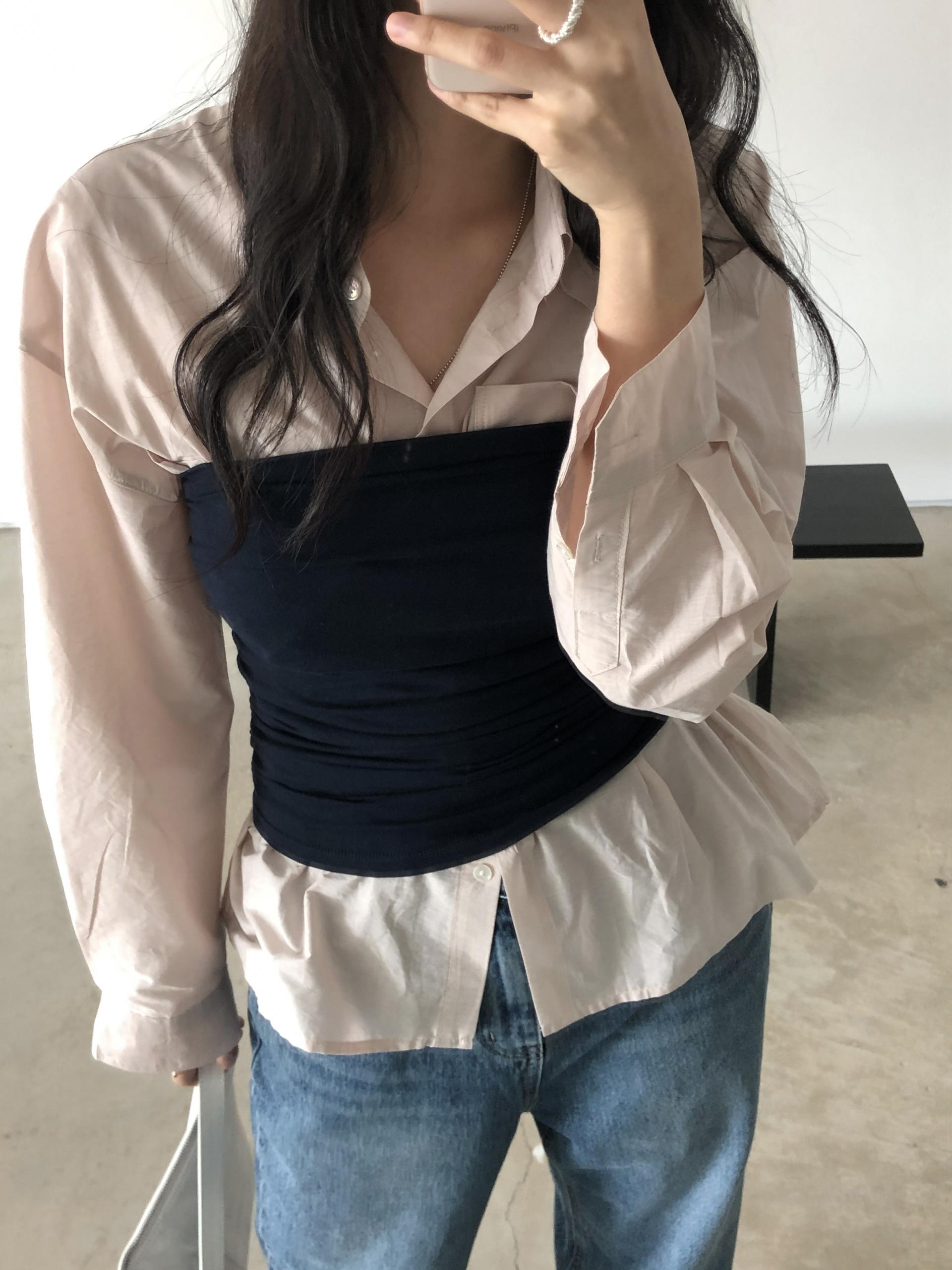자연스럽고 섬세한 셔링이 잡힌 뷔스티에는 티셔츠와 세트로 착용하셔도 좋고, 다른 티셔츠 혹은 블라우스, 셔츠와 연출해도 좋답니다.