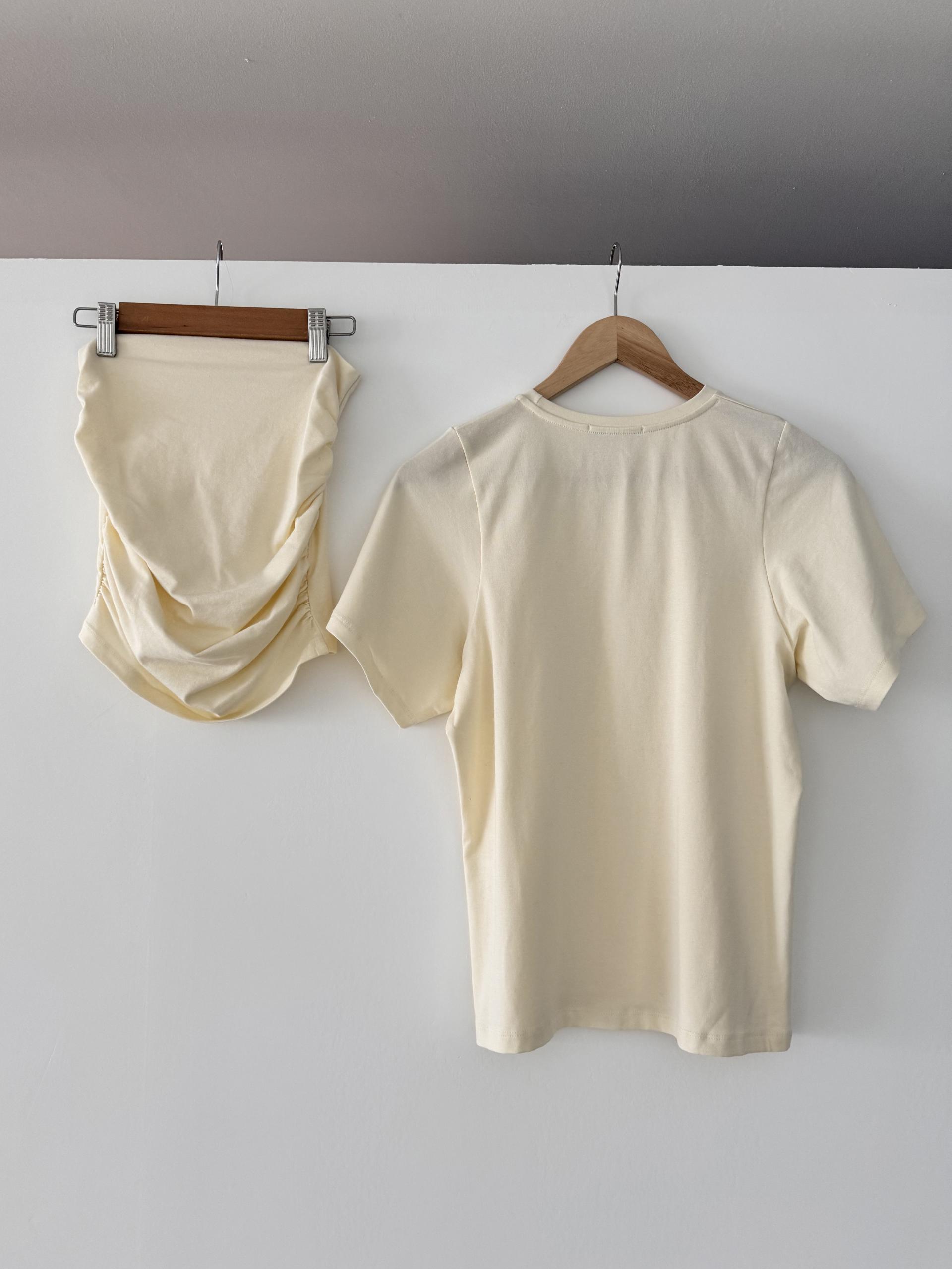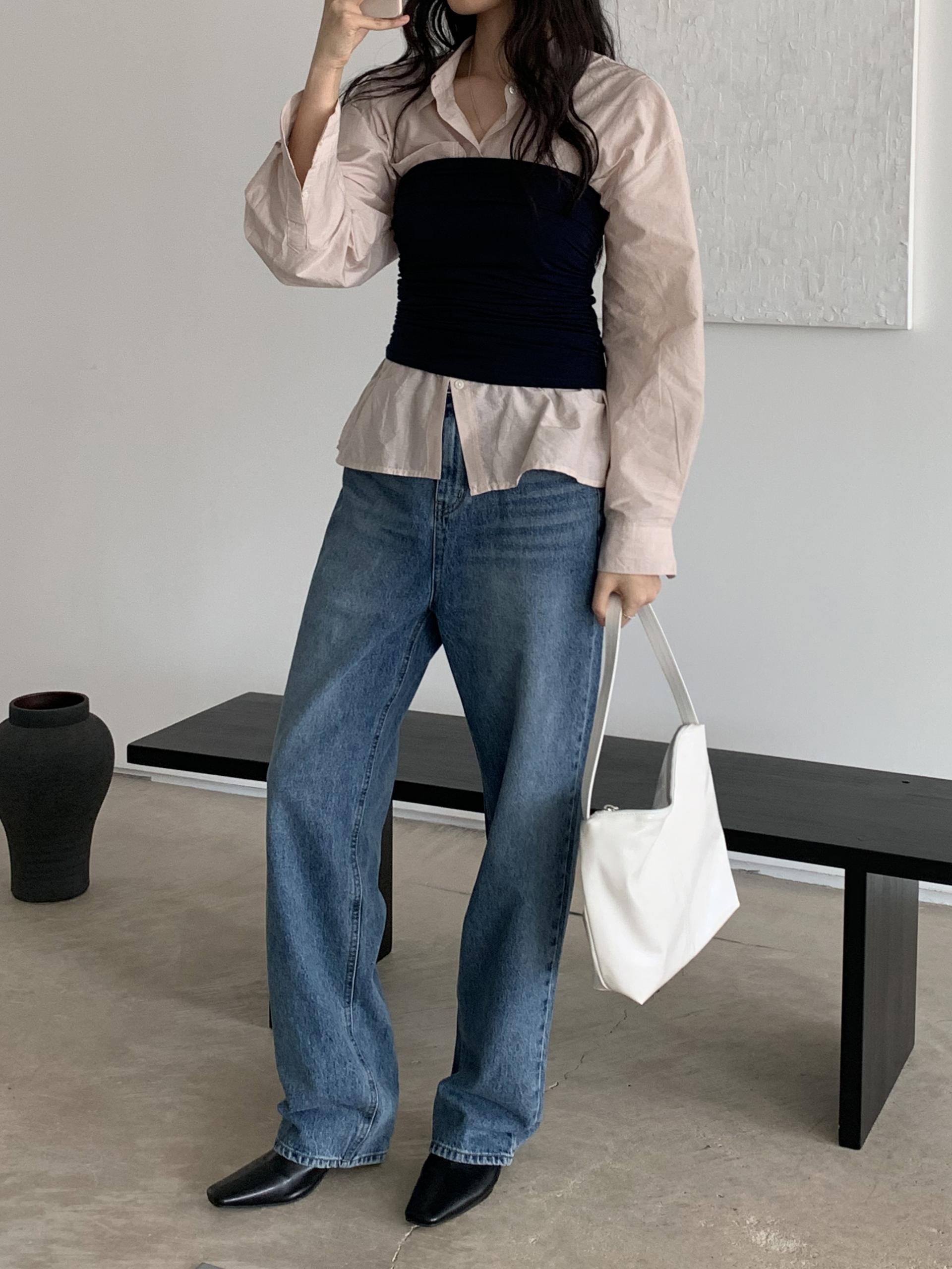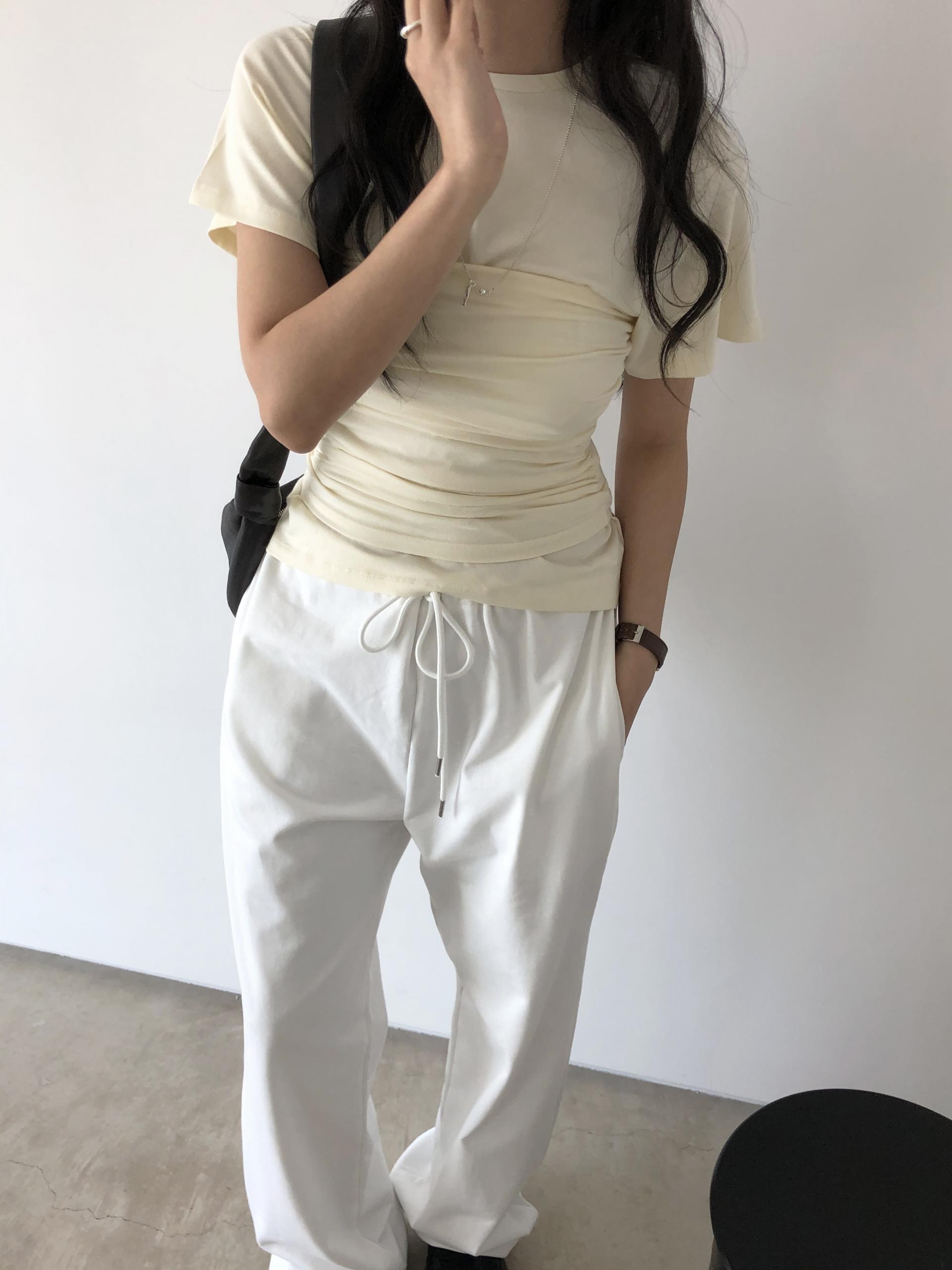 자연스럽고 섬세한 셔링이 잡힌 뷔스티에는 티셔츠와 세트로 착용하셔도 좋고, 다른 티셔츠 혹은 블라우스, 셔츠와 연출해도 좋답니다.