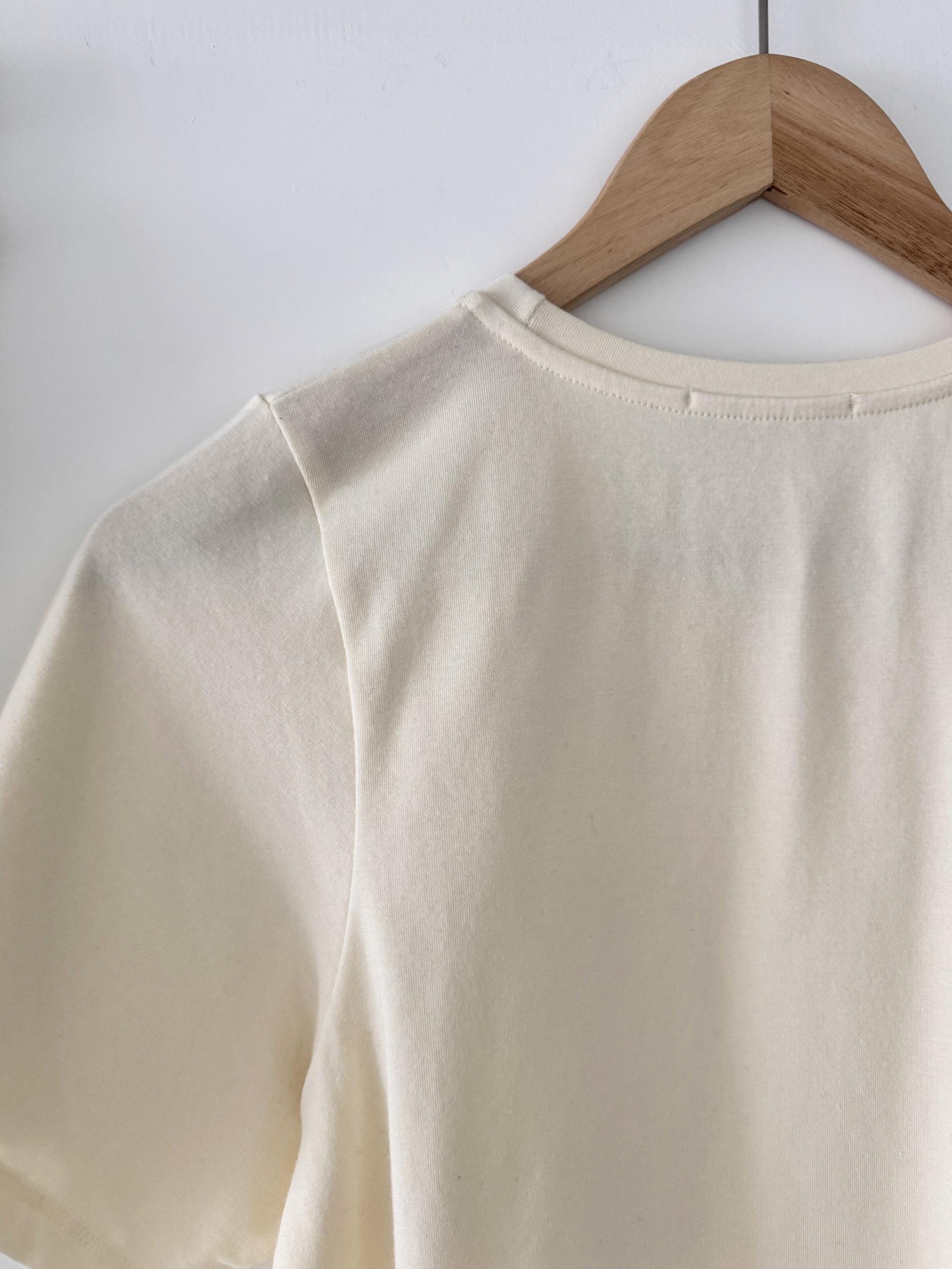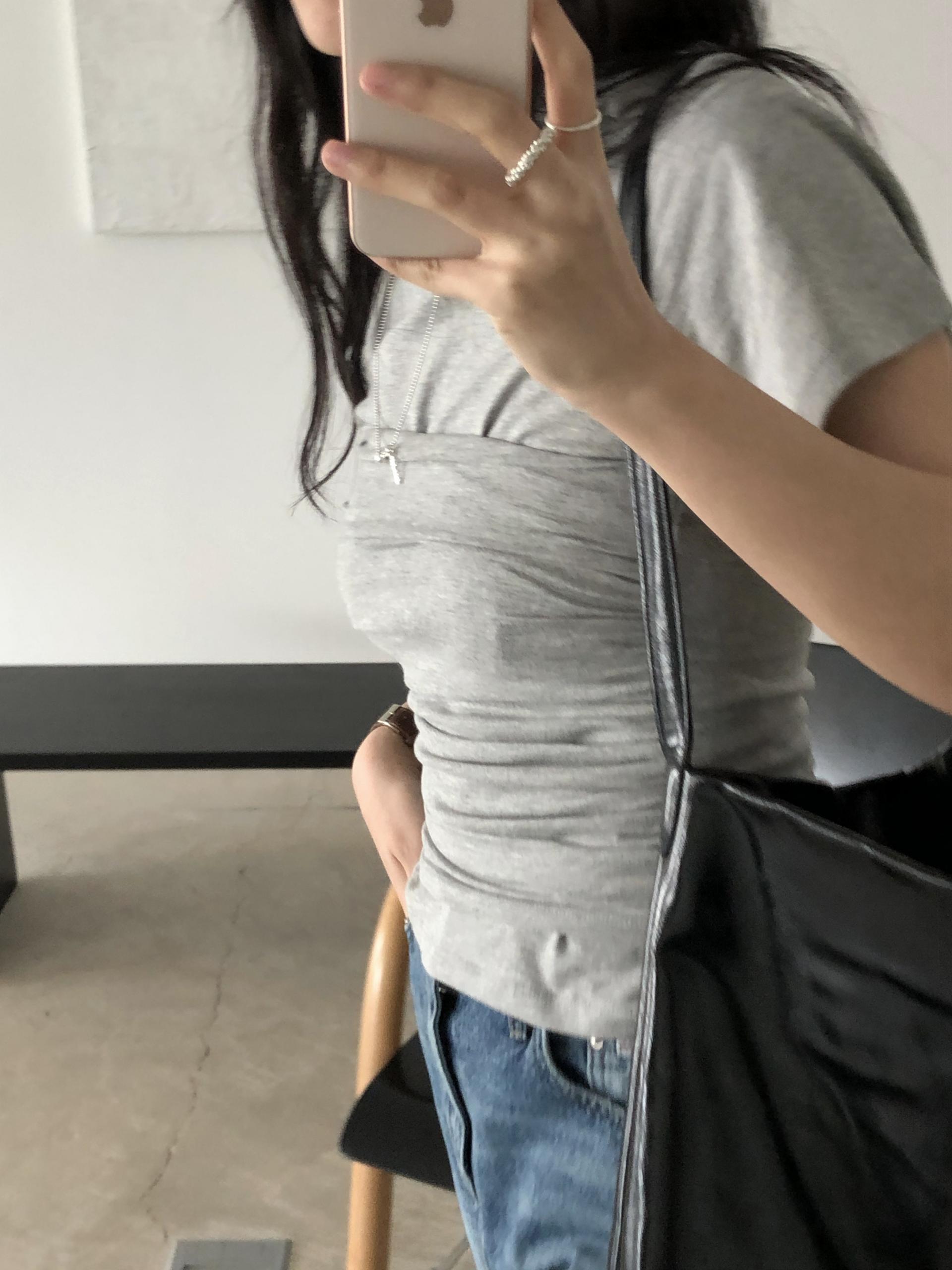 코튼, 모달, 스판 혼방 소재로 정말 부드럽고 정말 쫀쫀해요! 입어보고 아 이 티셔츠 뷔스티에 없이도 매일매일 입게 되겠구나 싶을 정도였어요.