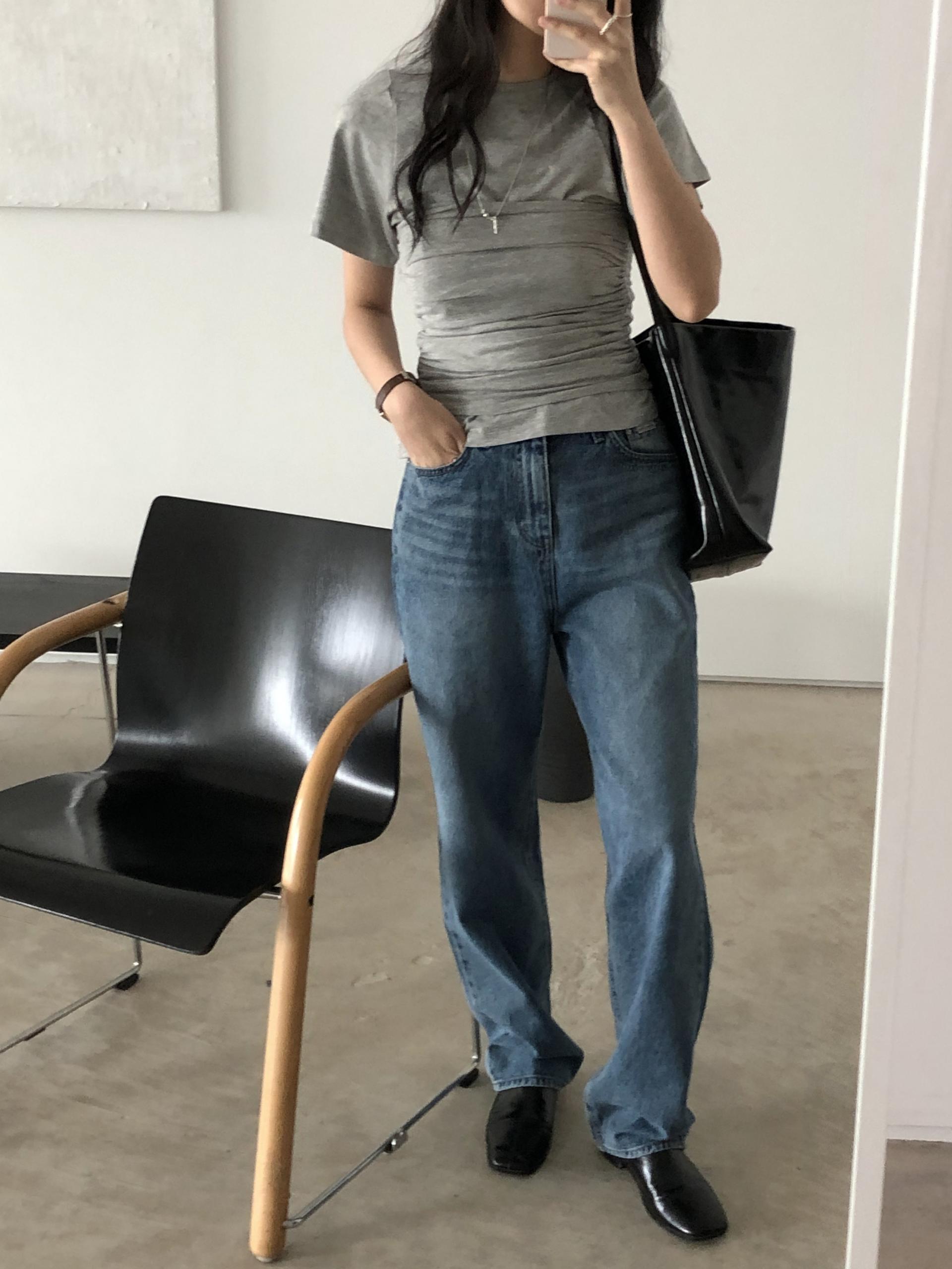 티셔츠 핏 자체가 일단 딱 떨어지는, 예쁜 슬림핏이라 입었을 때 더 마음에 드실 거예요.