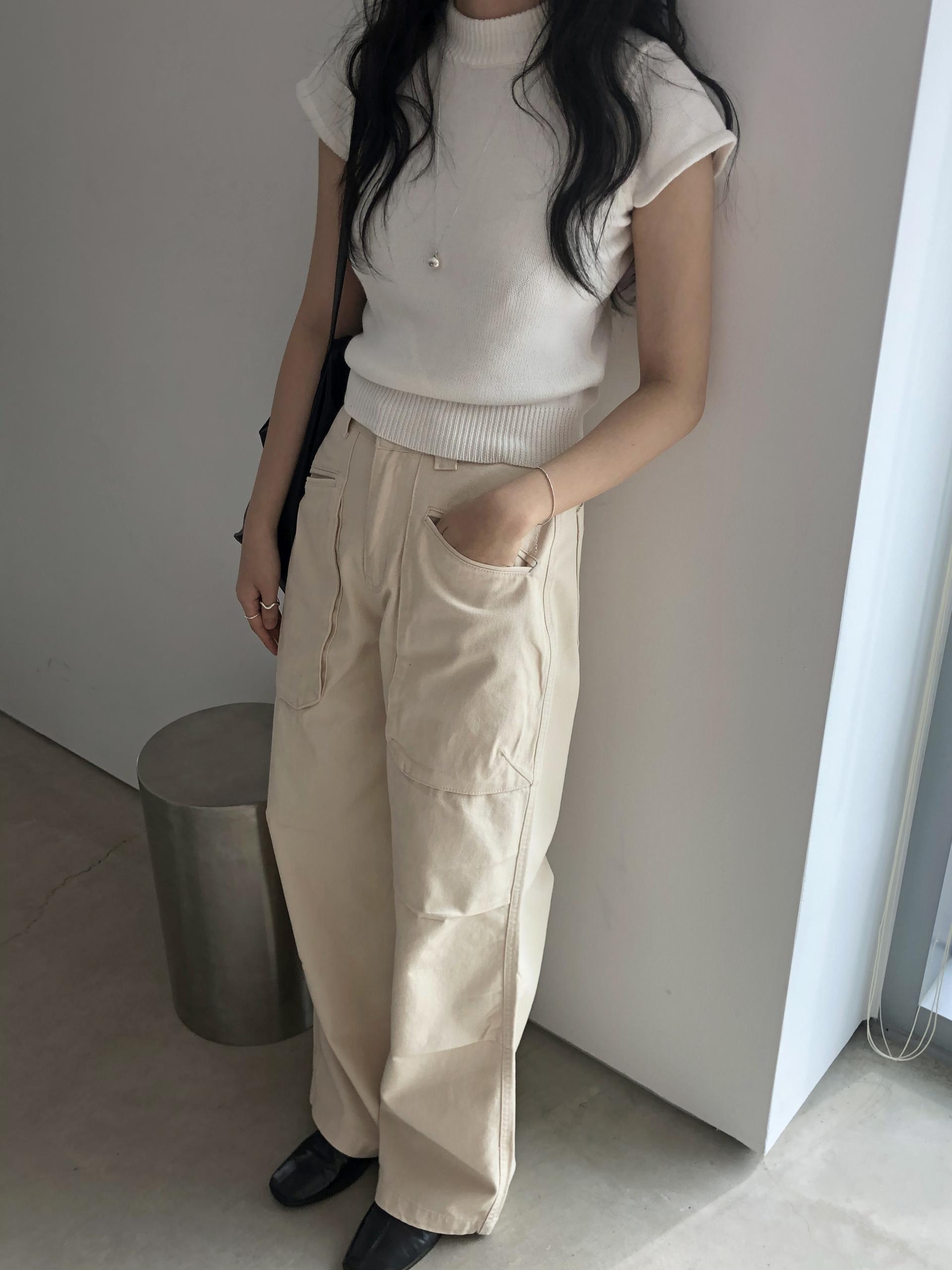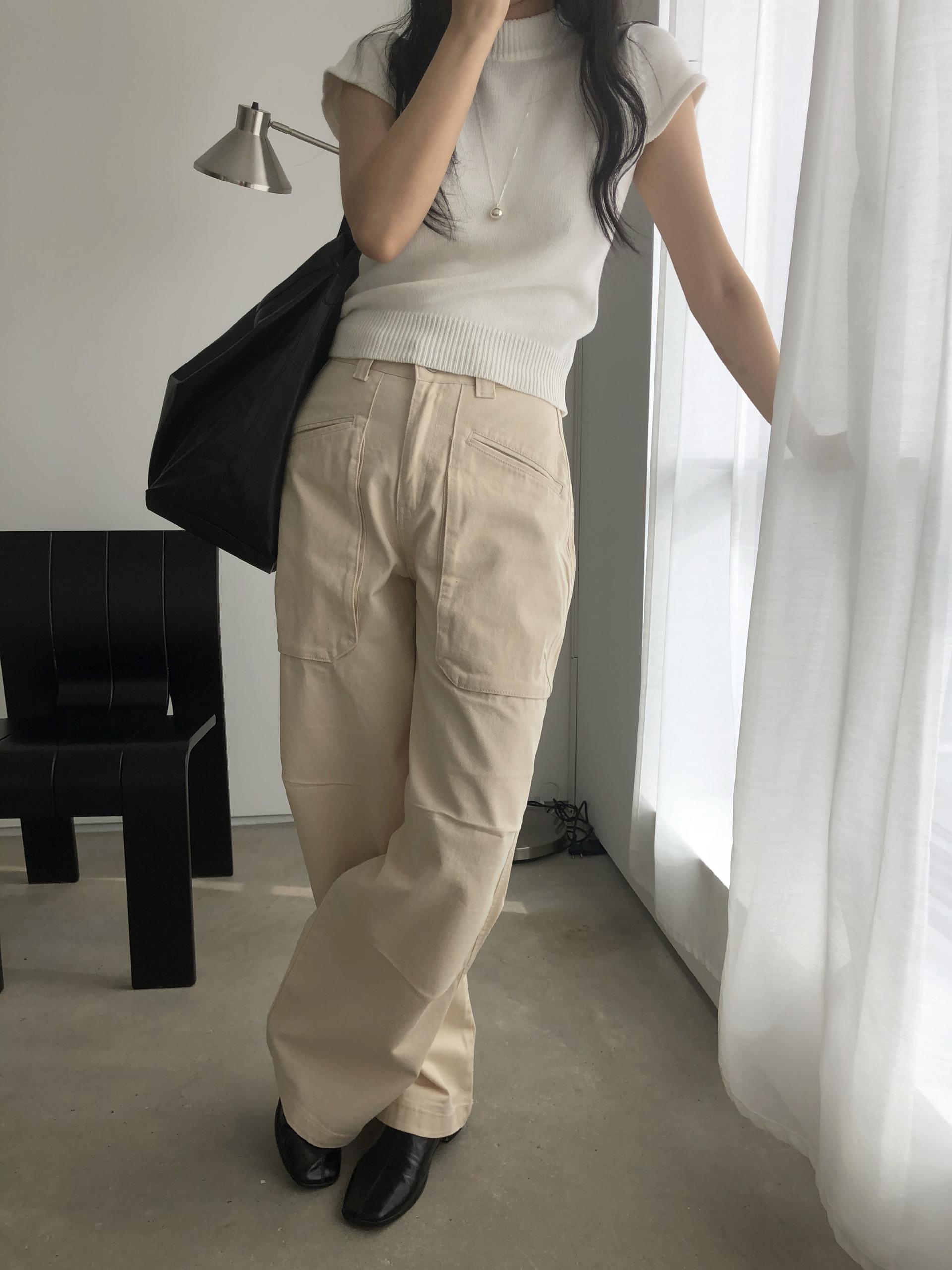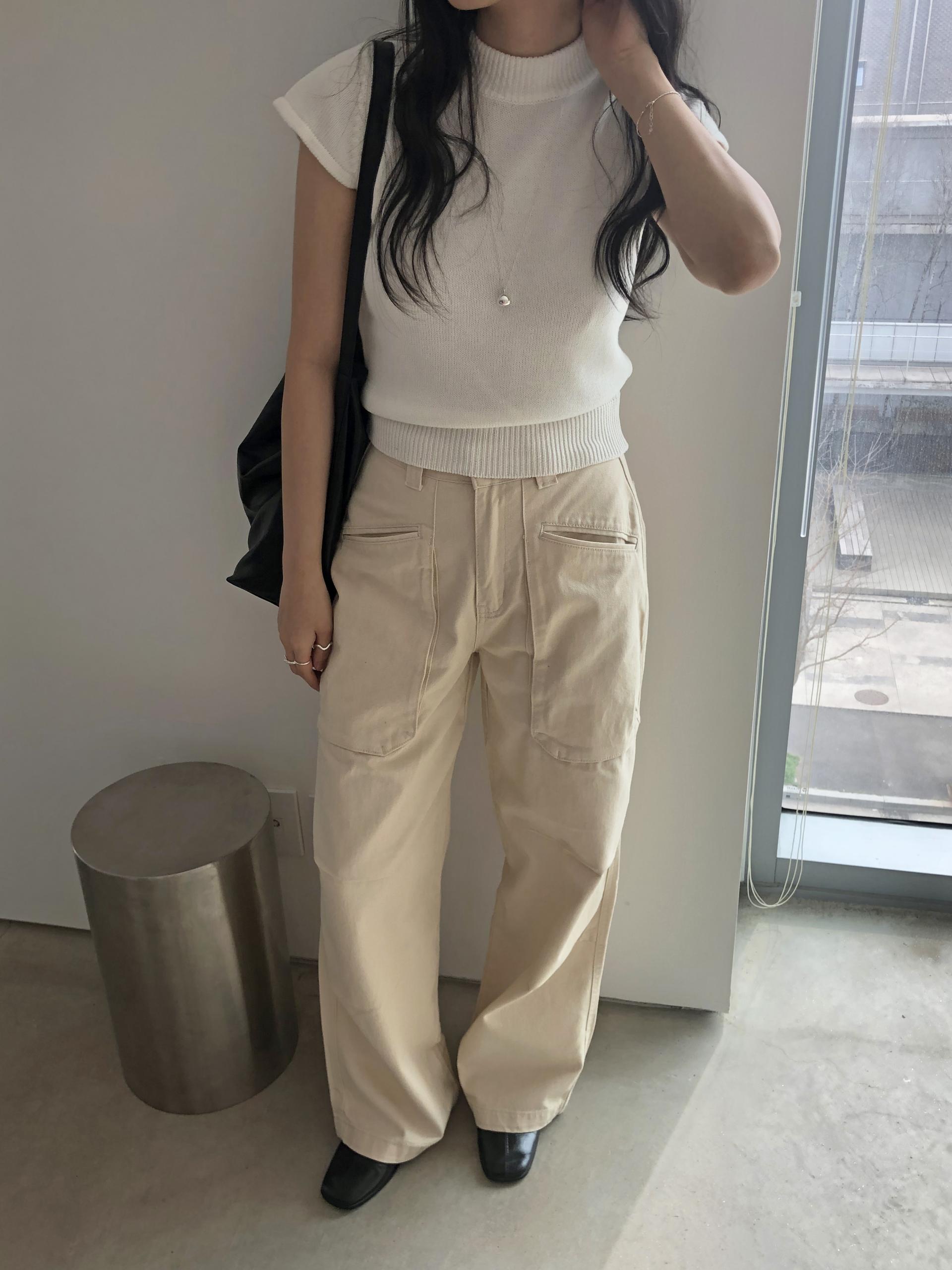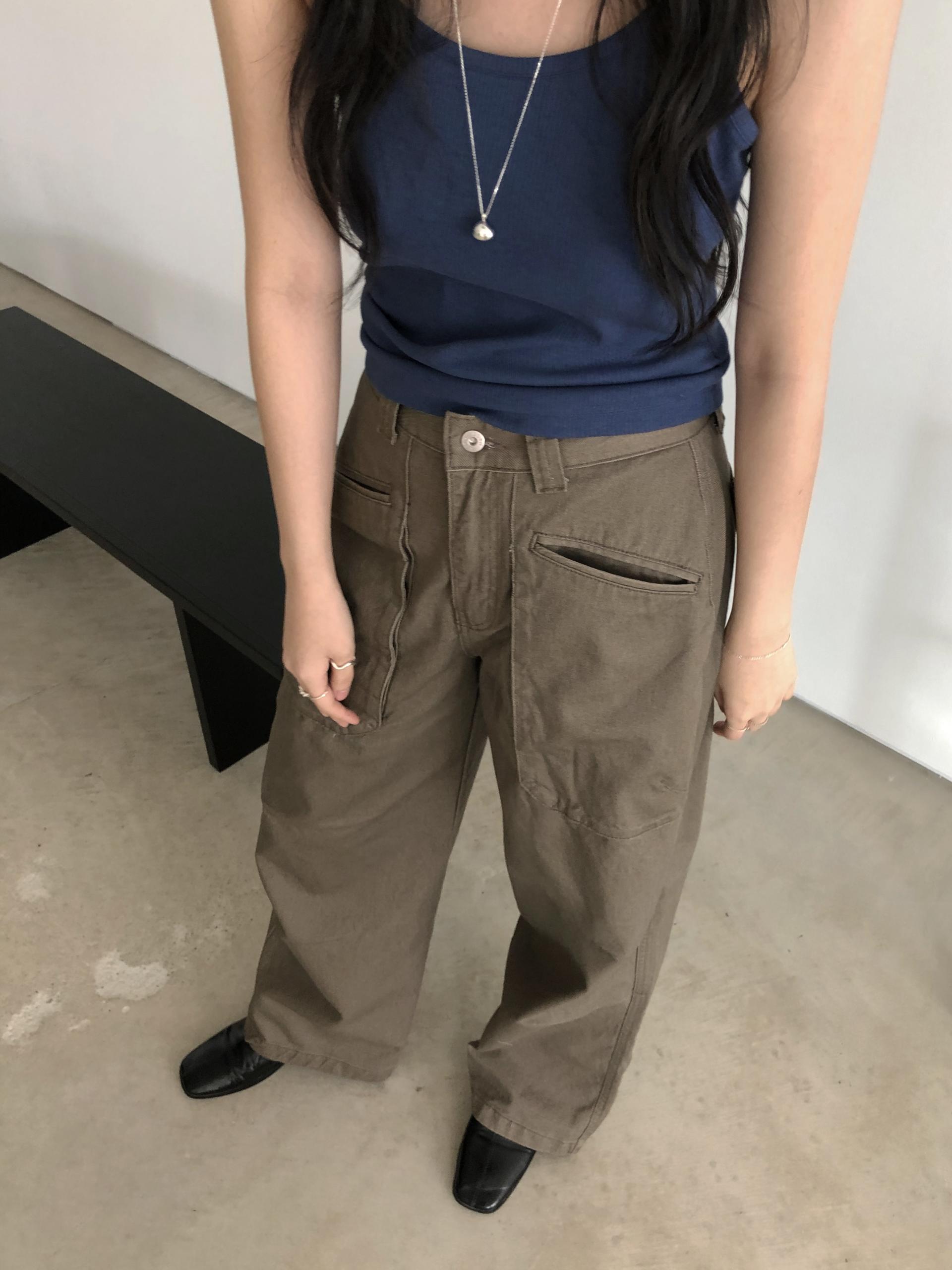 앞쪽에 자리한 입체포켓, 무릎 핀턱 디테일. 말모 말모 .. 빈티지하면서도 트렌디한 무드가 느껴지는 디테일이에요. 팬츠 하나만으로도 굉장히 멋스럽고, 포인트가 되어 상의는 가볍게! 베이직하게 입어주셔도 좋아요. 저는 베이직한 나시에 모카 컬러 행크진 입고 올 여름에 락페 갈 생각에 벌써부터 설레어요ᰔ 어렵지 않게 멋낼 수 있는 아이템이라 정말 추천드리고 싶습니다 .. :)