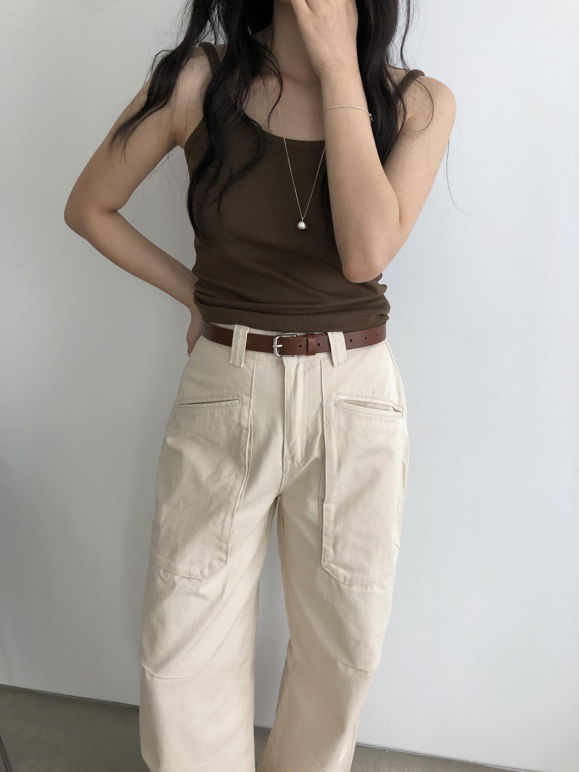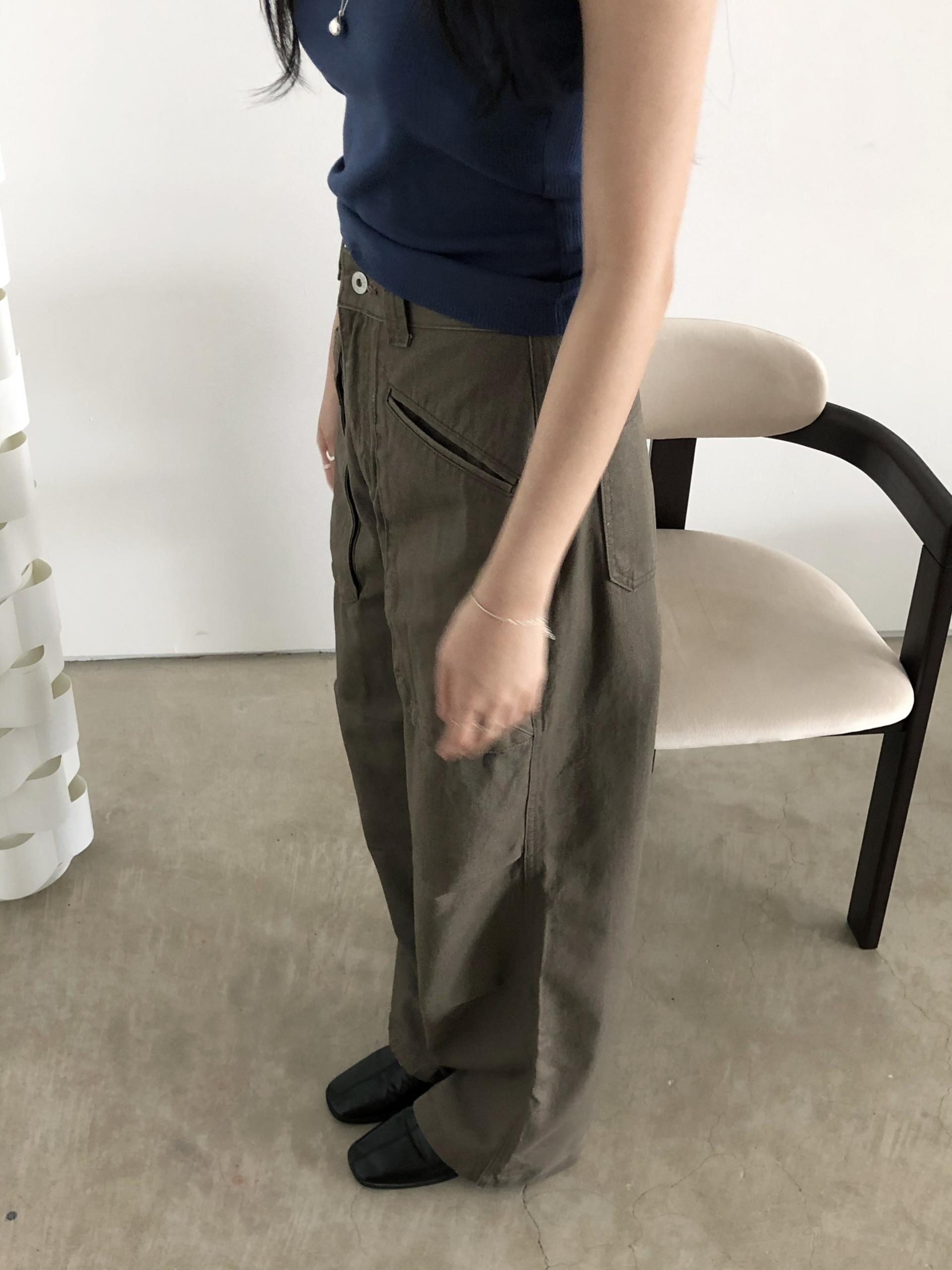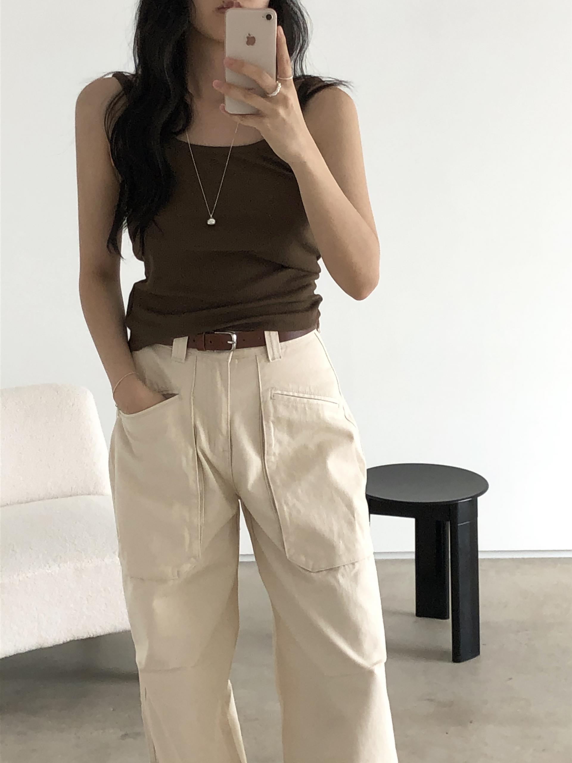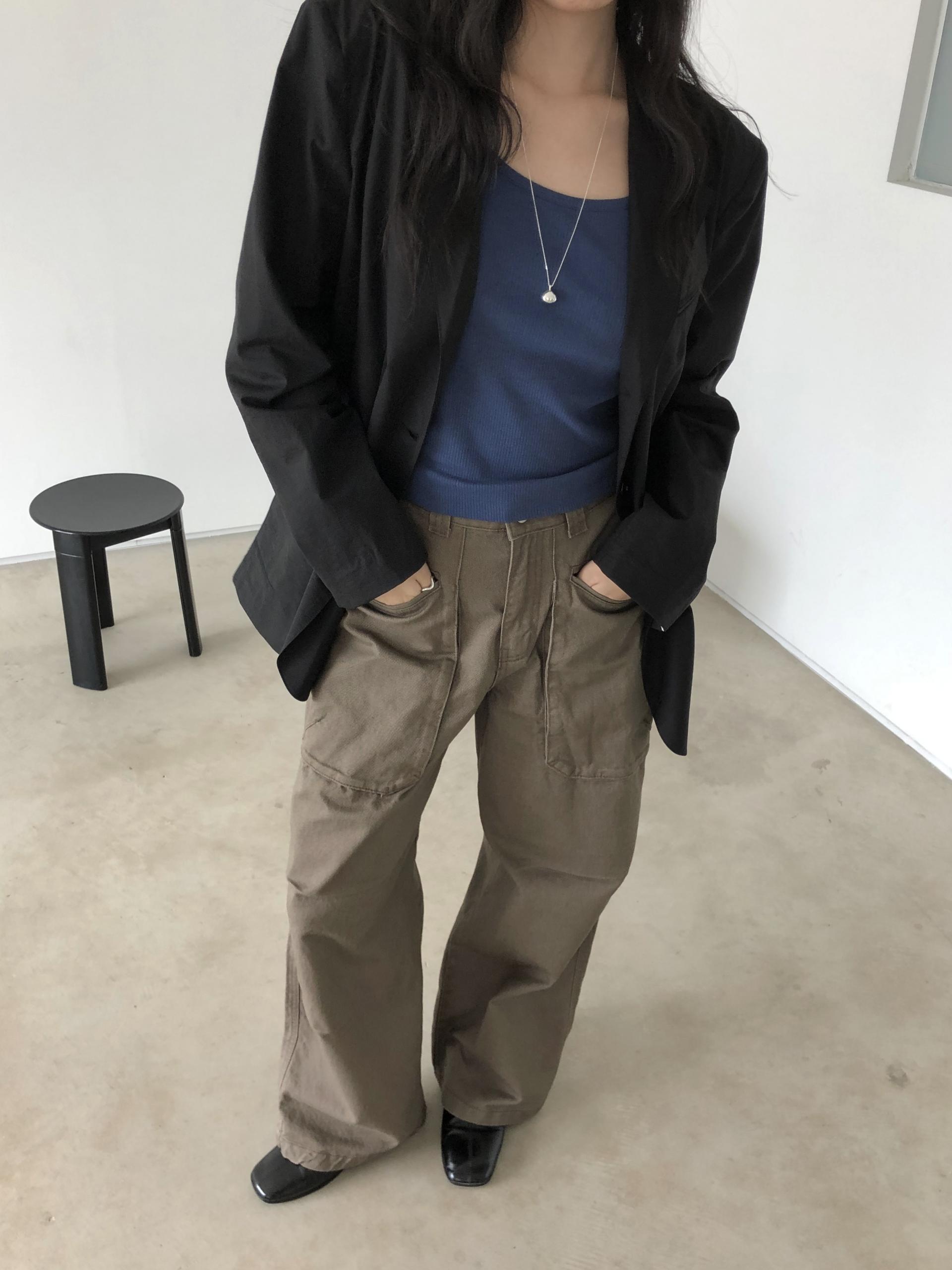앞쪽에 자리한 입체포켓, 무릎 핀턱 디테일. 말모 말모 .. 빈티지하면서도 트렌디한 무드가 느껴지는 디테일이에요. 팬츠 하나만으로도 굉장히 멋스럽고, 포인트가 되어 상의는 가볍게! 베이직하게 입어주셔도 좋아요. 저는 베이직한 나시에 모카 컬러 행크진 입고 올 여름에 락페 갈 생각에 벌써부터 설레어요ᰔ 어렵지 않게 멋낼 수 있는 아이템이라 정말 추천드리고 싶습니다 .. :)