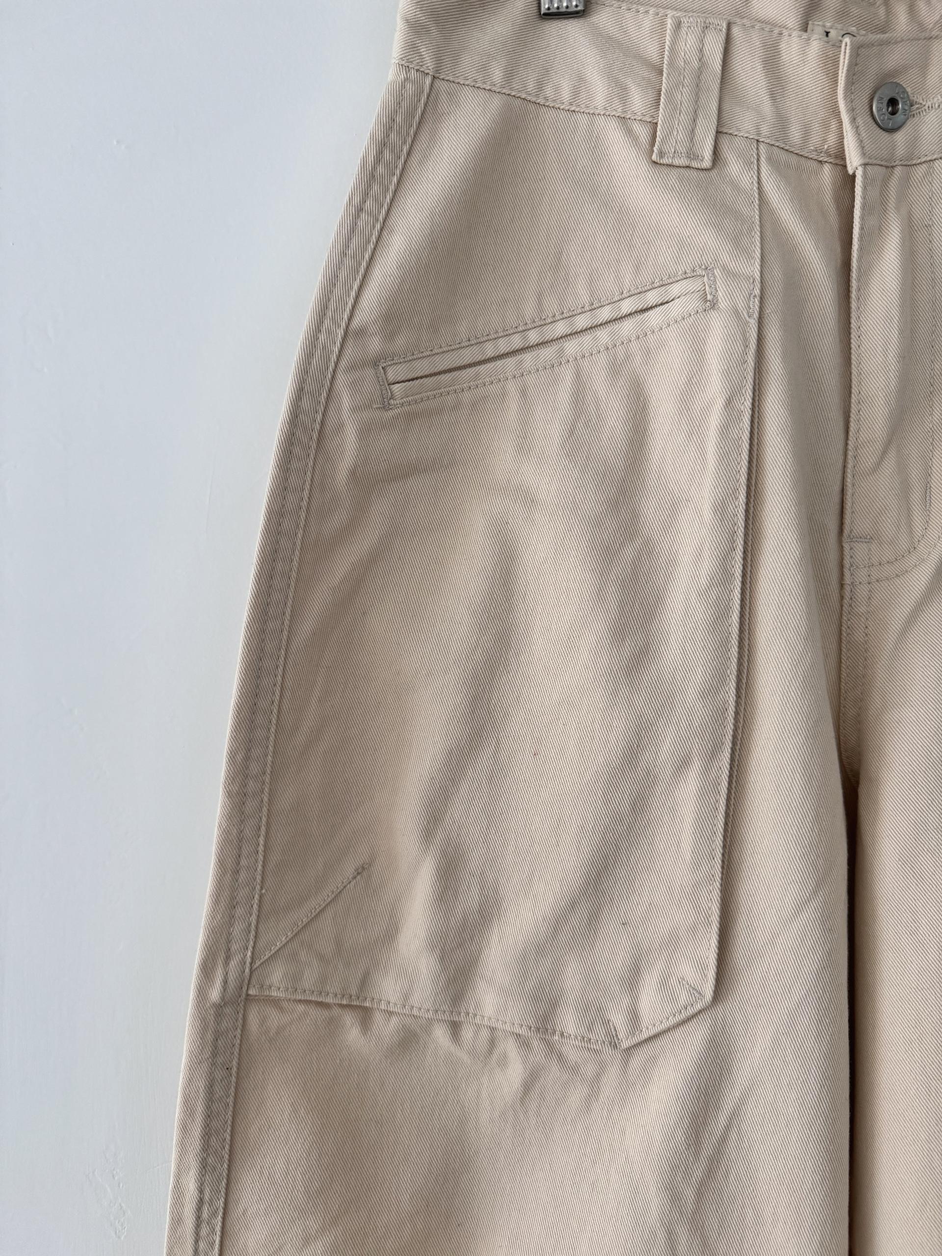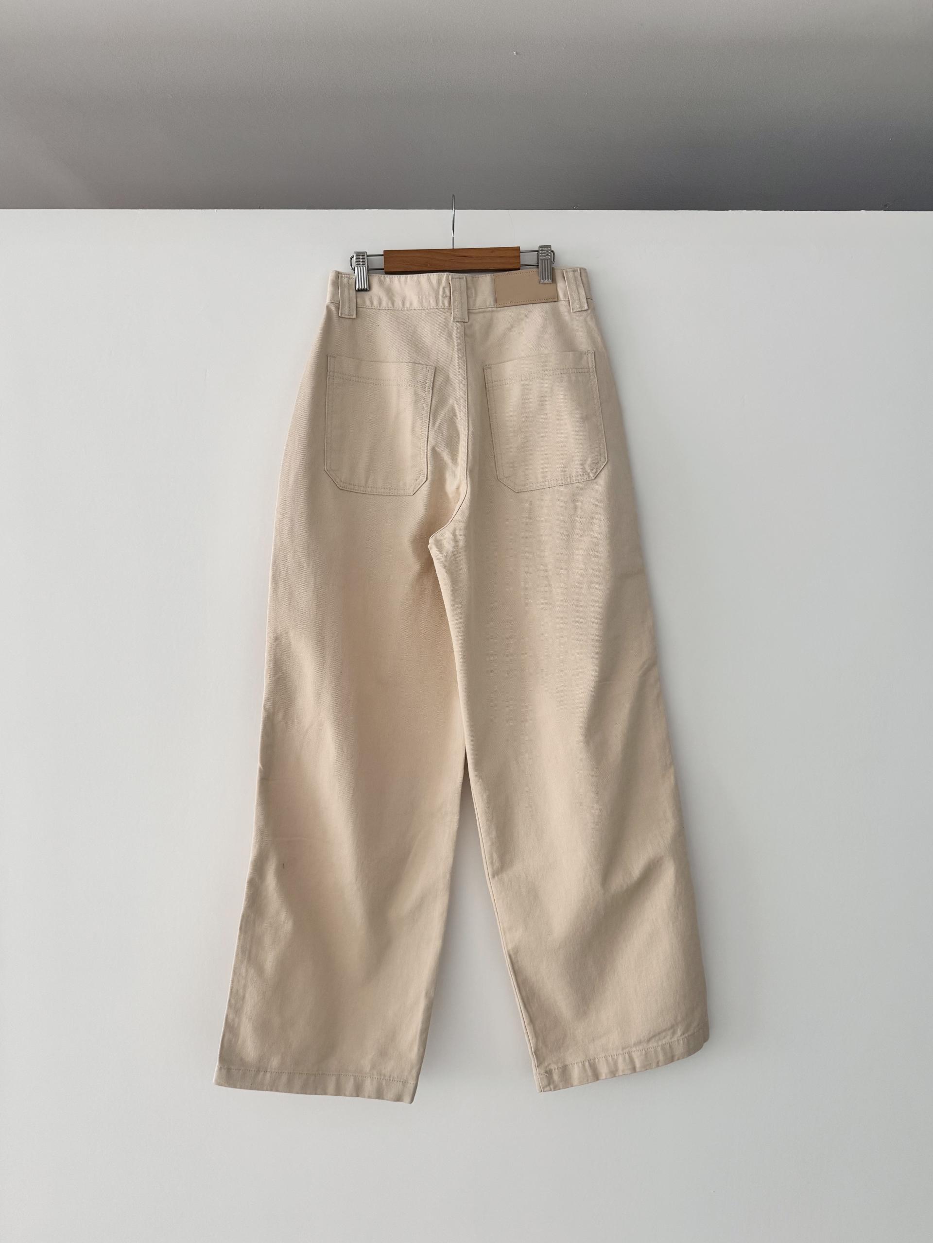 이제 날이 많이 따뜻해져 여름까지도 입을 수 있는 소재로 찾아봤어요! 10수의 얇은 면트윌 소재를 사용하여 만들어진 워크팬츠입니다. 얇지만 탄탄해서 핏 무너짐 없습니다. jean 치고는 얇은 편이지만, 비침도 없어요! 크림컬러 비침 걱정 없이 편하게 착용 가능하세요 :)