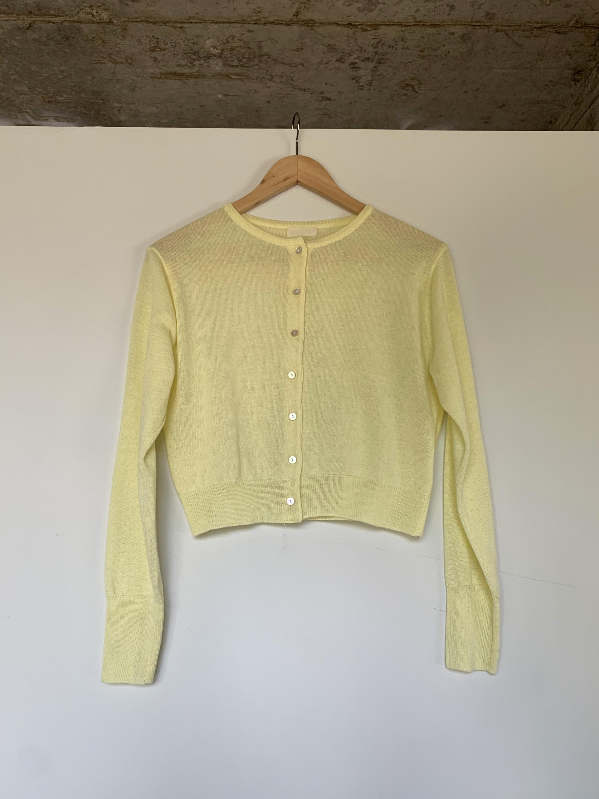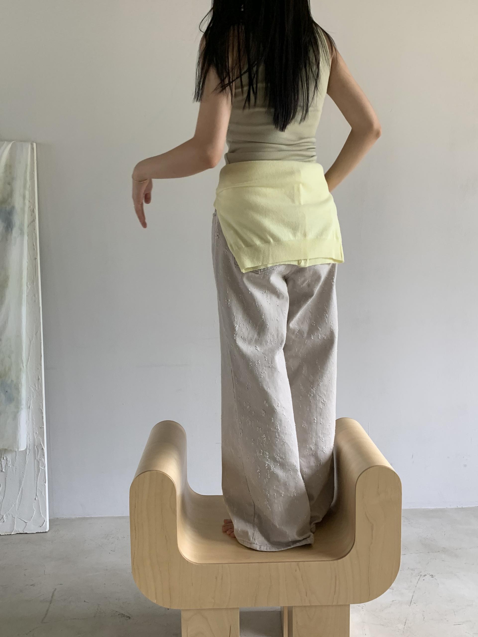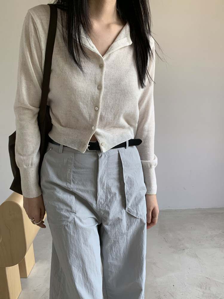 린넨이 함유된 혼방소재로 얇고 가벼워 더운 여름날에도 들고 다니기 편하고 적당히 크롭된 기장이라 단독 썸머 니트웨어처럼 입기에도 좋습니다.