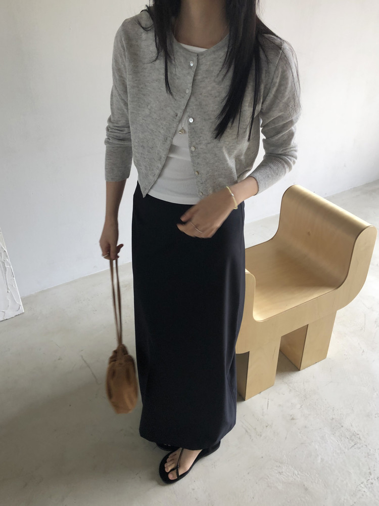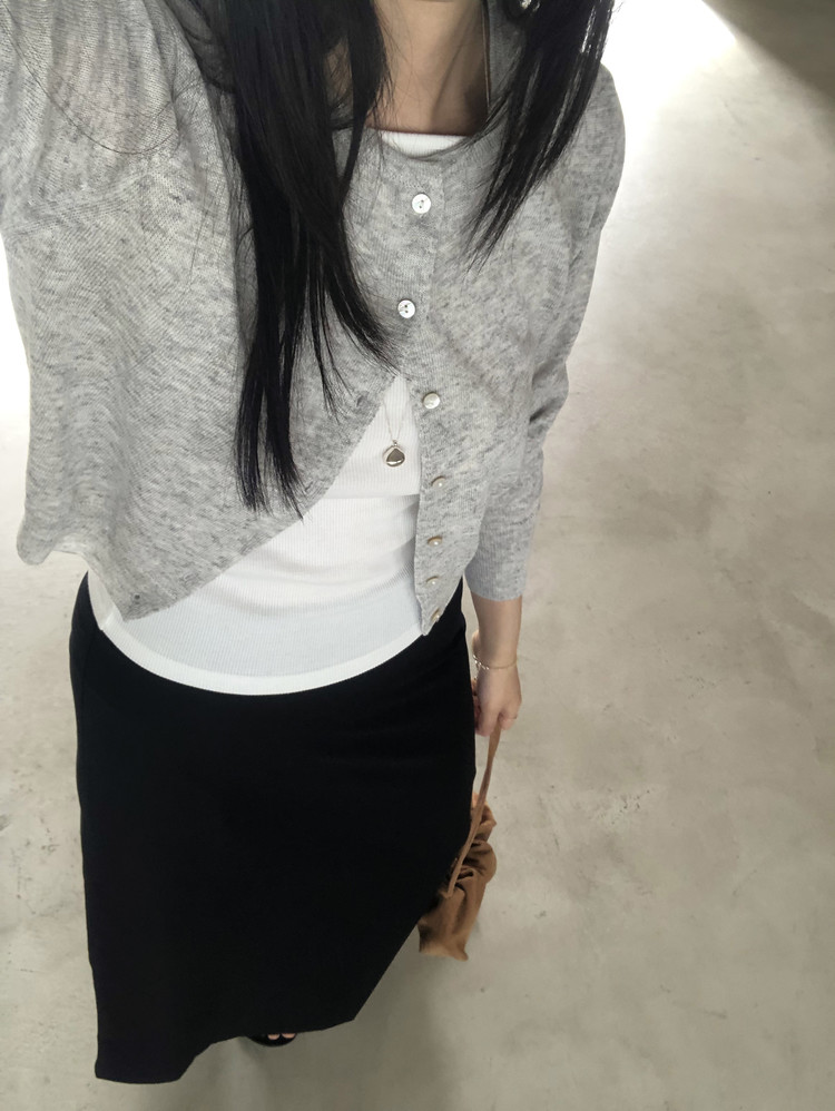 또한 이런 라이트한 무드의 아이템과 잘 어울리는 자개 단추로 포인트를 주었습니다. 깔끔한 셔츠나 가디건에는 의외로 단추가 정말 중요하기 때문에 더 유심히 보게 되는데요, 분위기를 해치지 않는 내추럴한 멋이 느껴집니다 : )