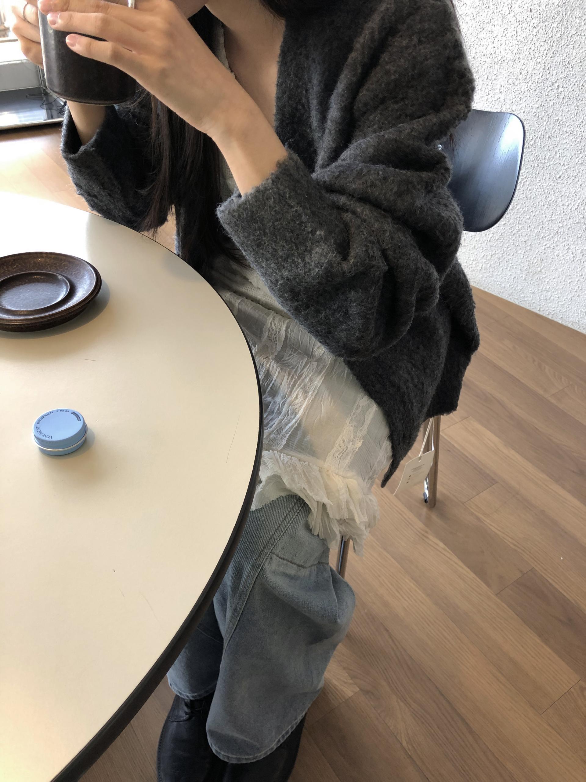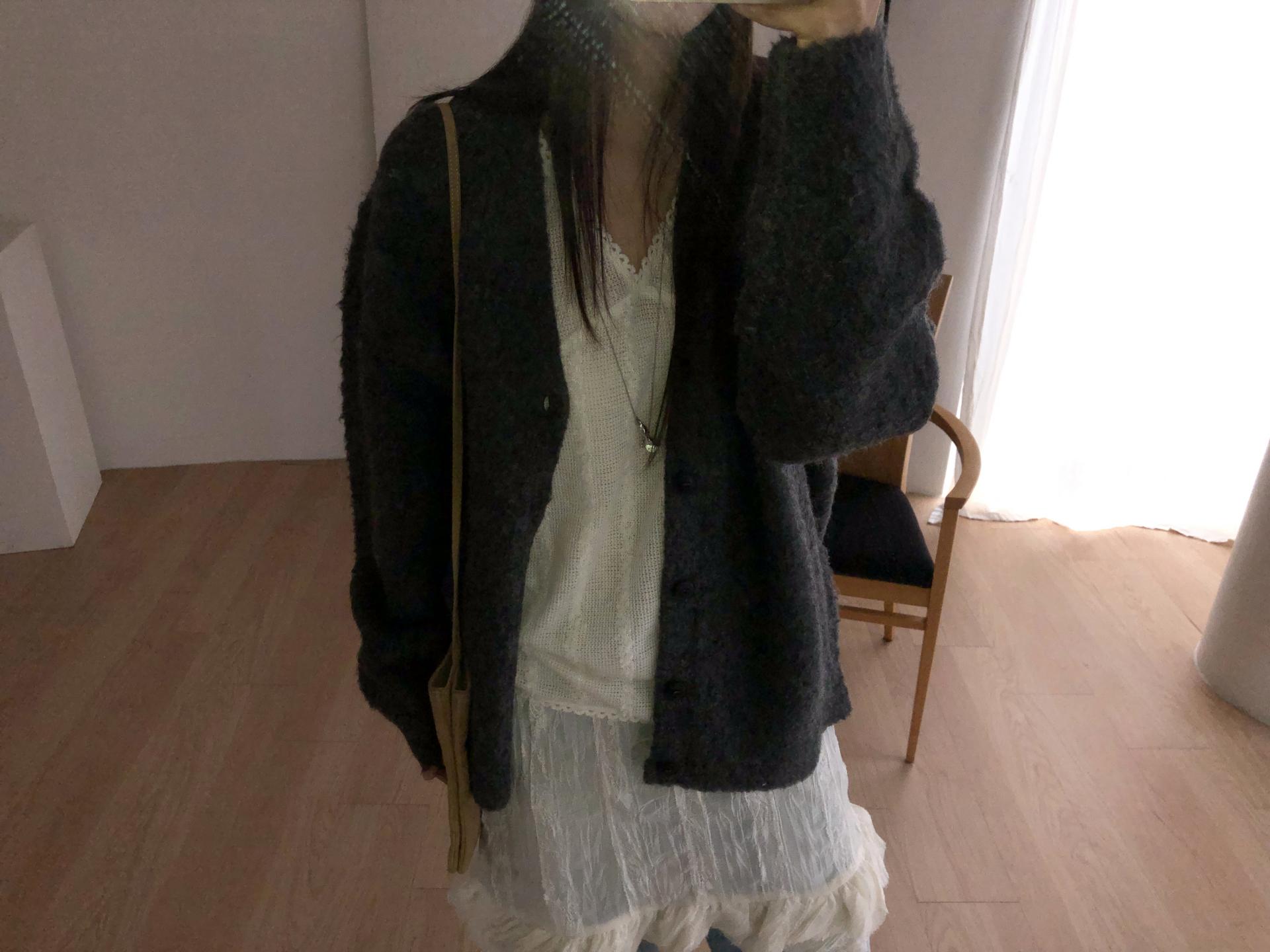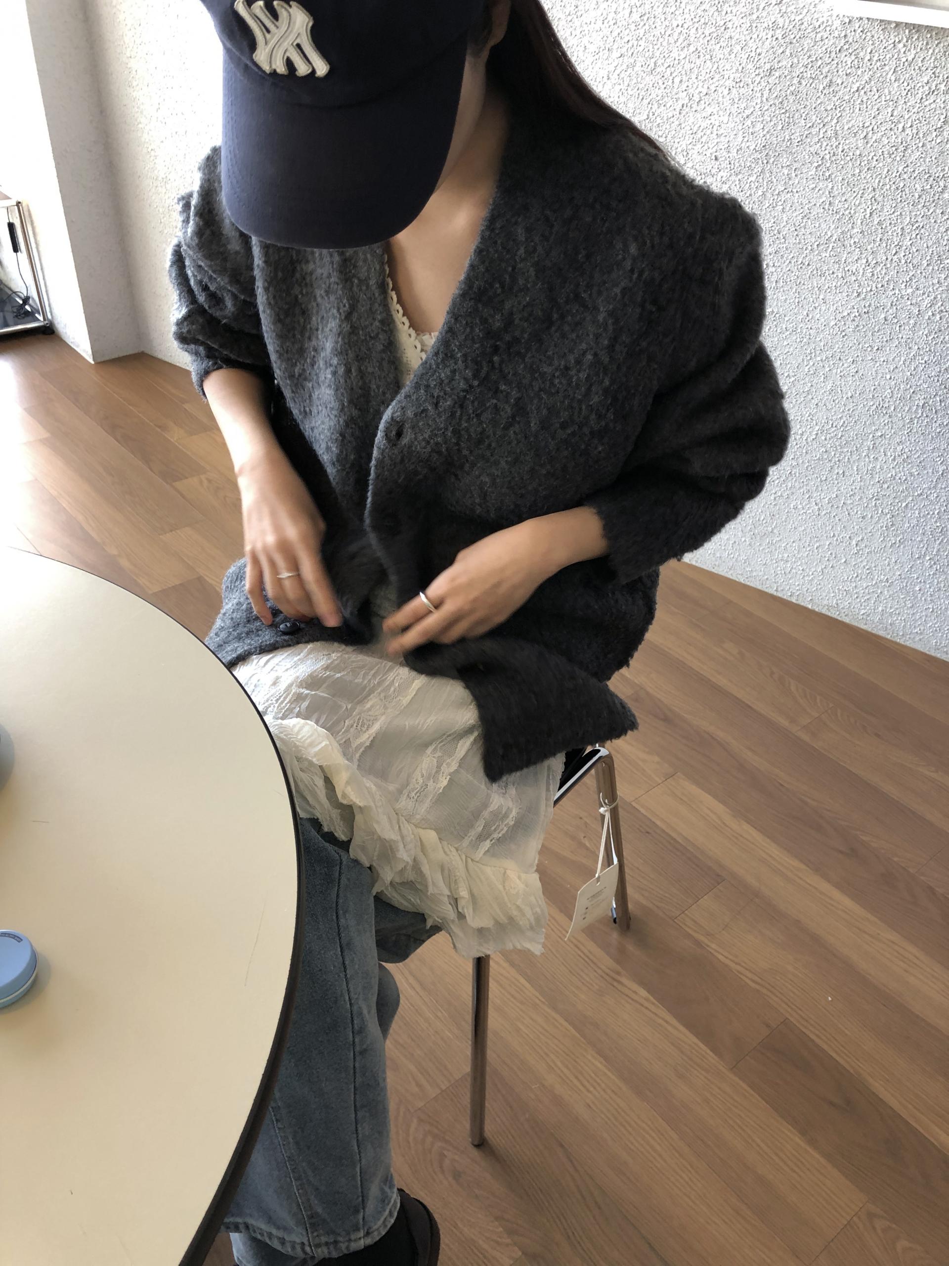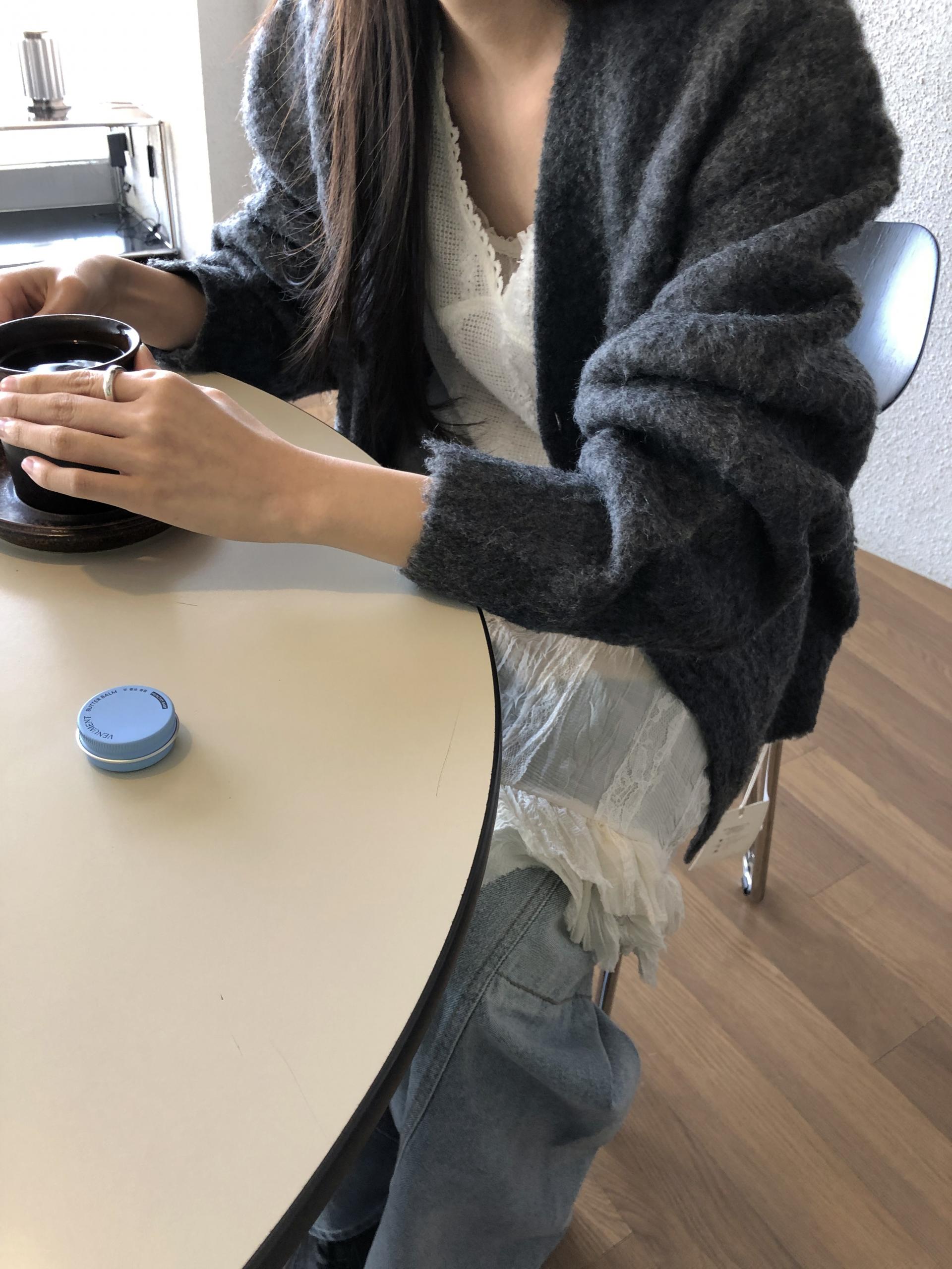 브러쉬 기법의 긴 헤어감이 돋보이는 원단으로 포근함이 느껴져 한겨울까지 따뜻하게 즐길 수 있어요. ( 니트 겉면을 긁어 니트의 부드러움을 강조시키는 기법입니다. 착용할수록 몽글몽글 헤어감이 드러날 거예요! 긴 헤어감이 머그 가디건의 매력입니다 :) )