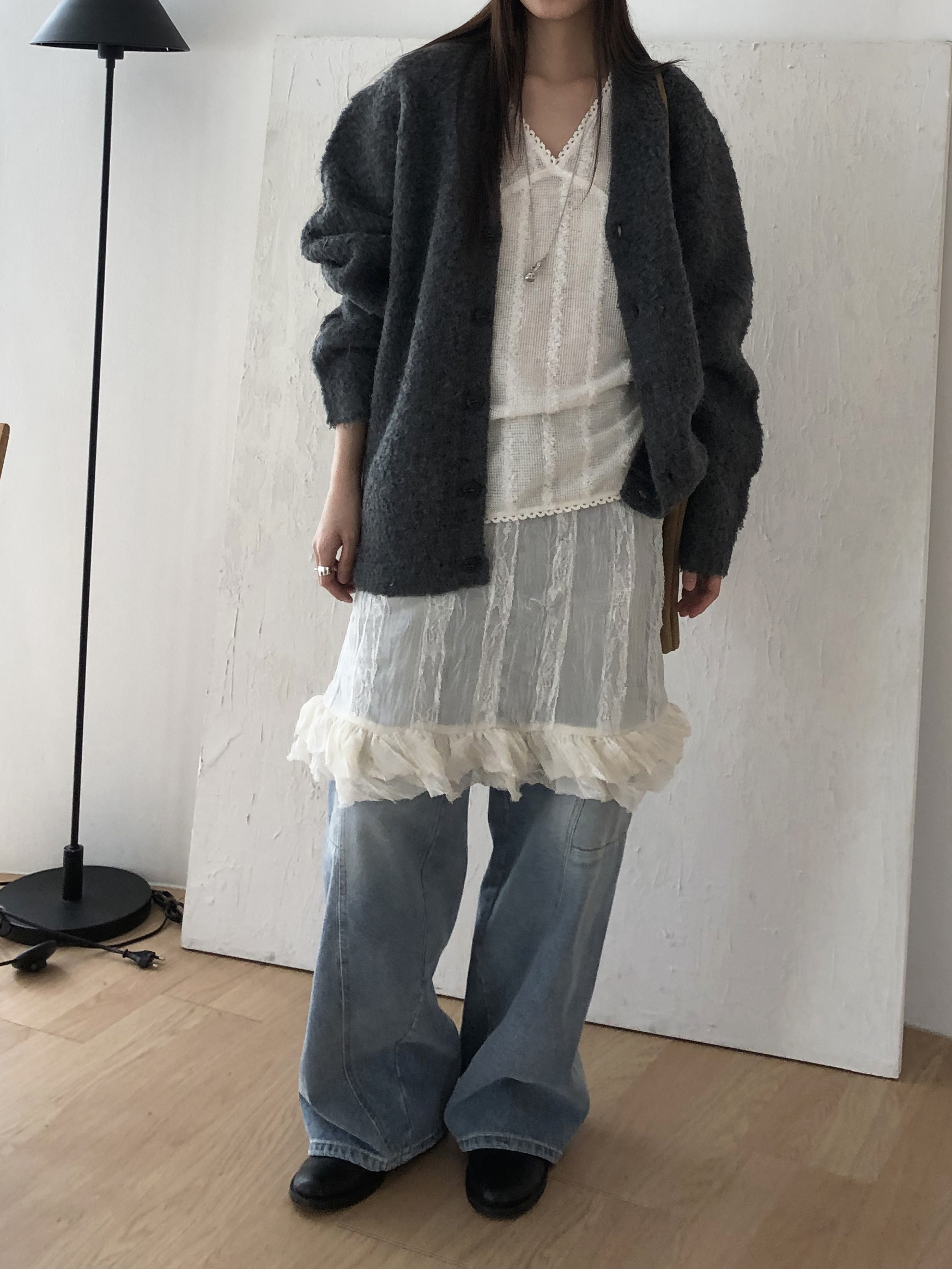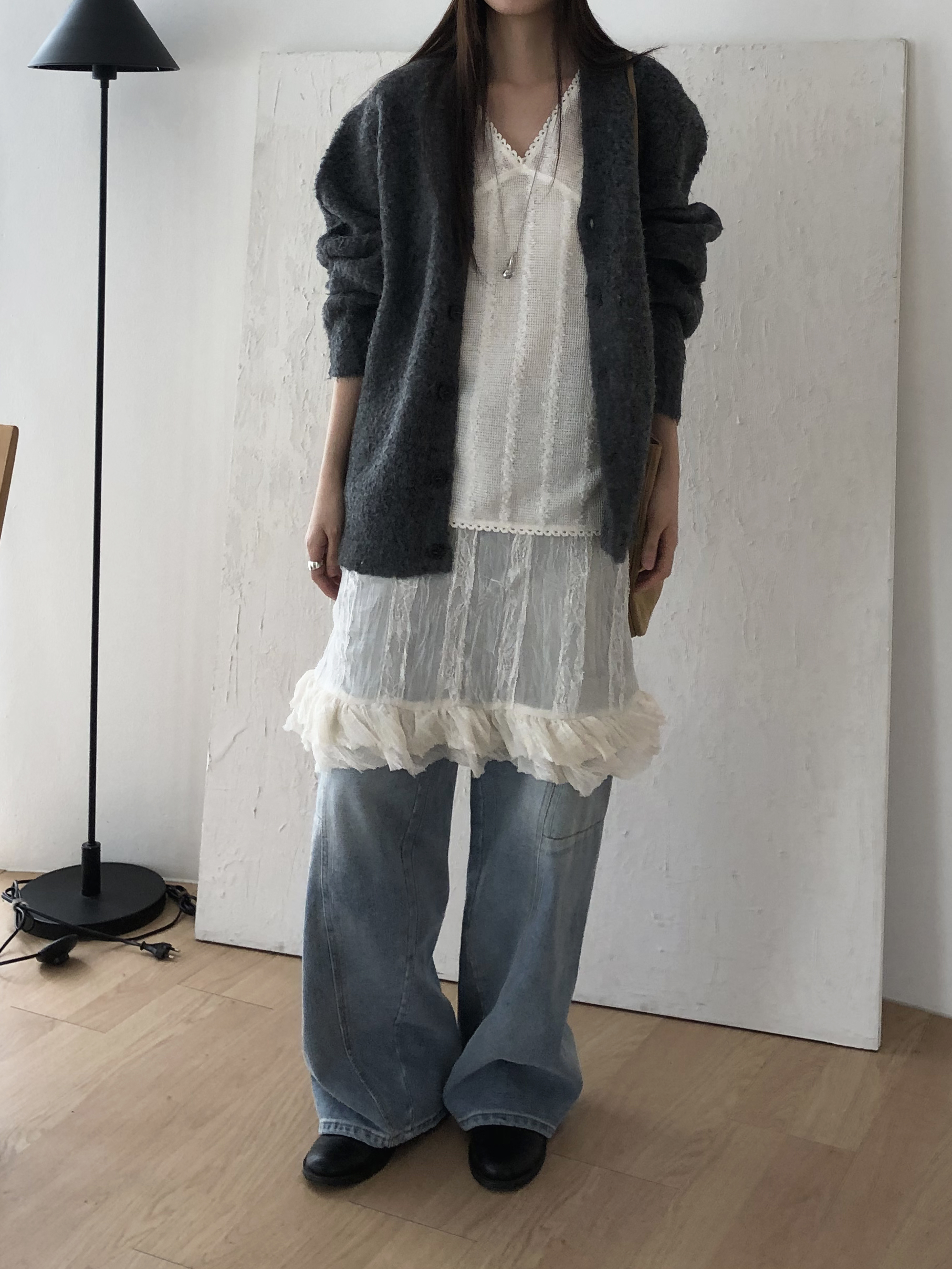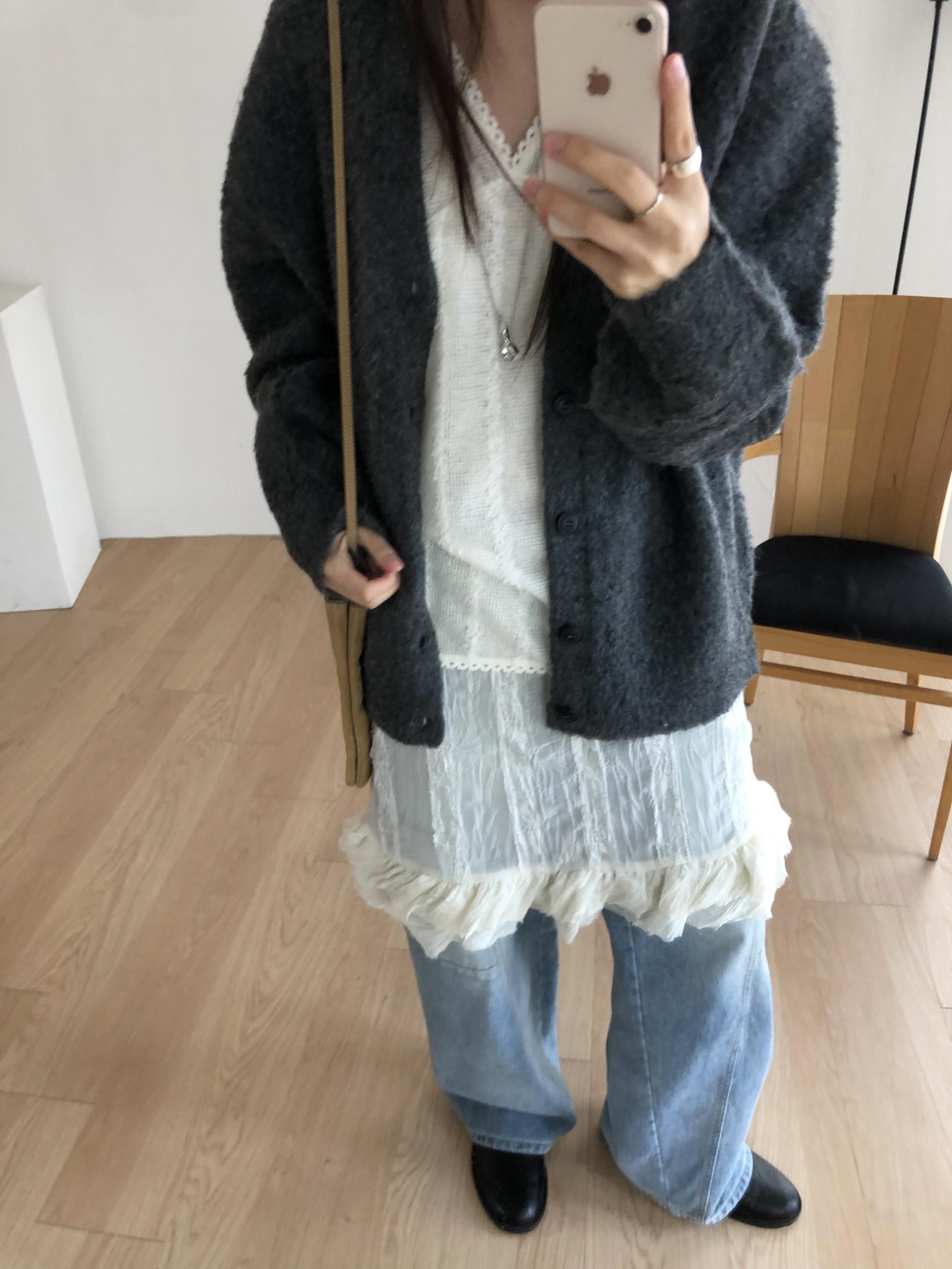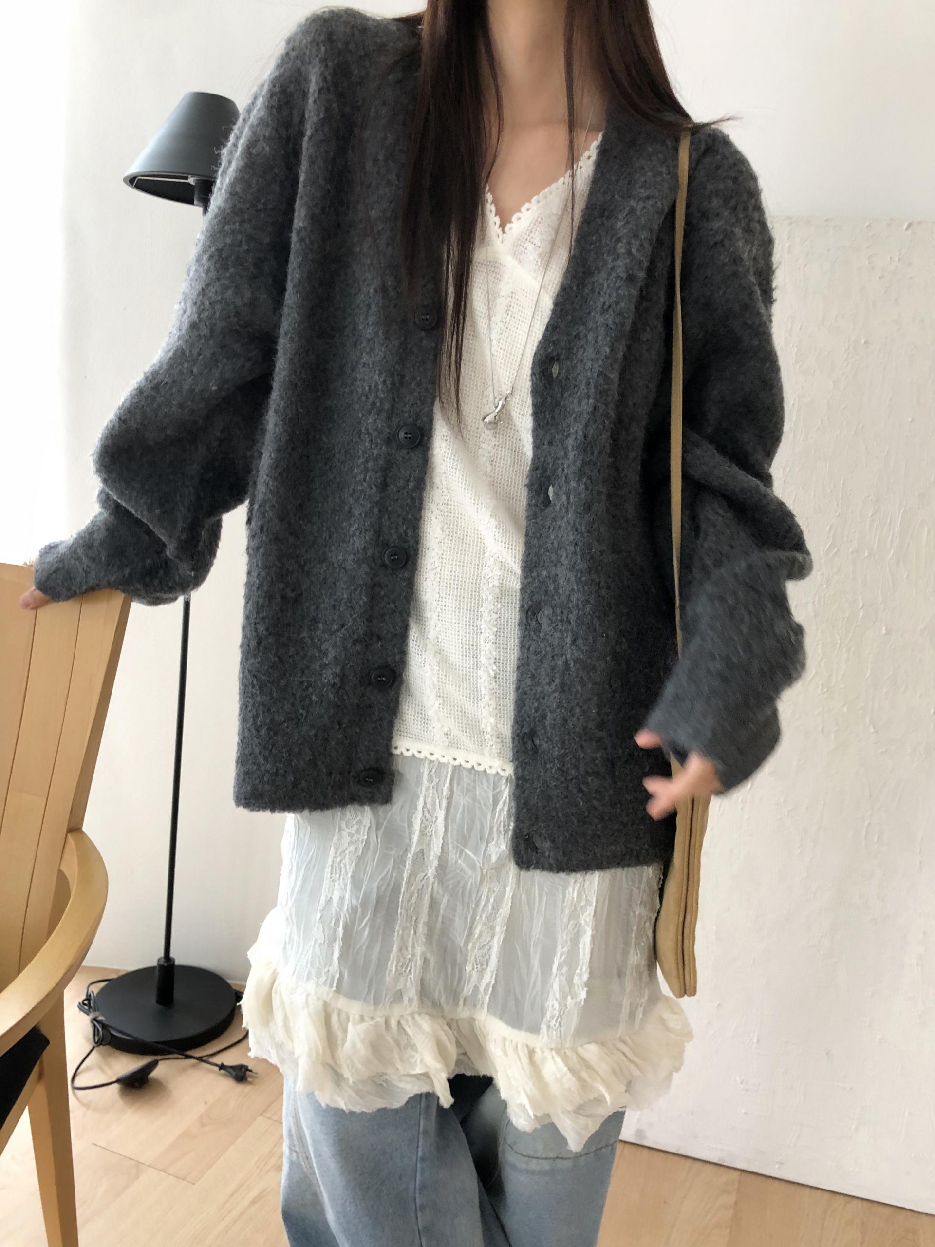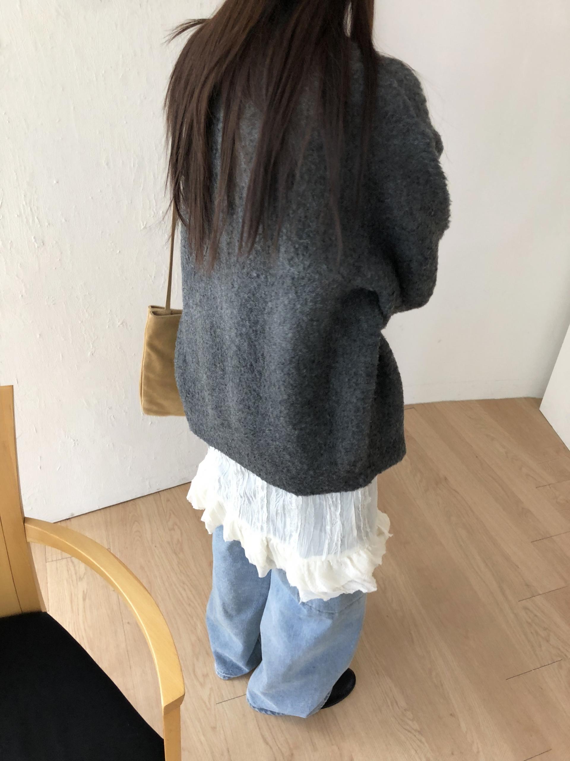 브러쉬 기법의 긴 헤어감이 돋보이는 원단으로 포근함이 느껴져 한겨울까지 따뜻하게 즐길 수 있어요. ( 니트 겉면을 긁어 니트의 부드러움을 강조시키는 기법입니다. 착용할수록 몽글몽글 헤어감이 드러날 거예요! 긴 헤어감이 머그 가디건의 매력입니다 :) )