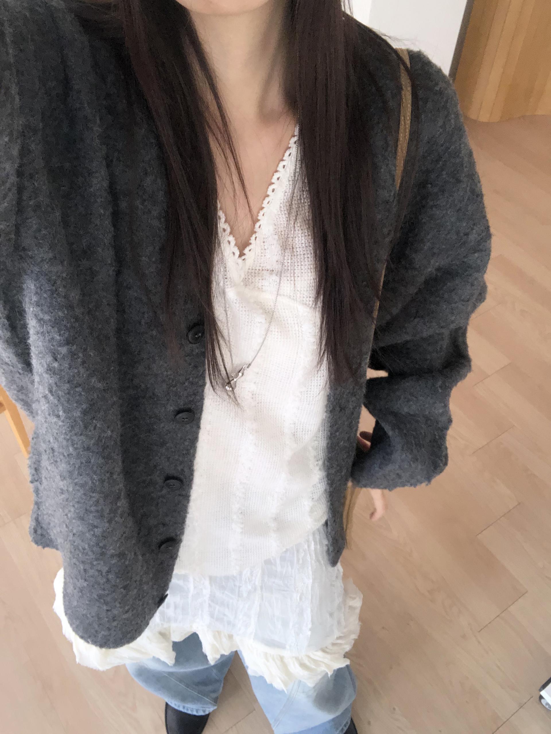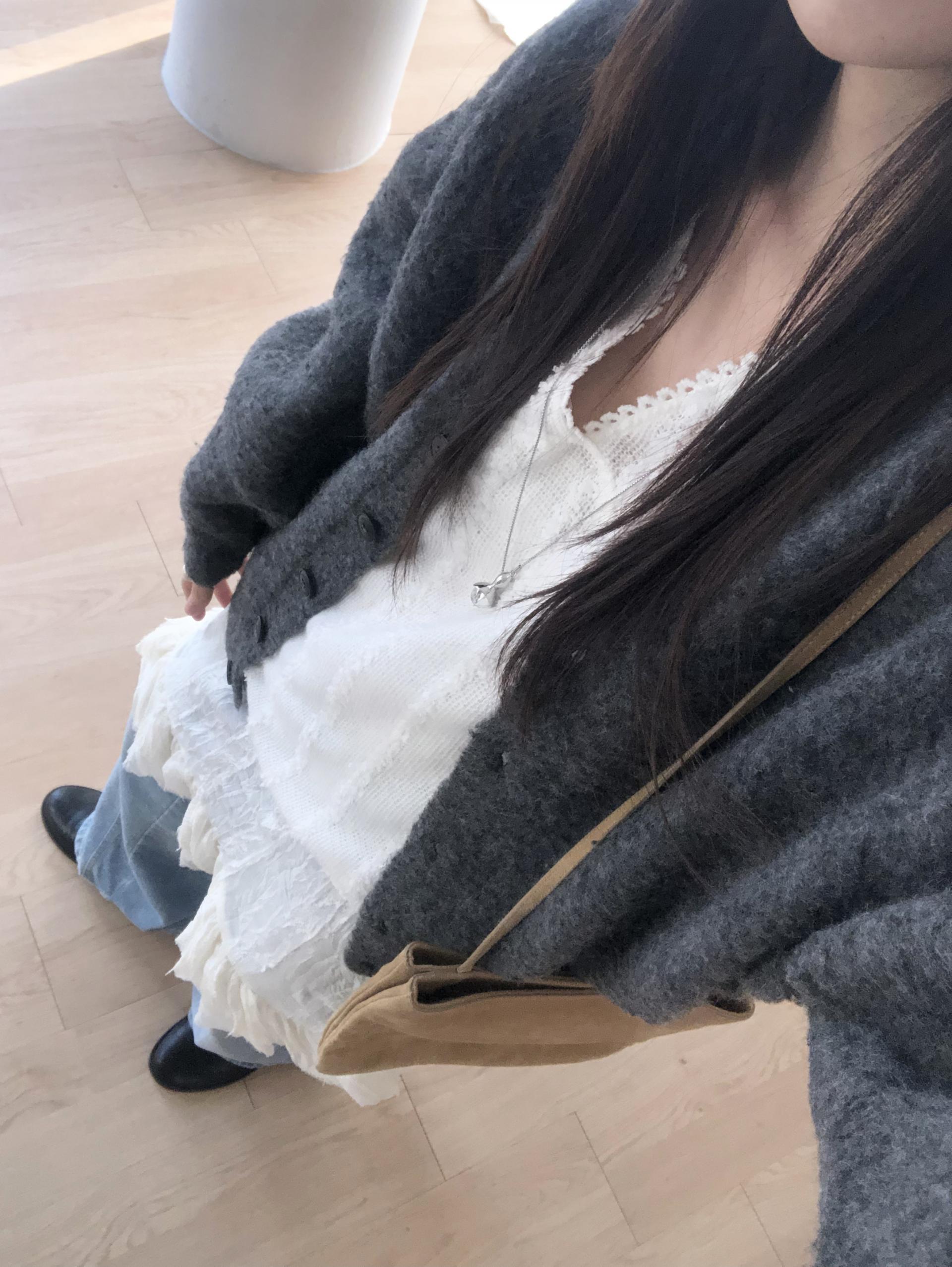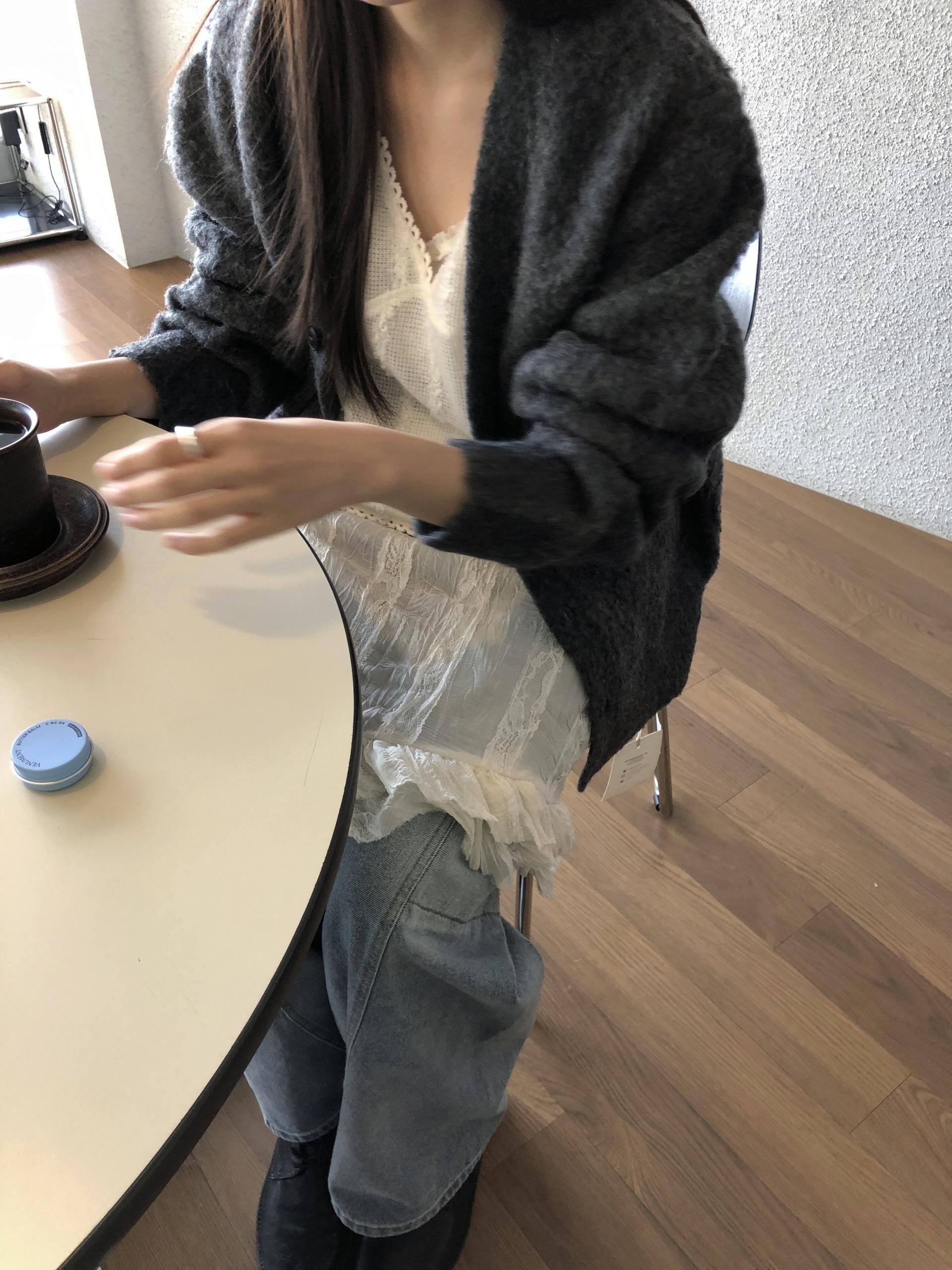 어깨가 드롭되어있고 전체적으로 오버핏으로 만들어져 더욱 매력적인 실루엣이 연출됩니다. 폭닥한 스웨터에 몸이 감싸진듯한 포근한 느낌,, ❄️ 왠지 머그잔에 담긴 뜨거운 차를 마셔야할 것 같아 이름도 머그 가디건이랍니다•♥