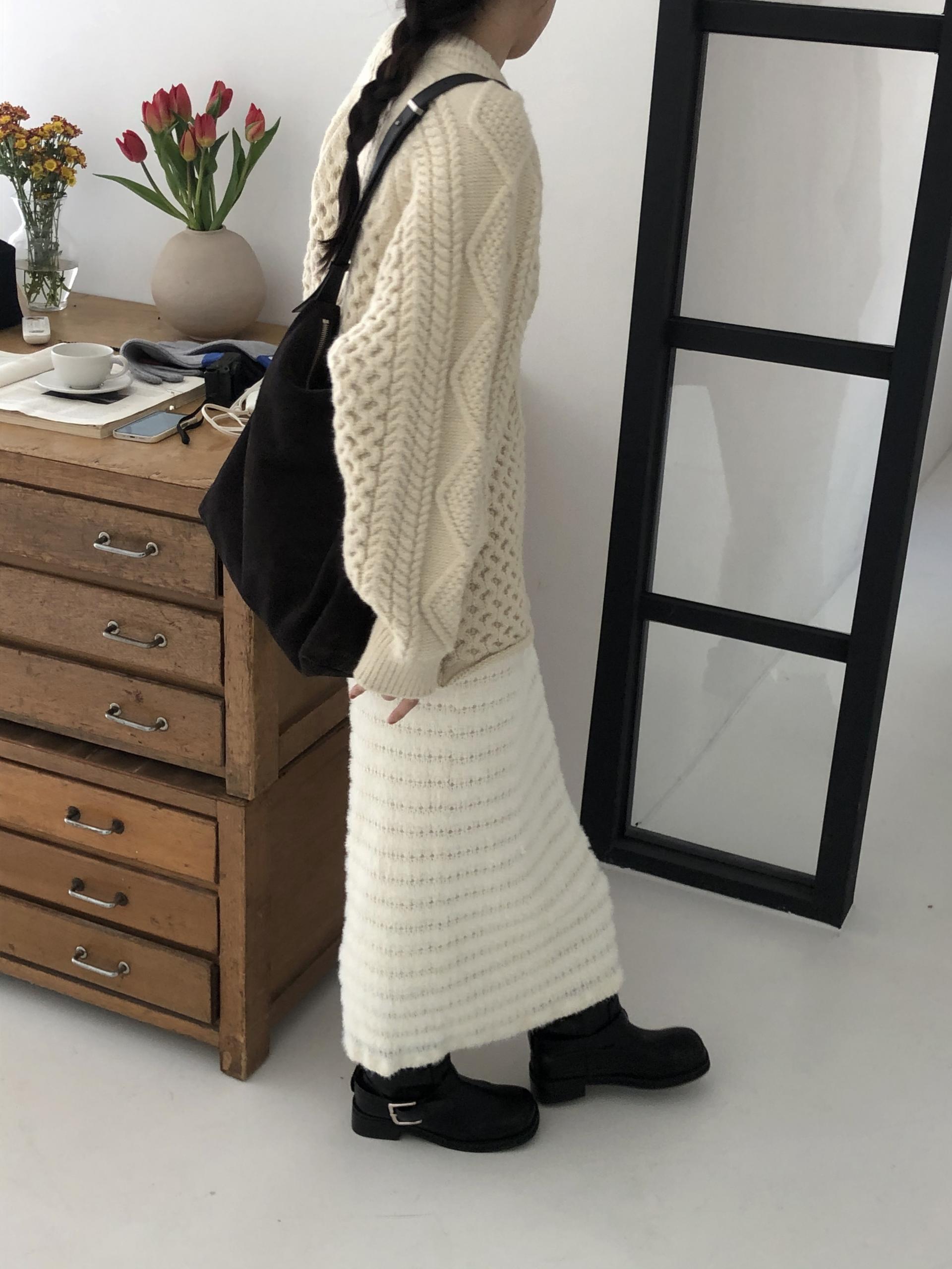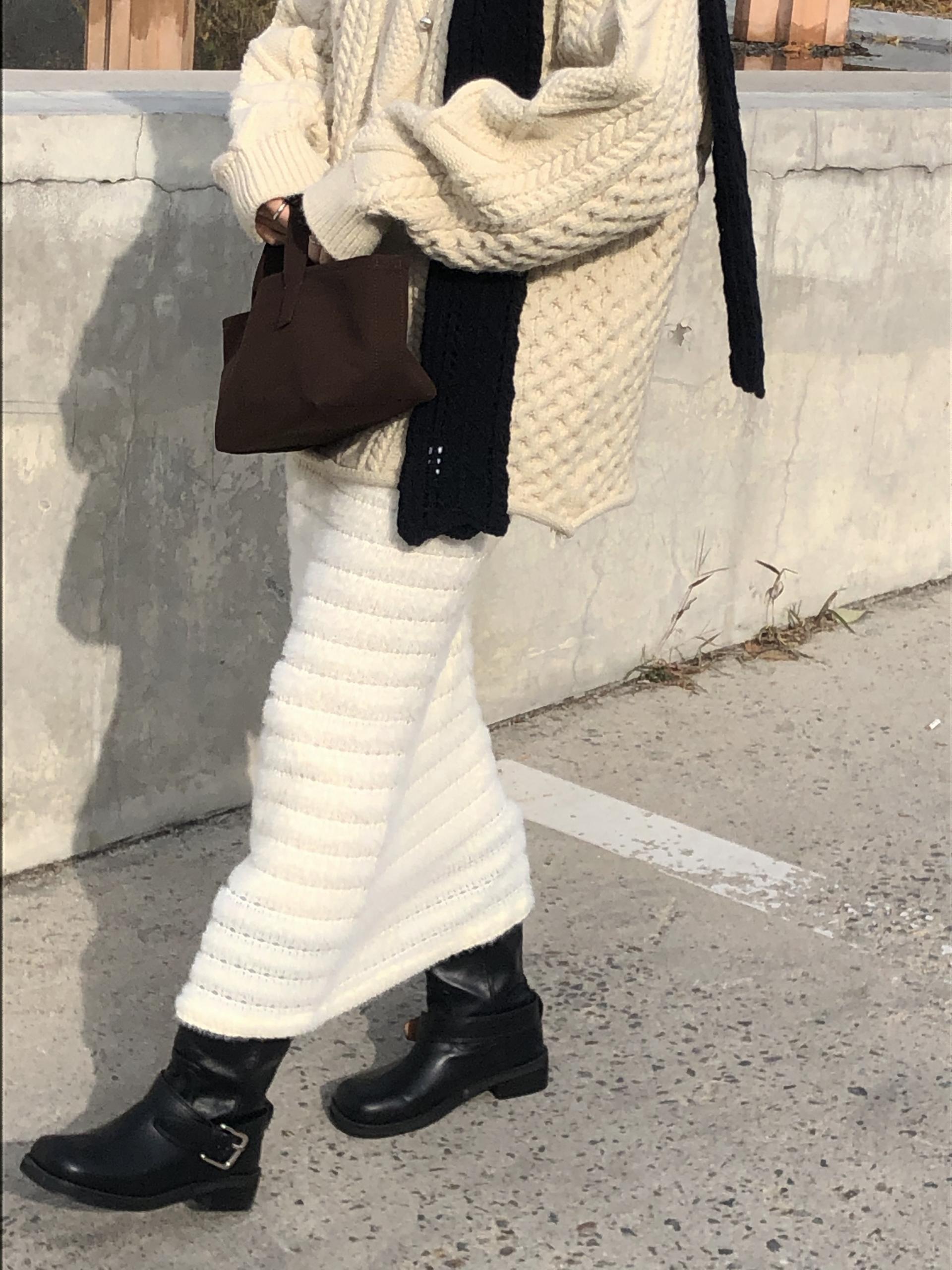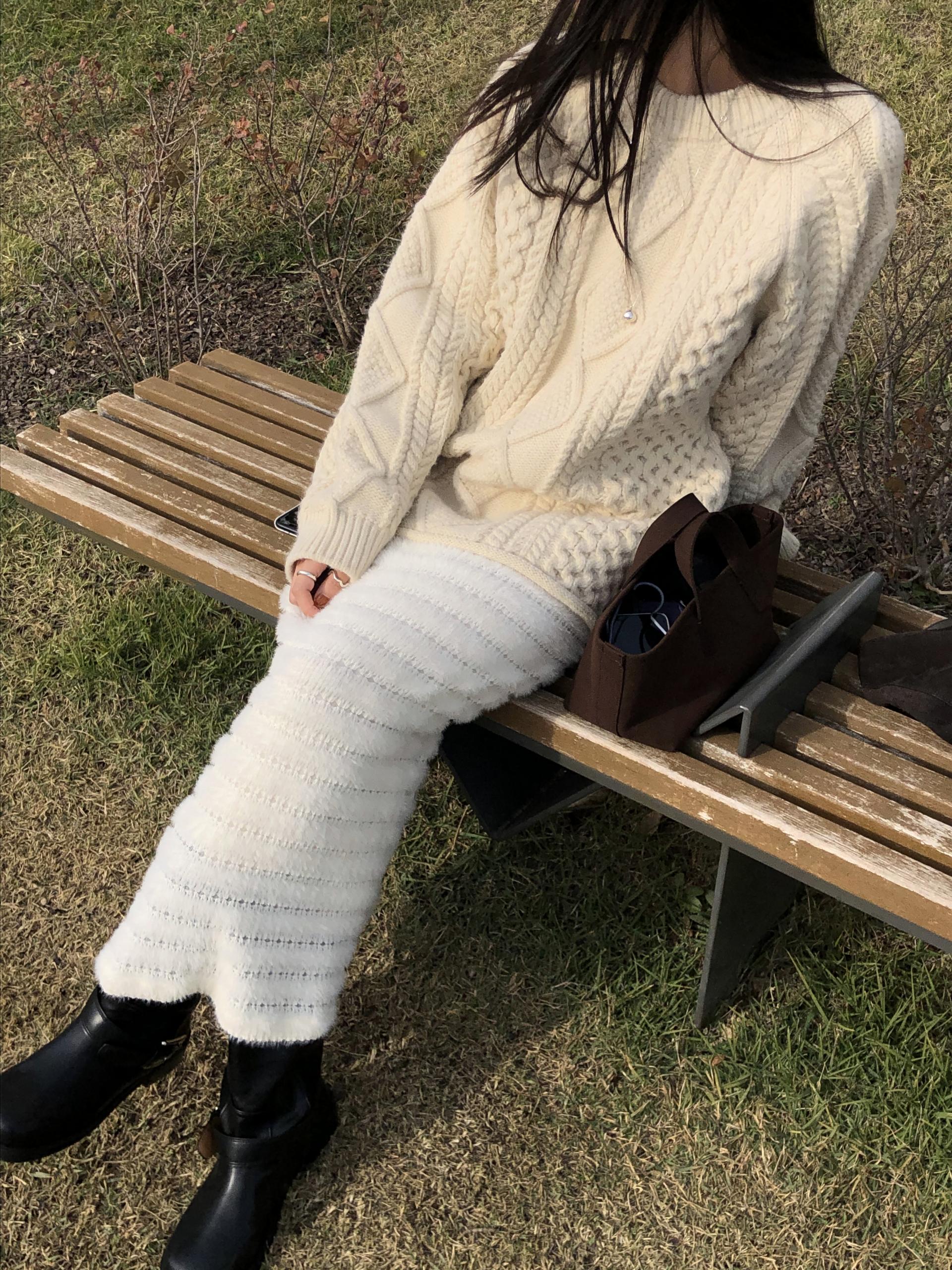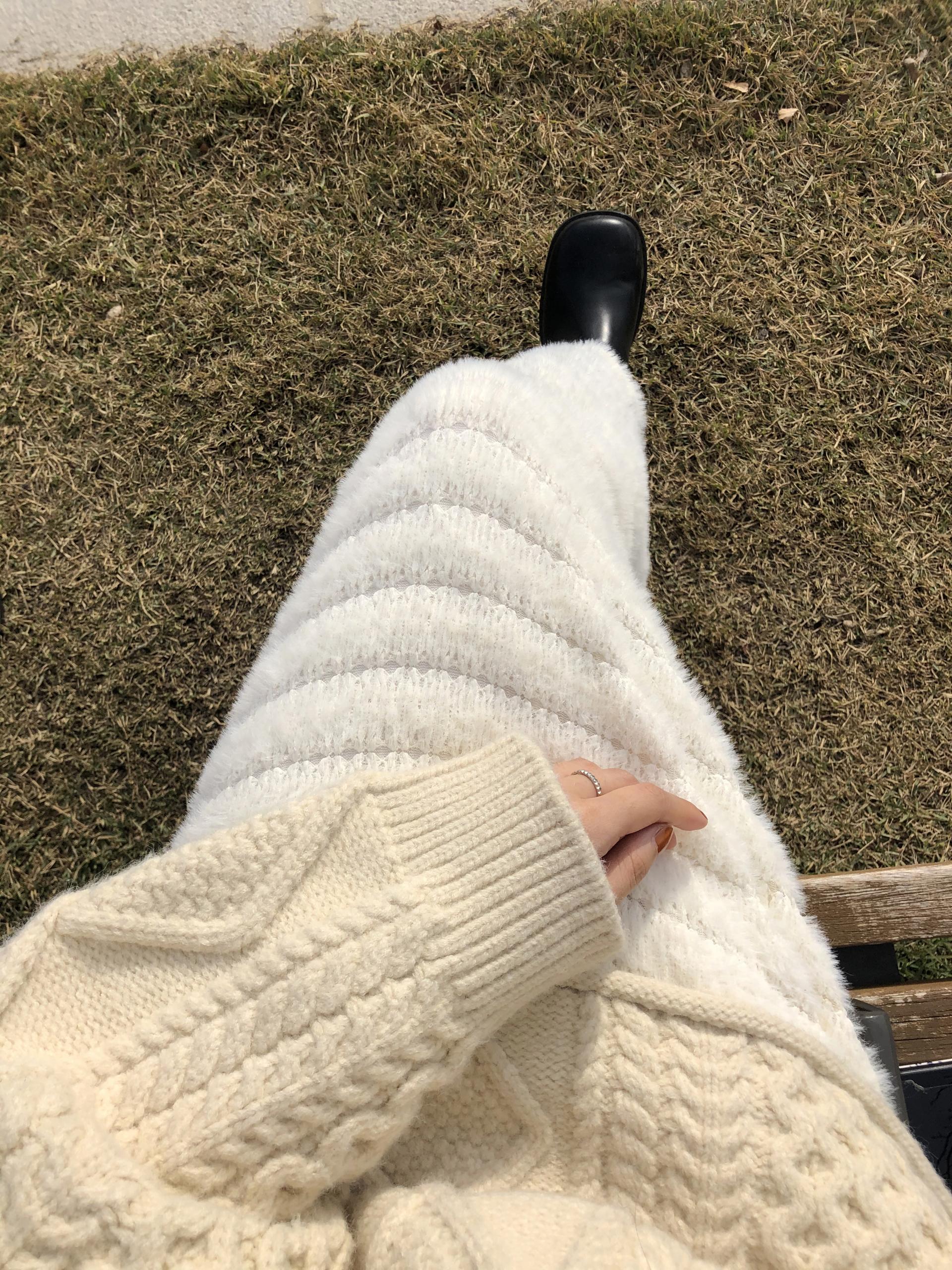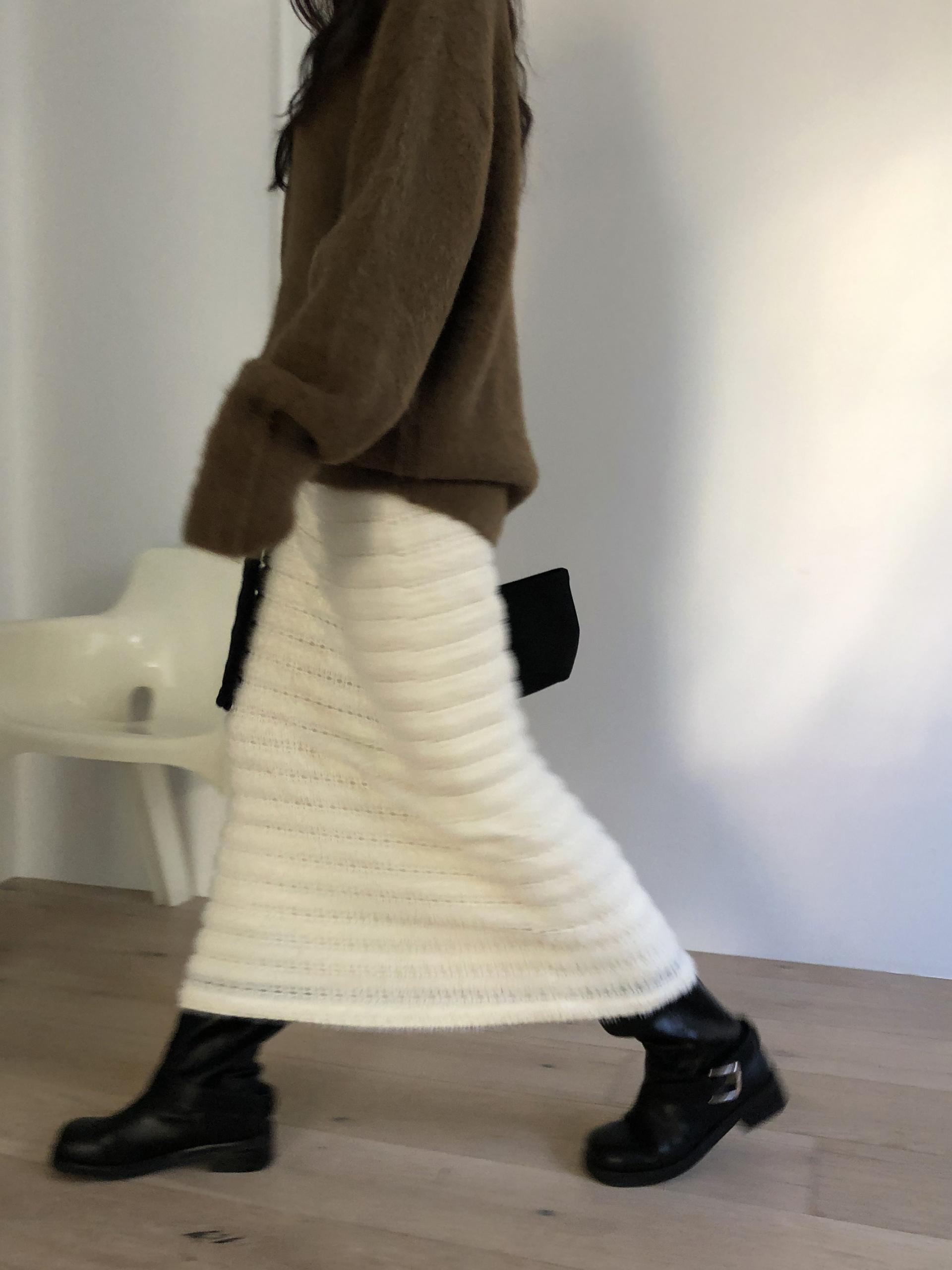 흔히 볼 수 있는 골지 짜임의 니트 스커트가 아니라 더 특별해요.