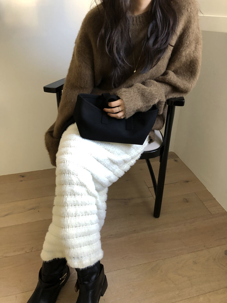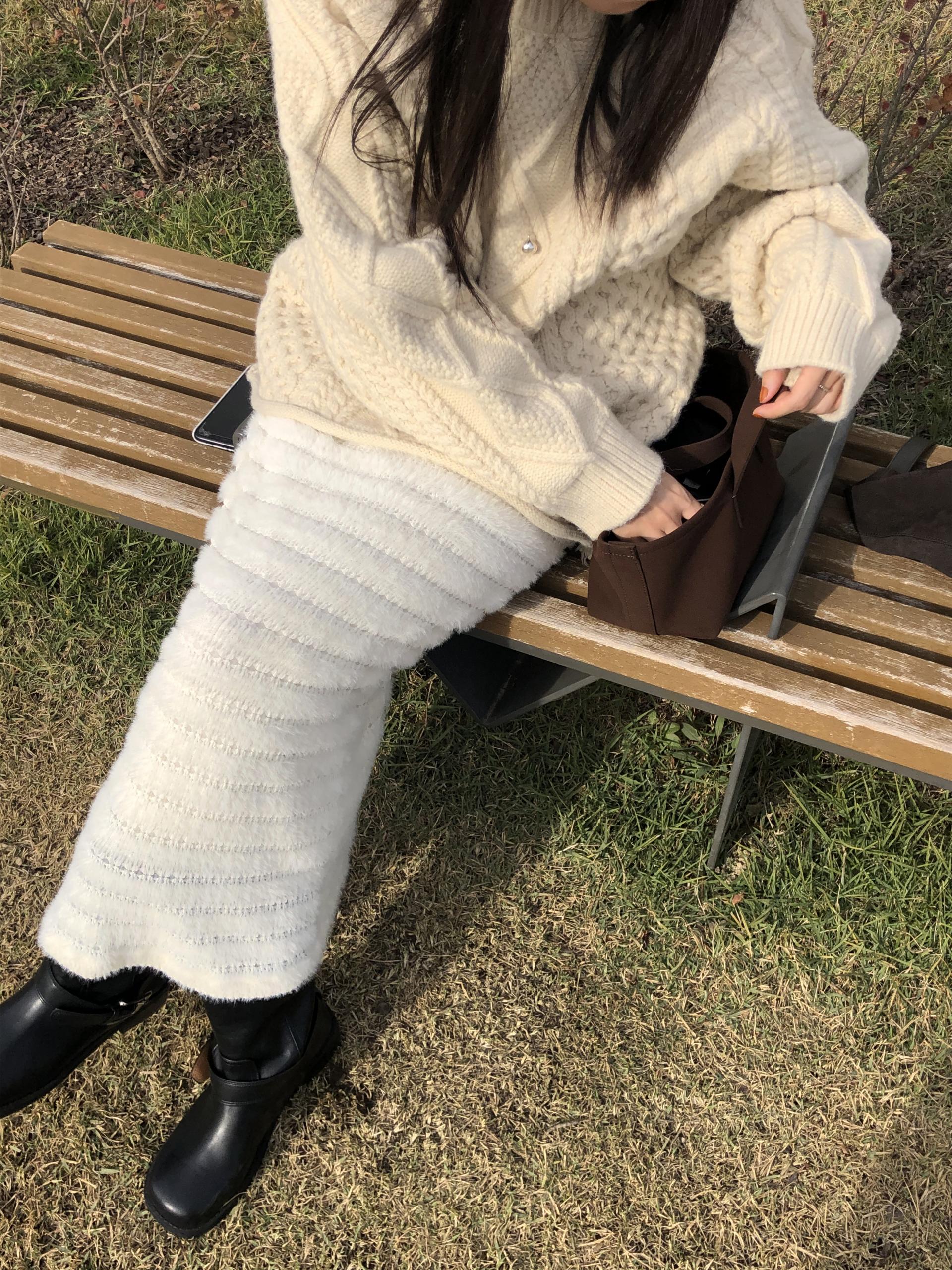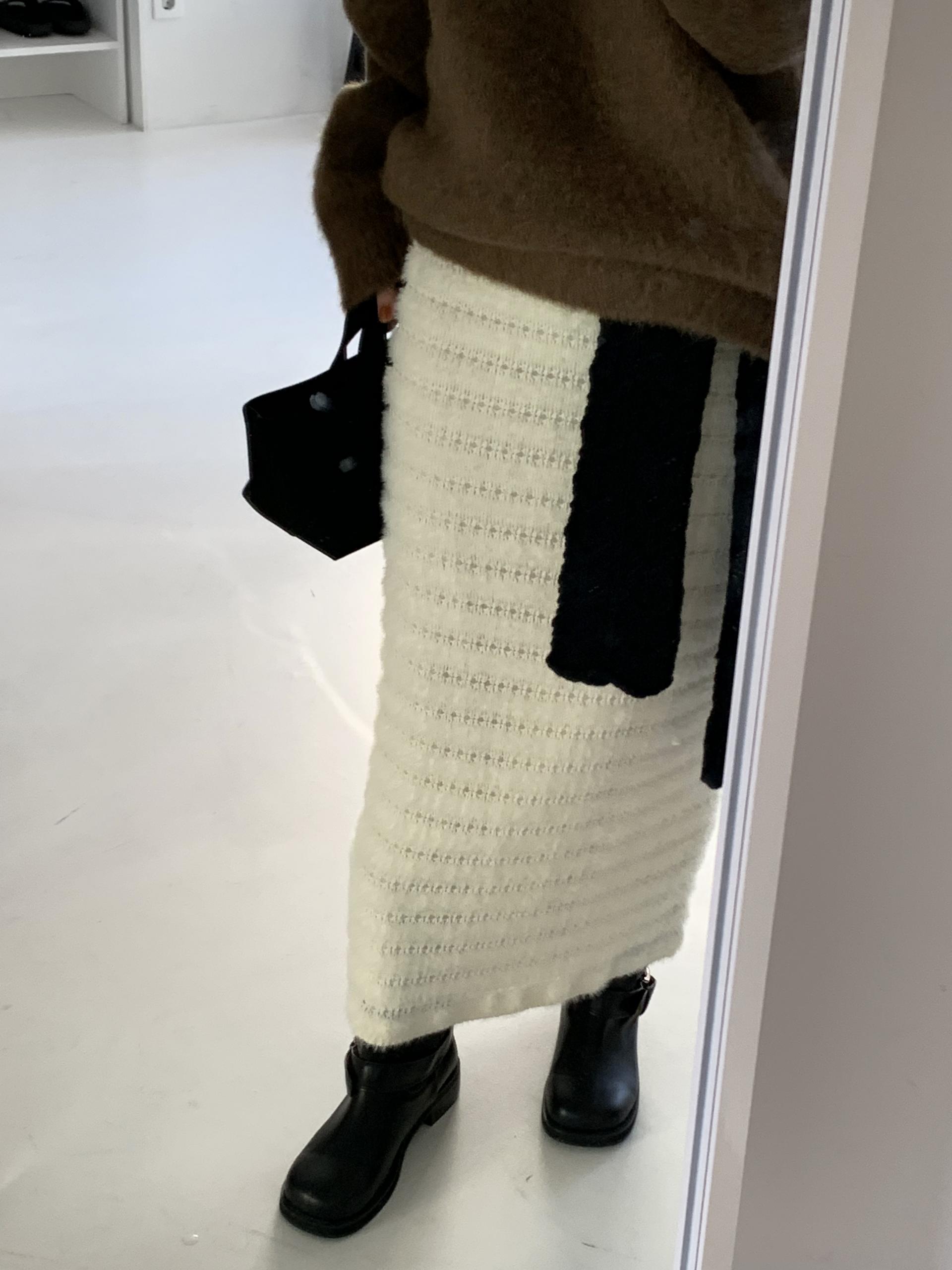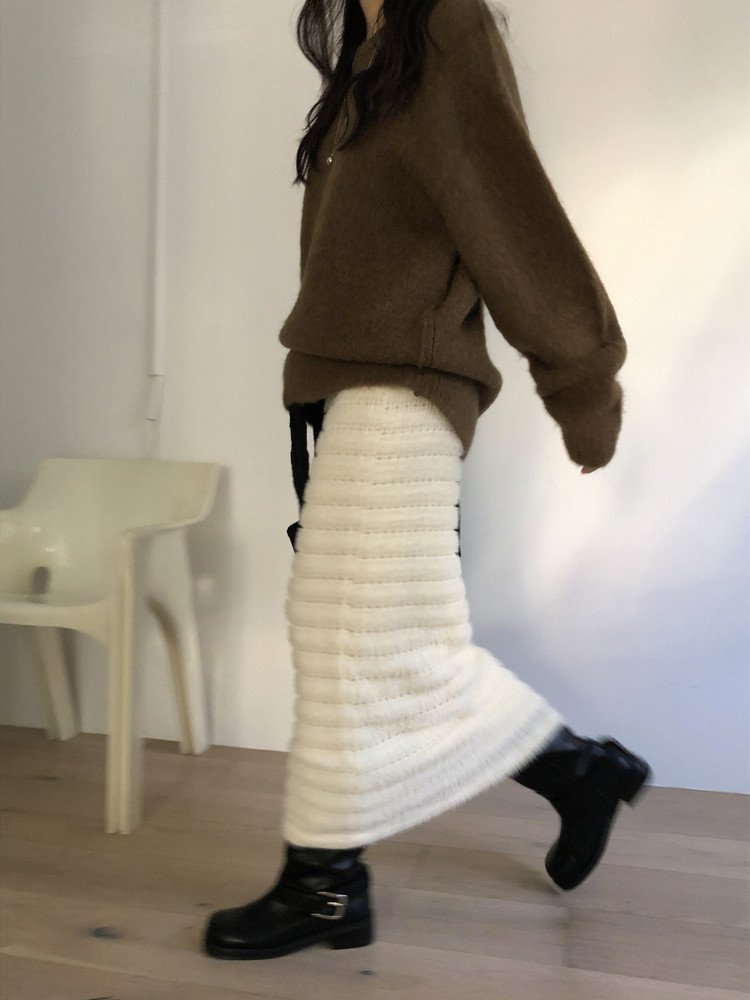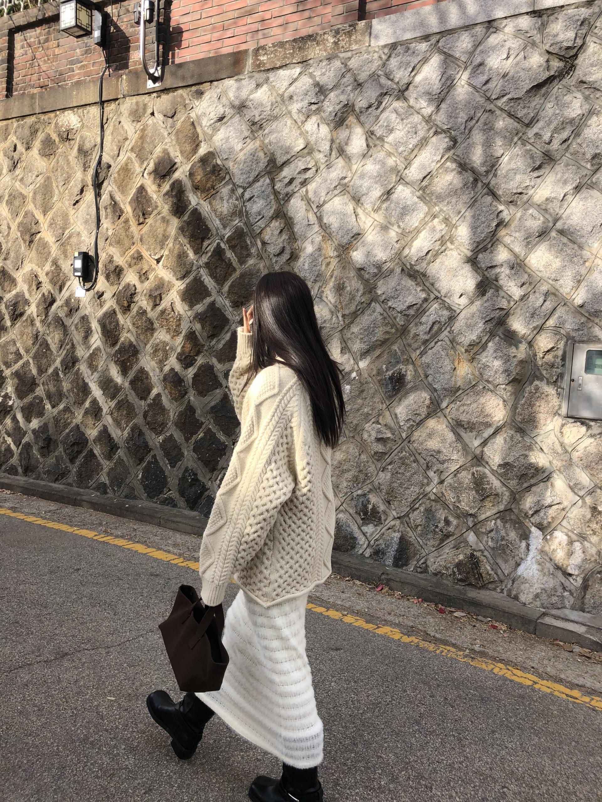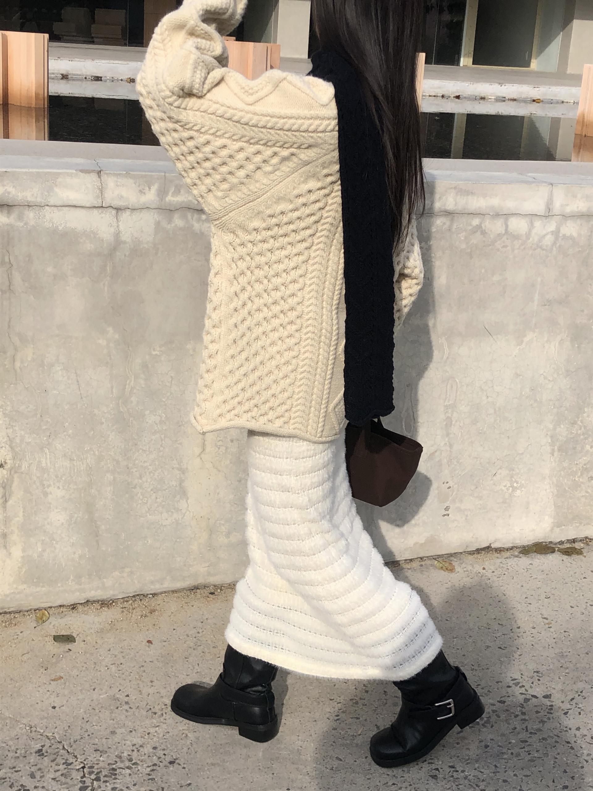 흔히 볼 수 있는 골지 짜임의 니트 스커트가 아니라 더 특별해요.