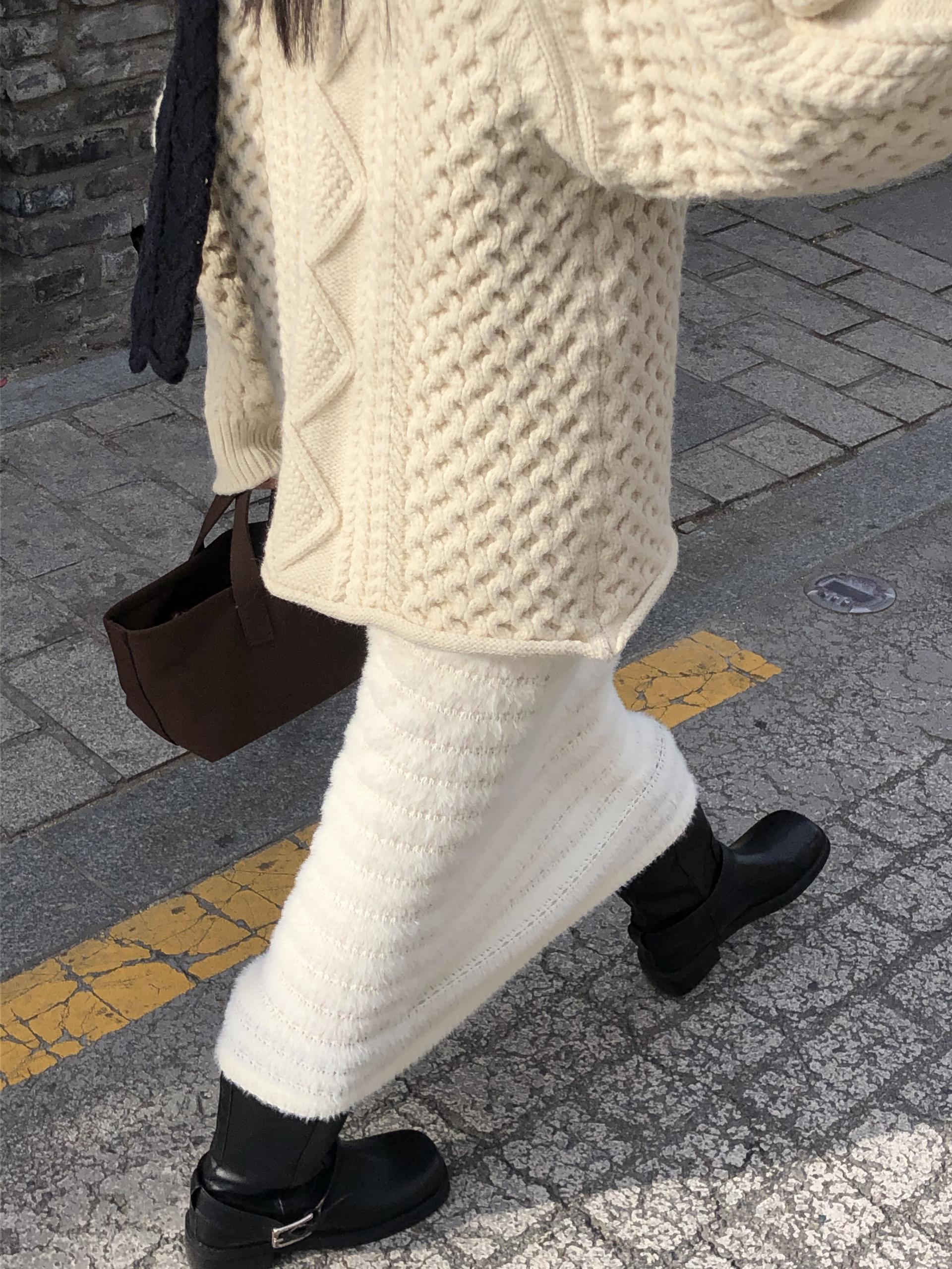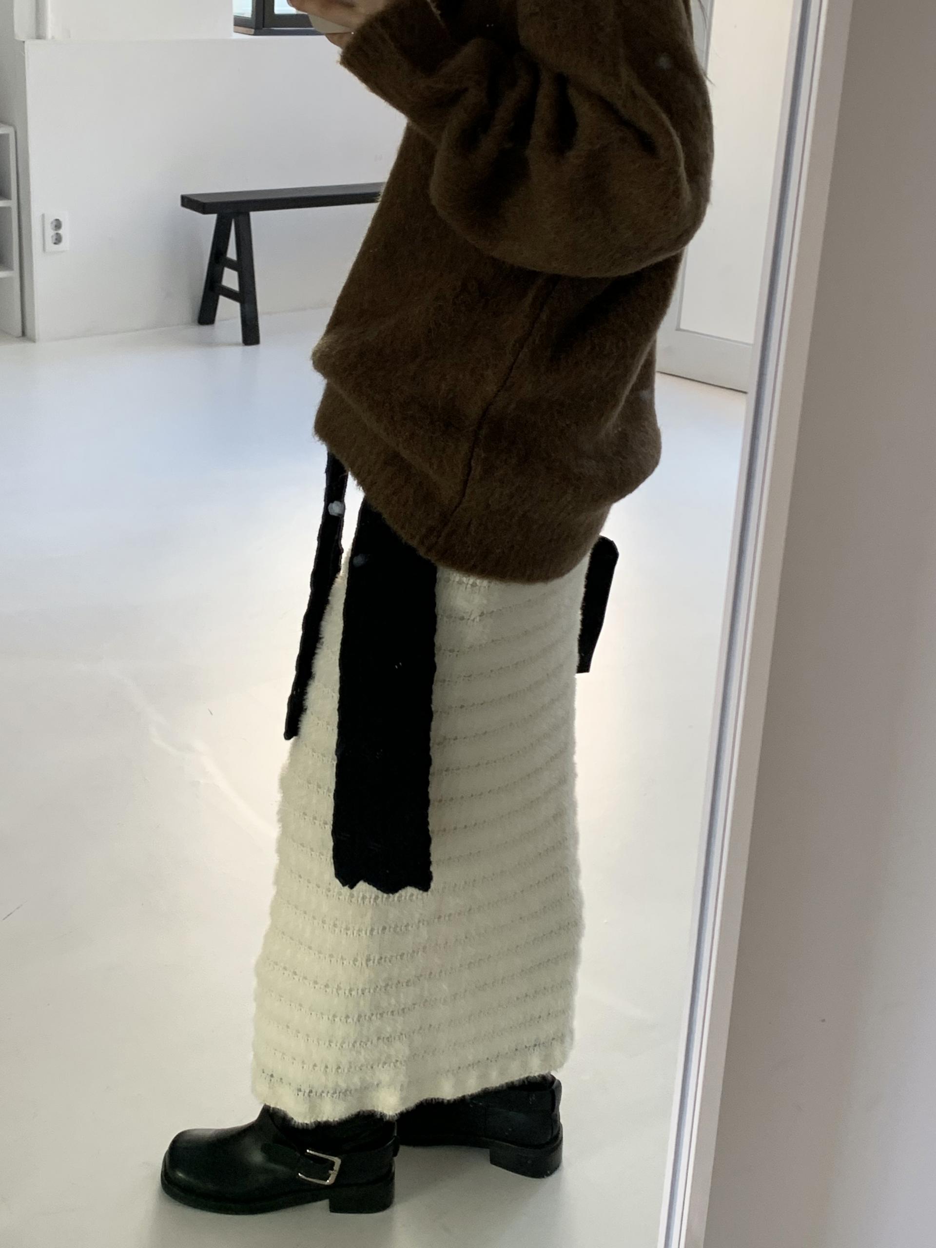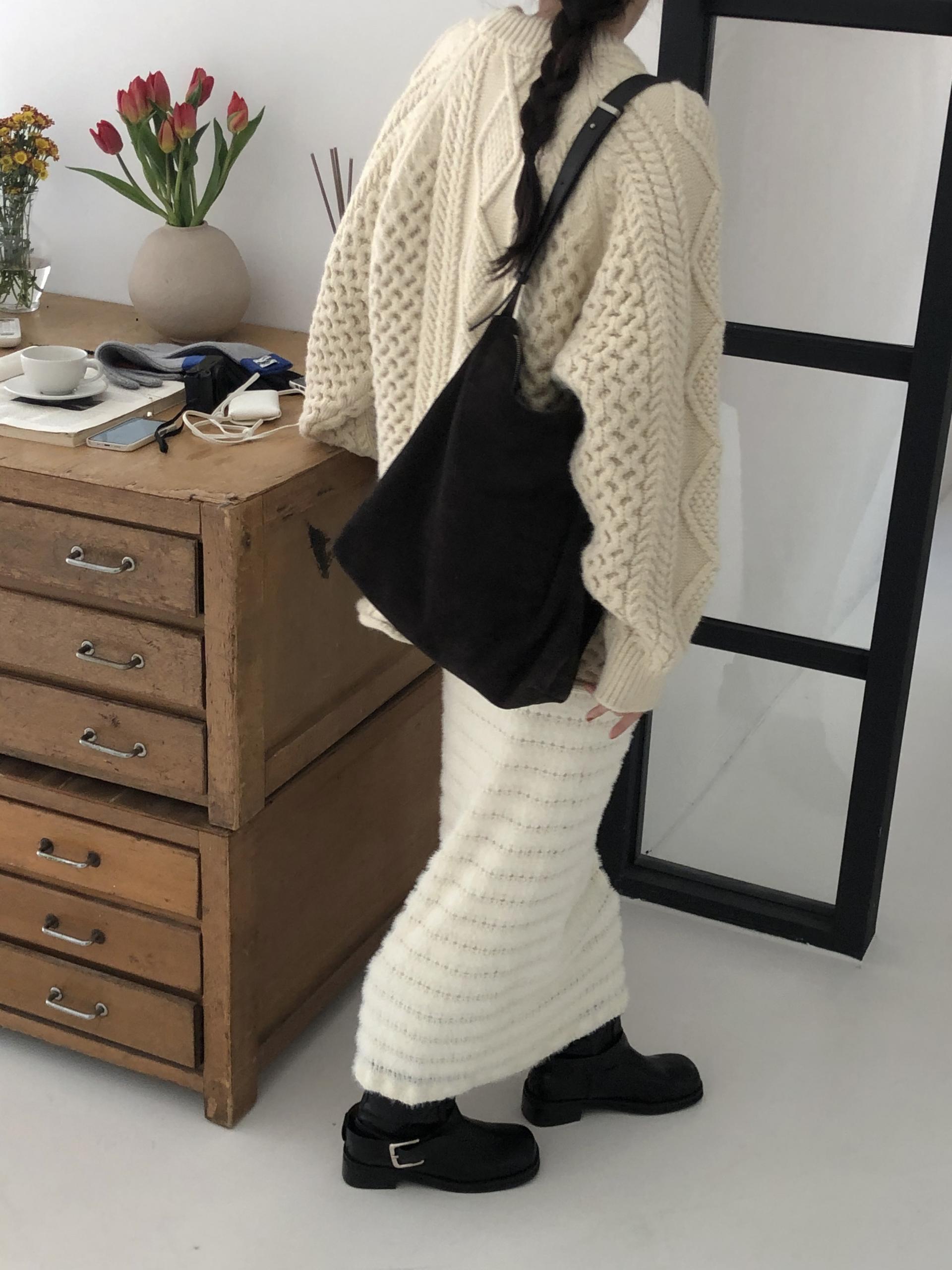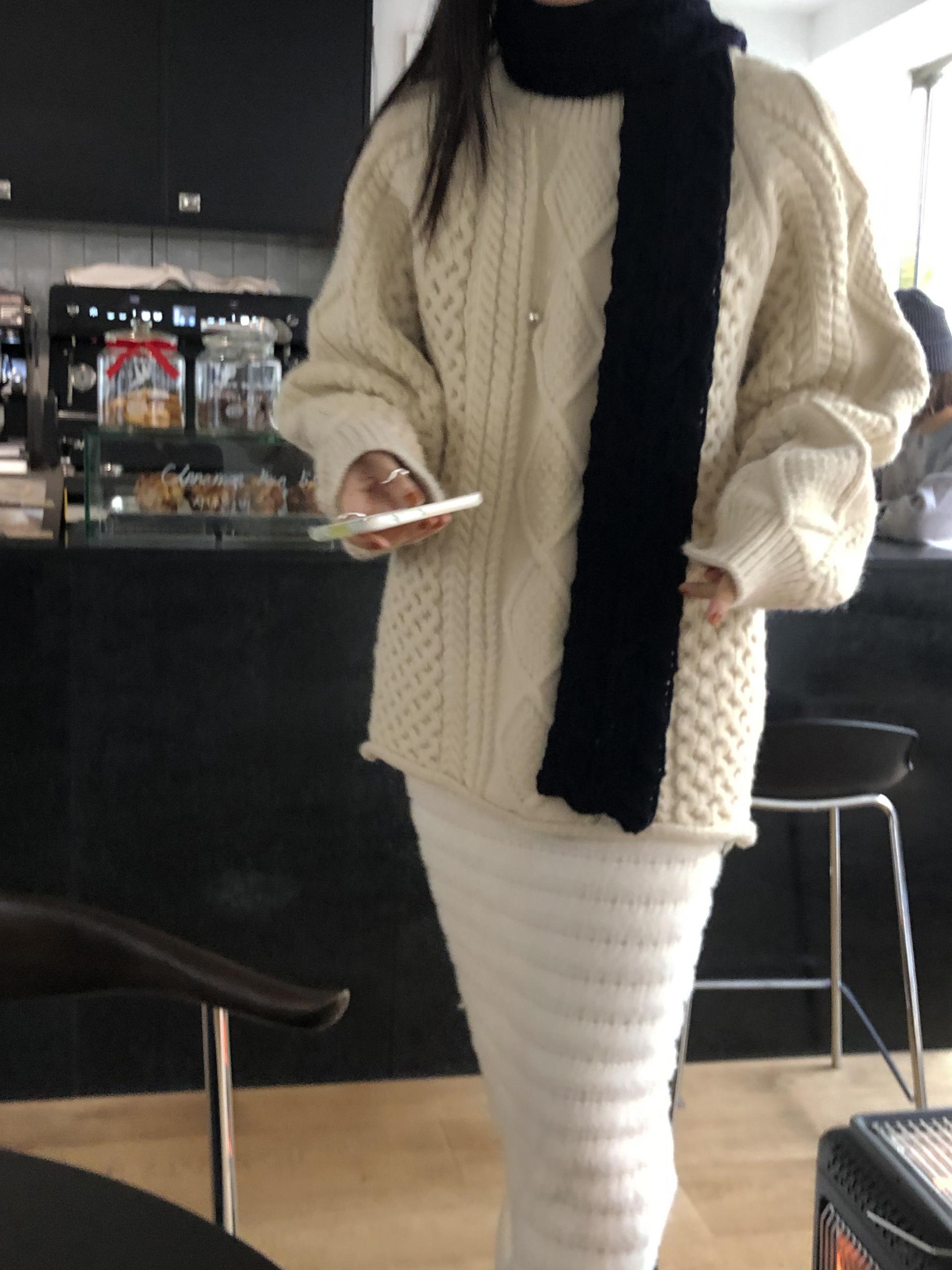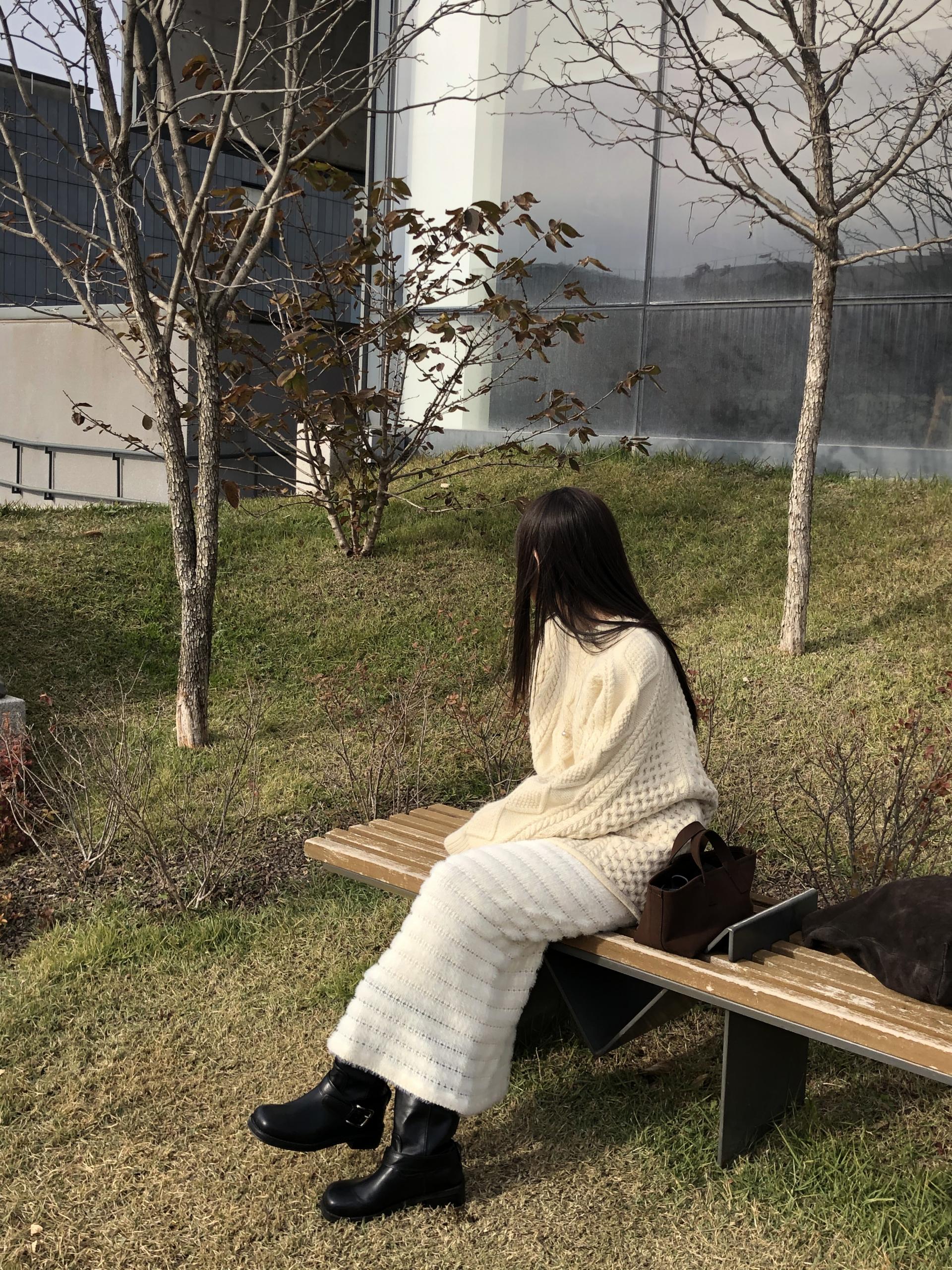 흔히 볼 수 있는 골지 짜임의 니트 스커트가 아니라 더 특별해요.