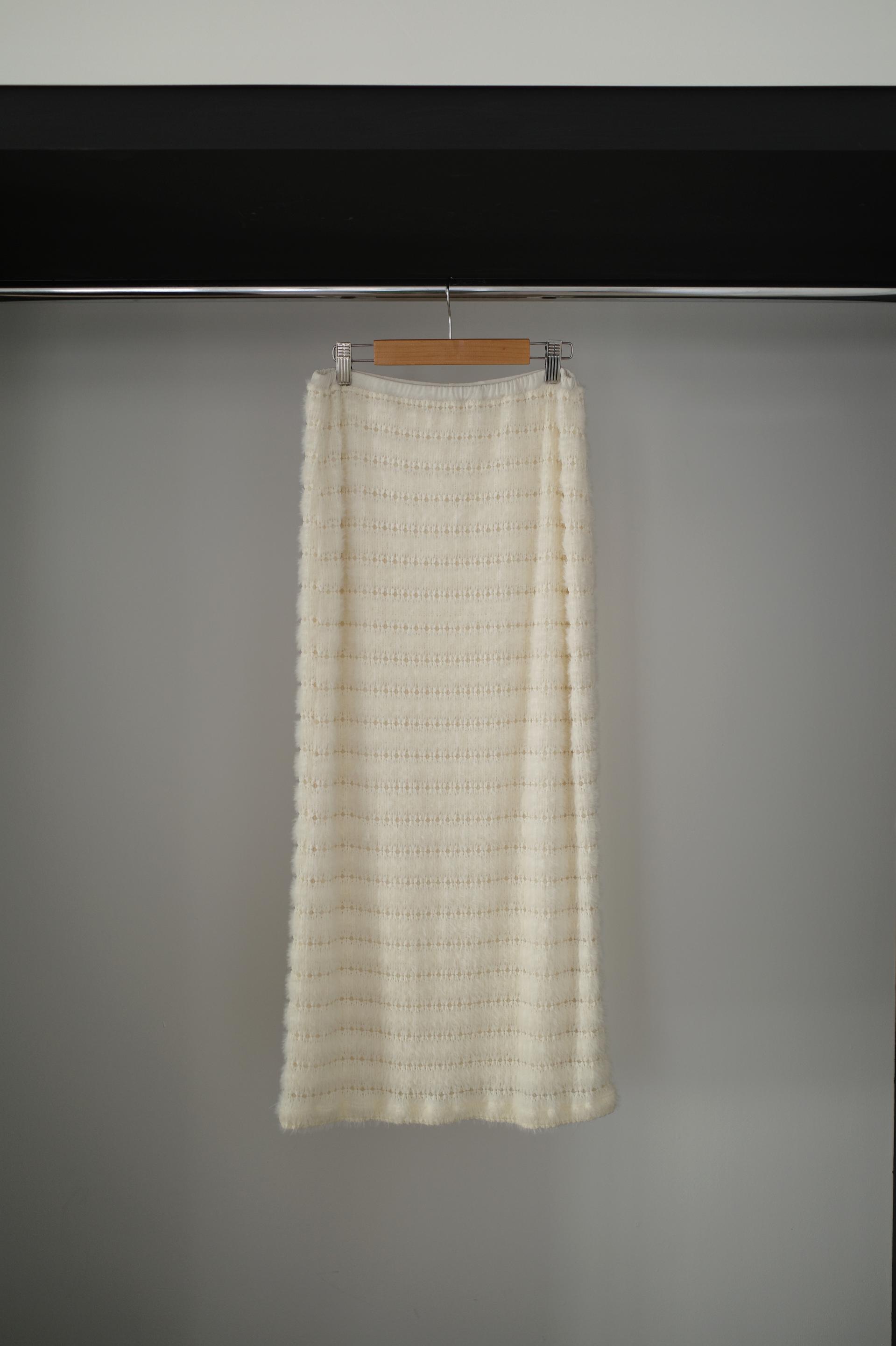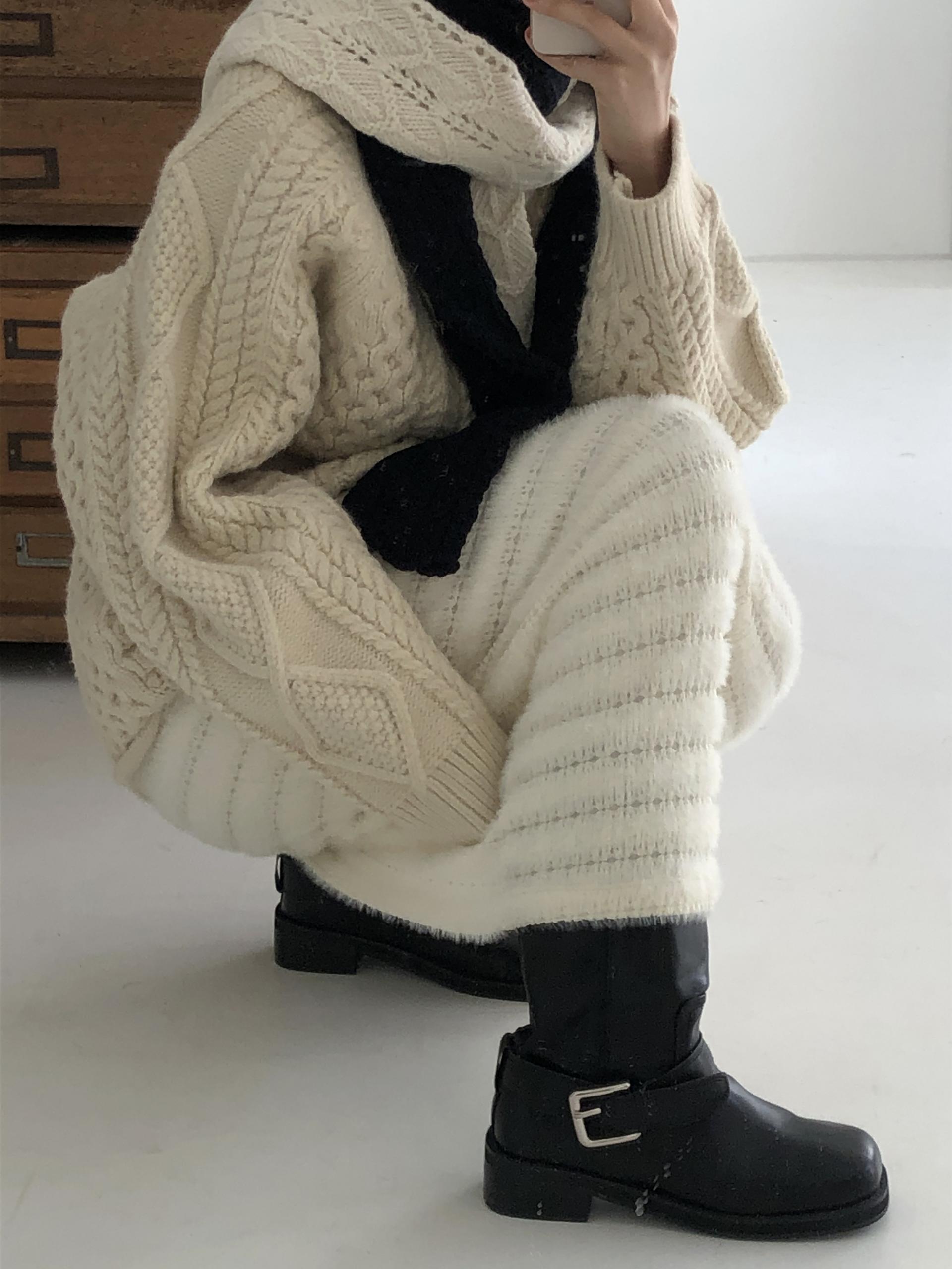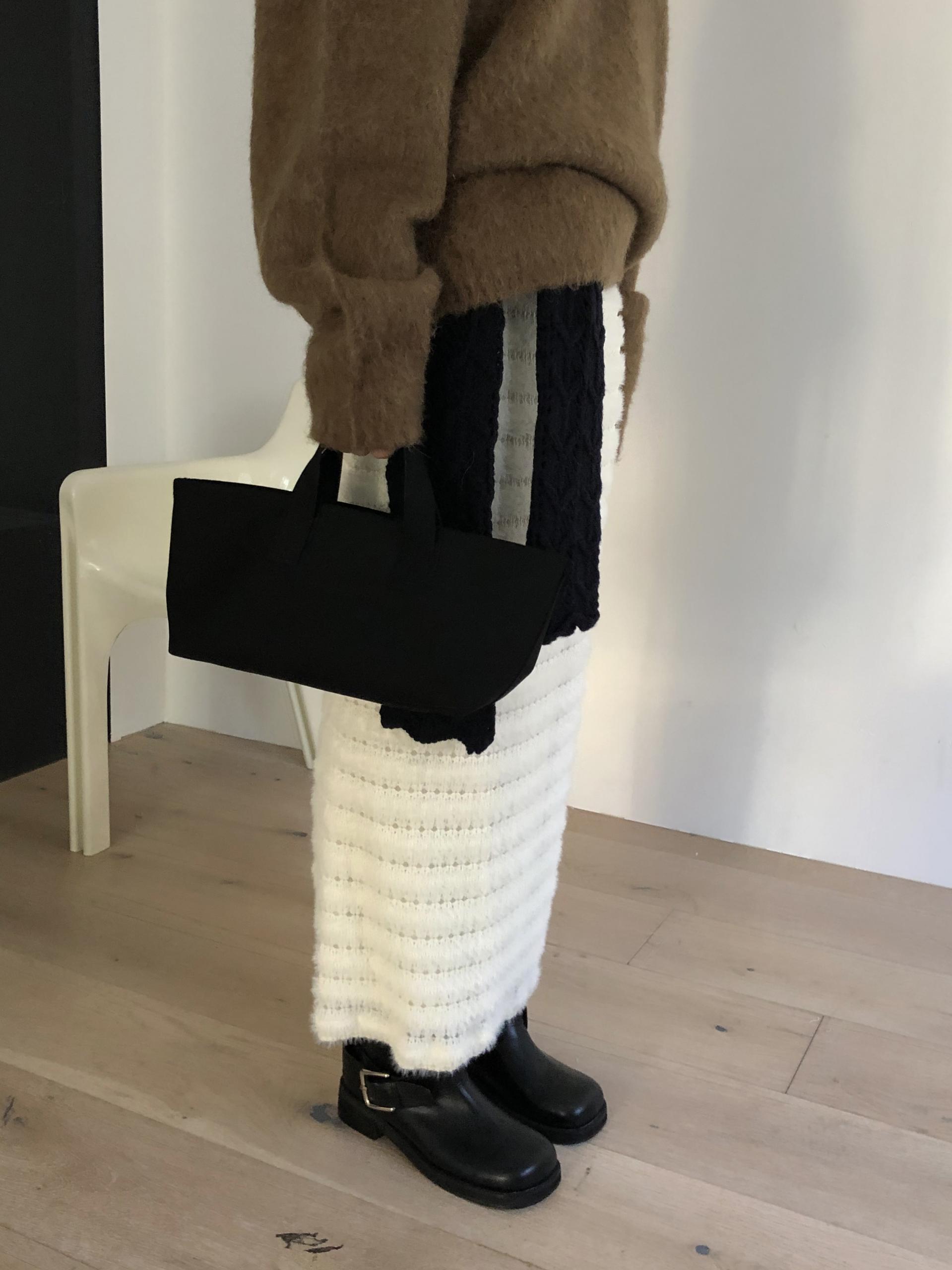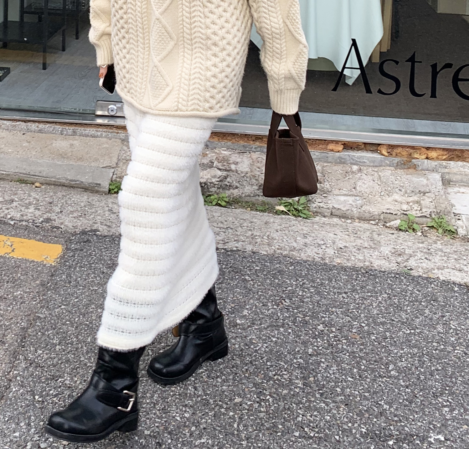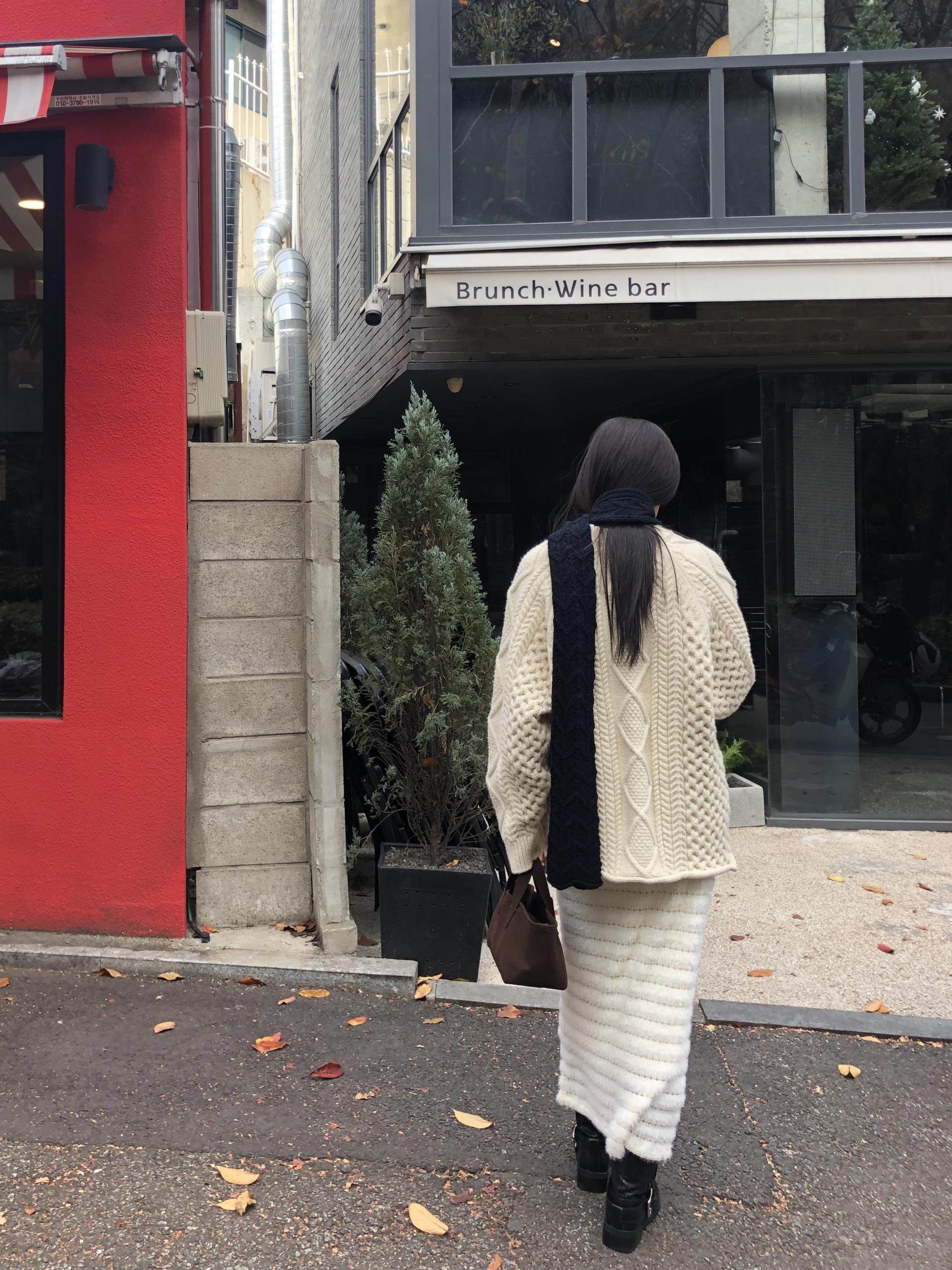 흔히 볼 수 있는 골지 짜임의 니트 스커트가 아니라 더 특별해요.
