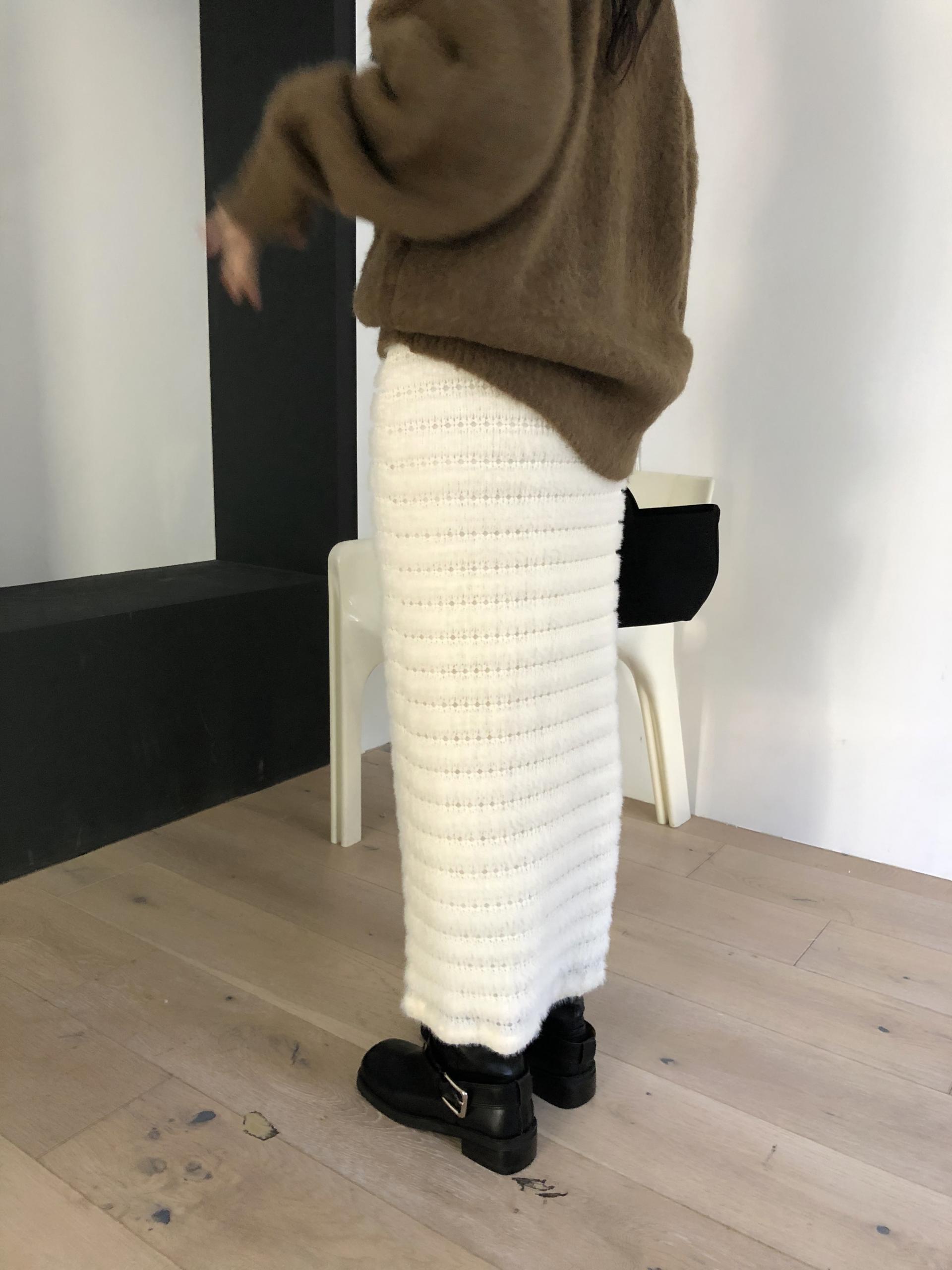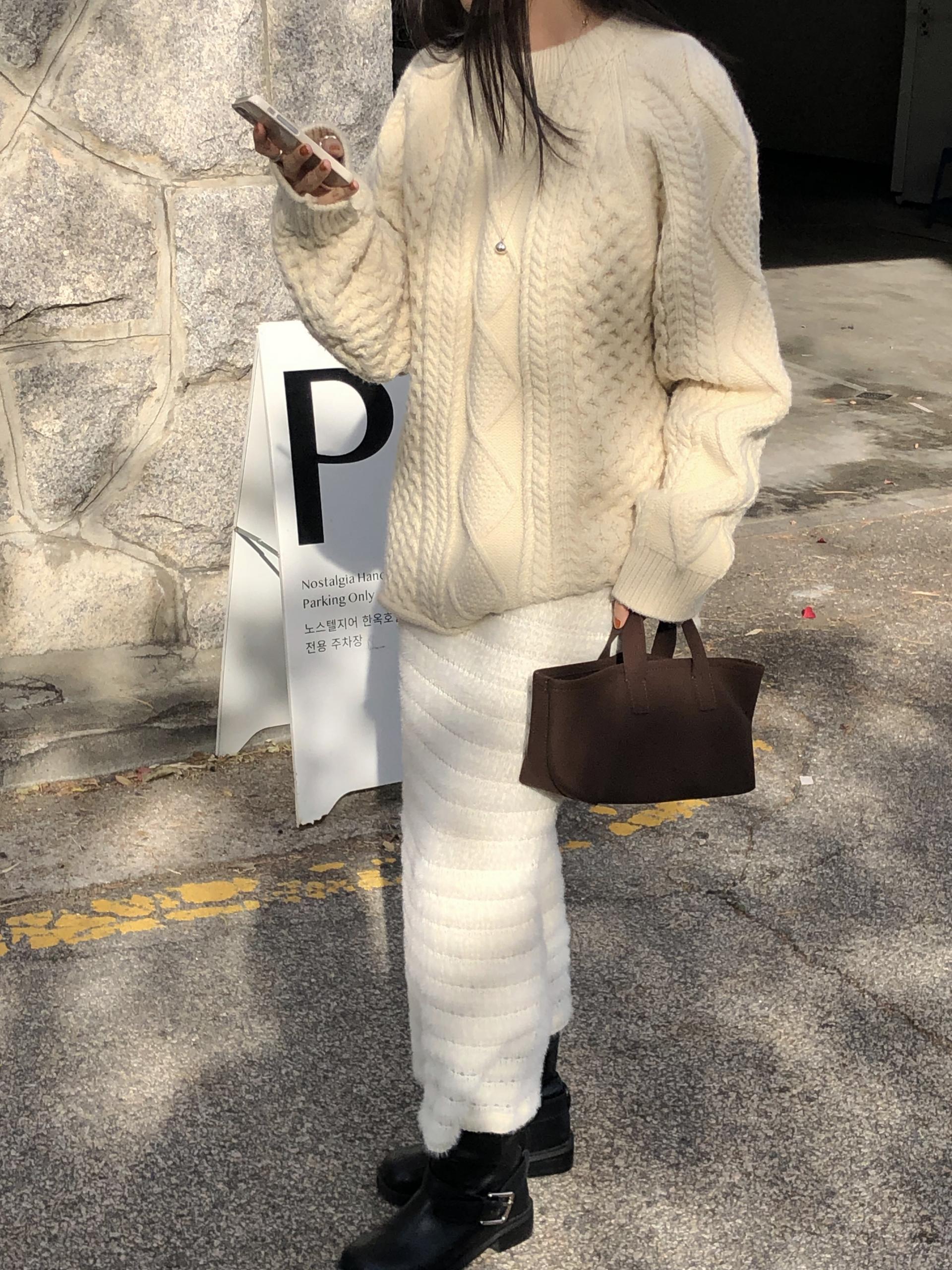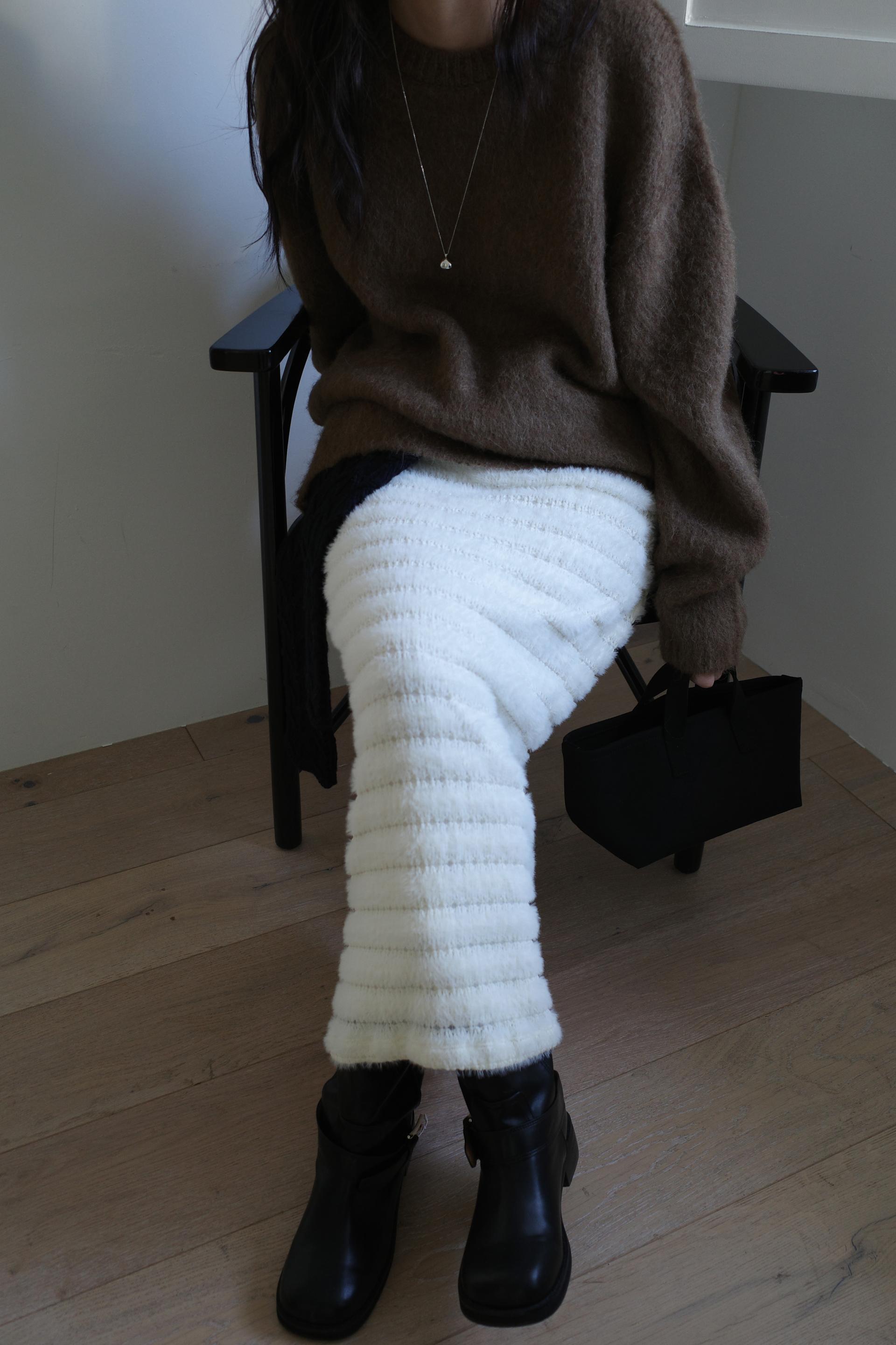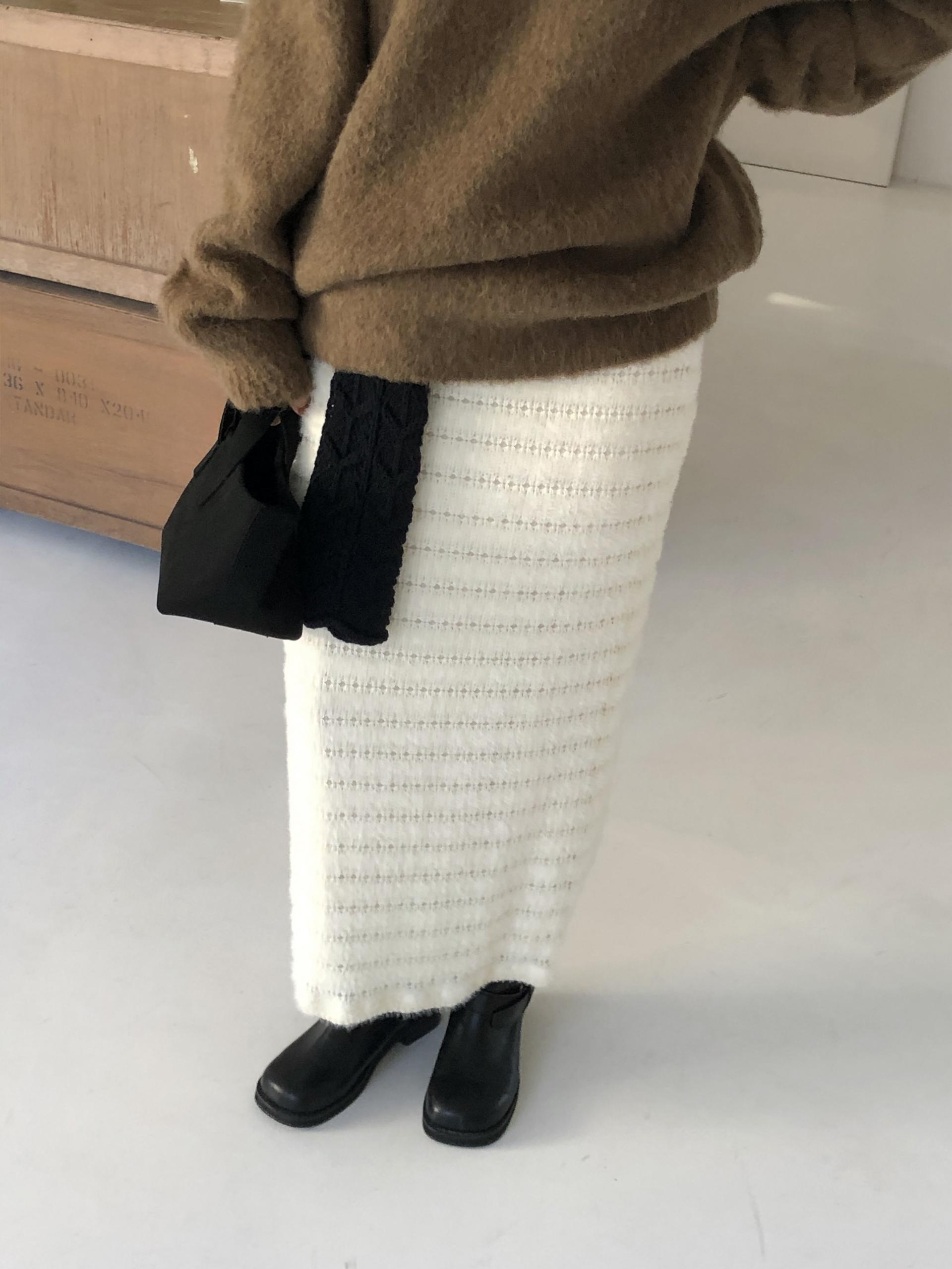 포근포근한 아이보리 원컬러로 니트웨어에 찰떡인 스커트예요.