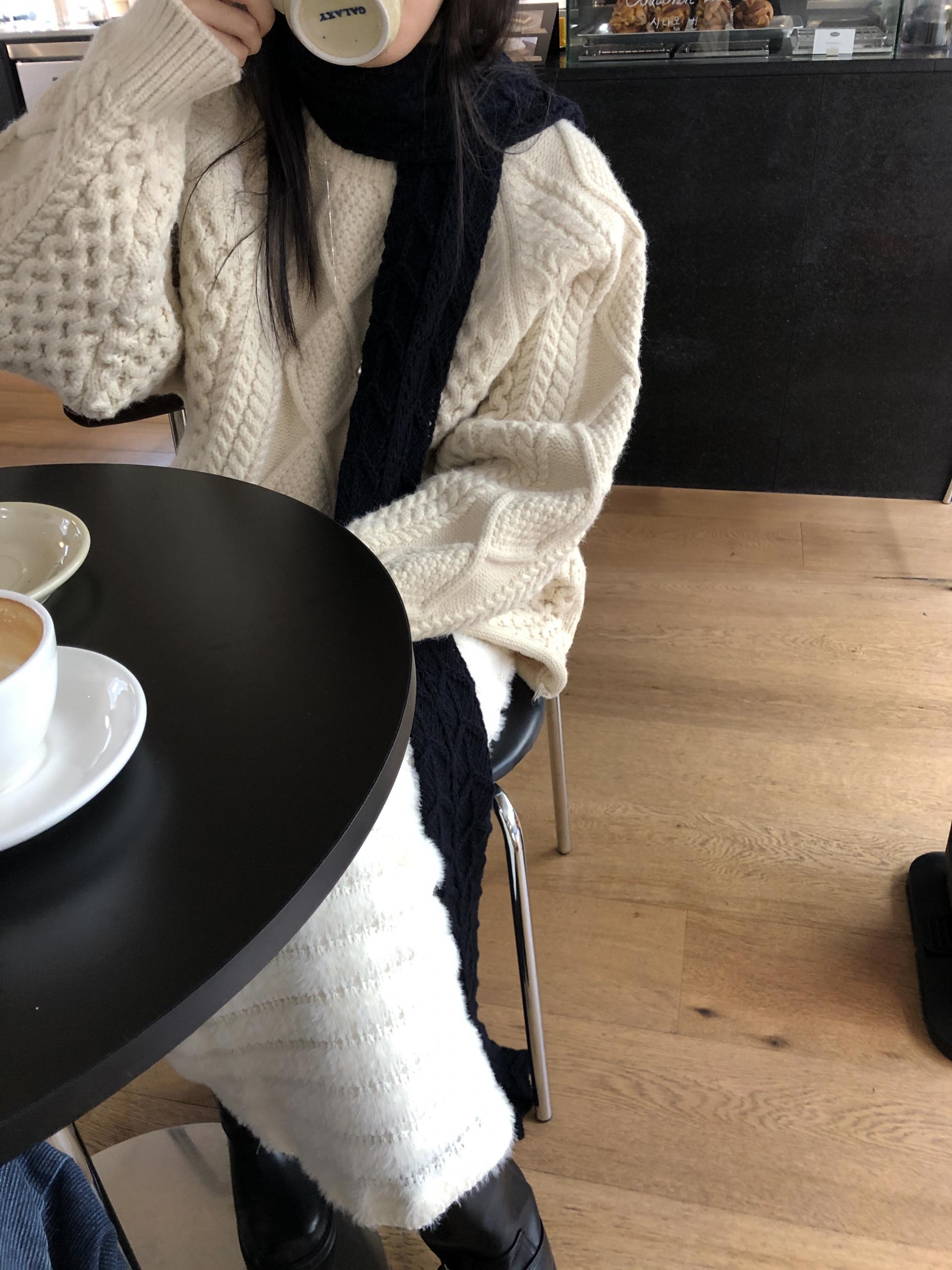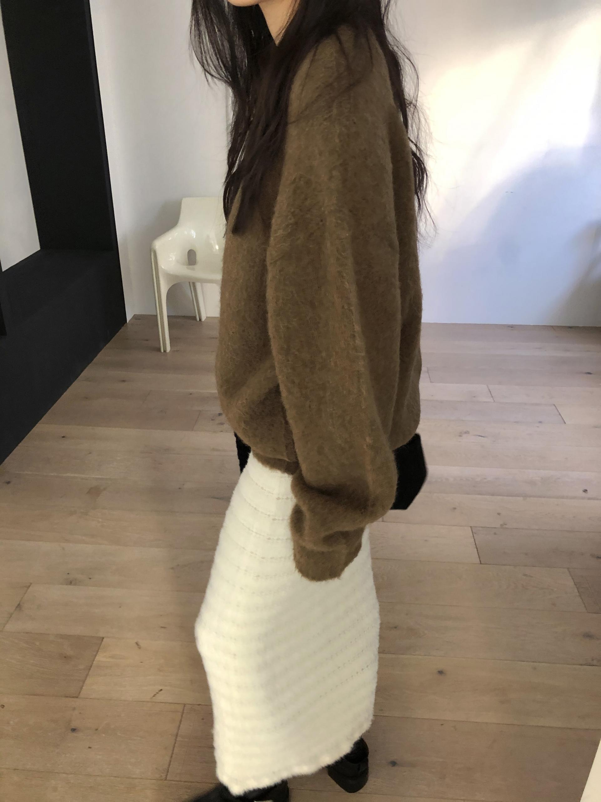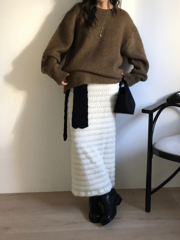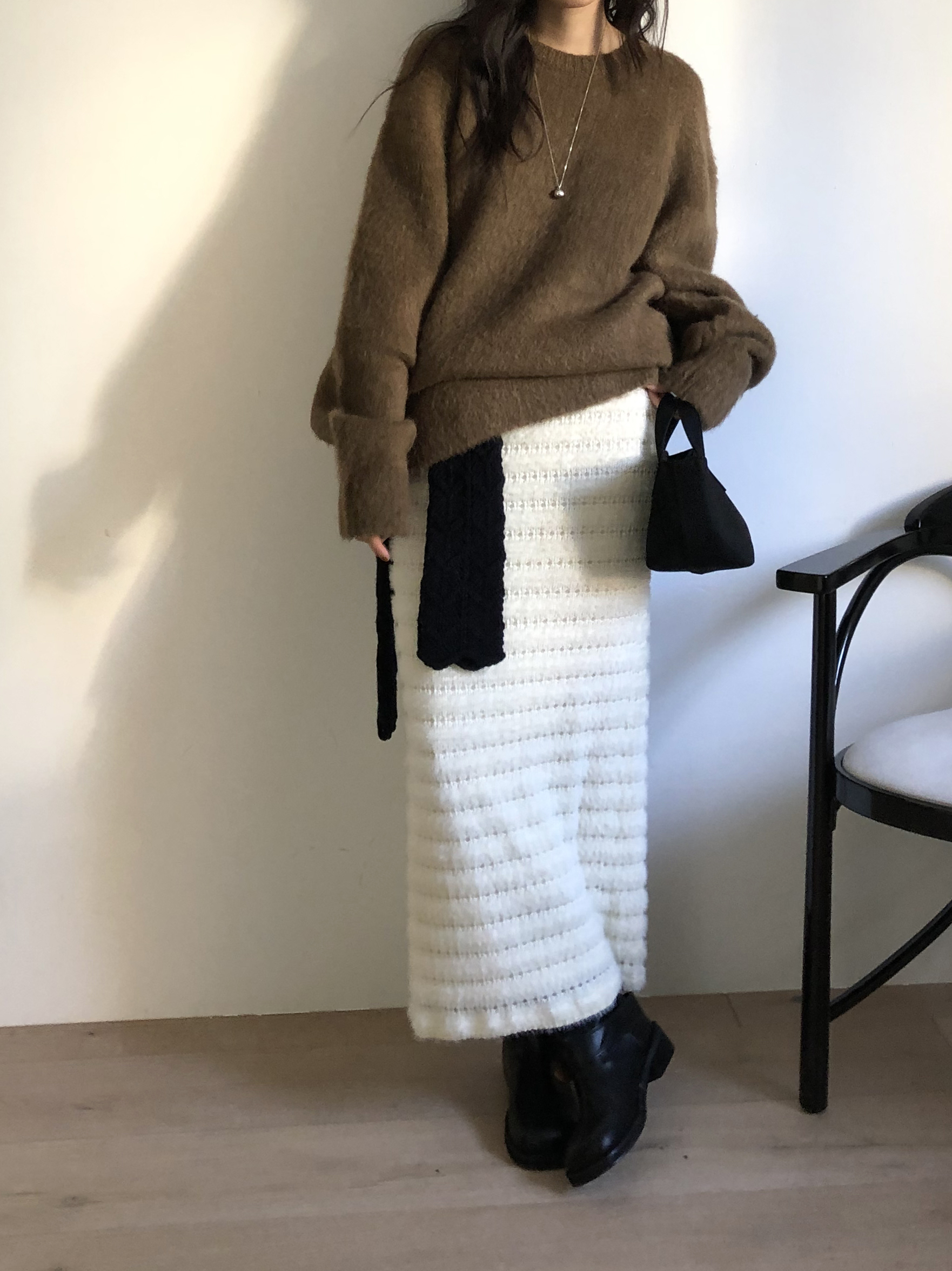 포근포근한 아이보리 원컬러로 니트웨어에 찰떡인 스커트예요.