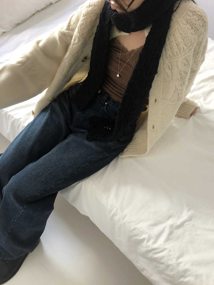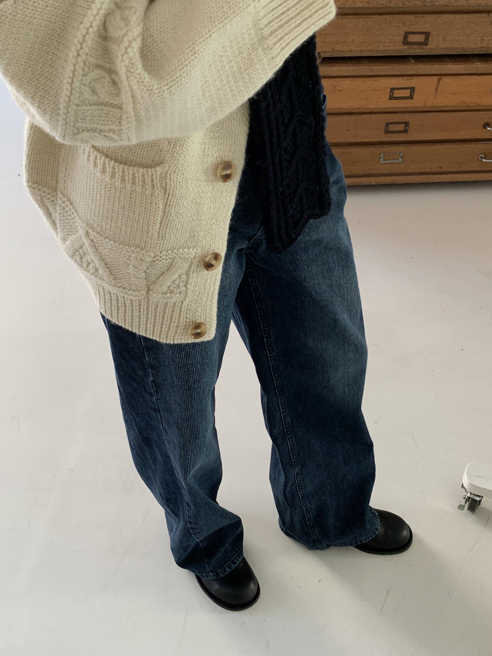 코듀로이 원단이라 일반 데님보다 따뜻하면서도 헤어감은 많은 편이 아니라서
