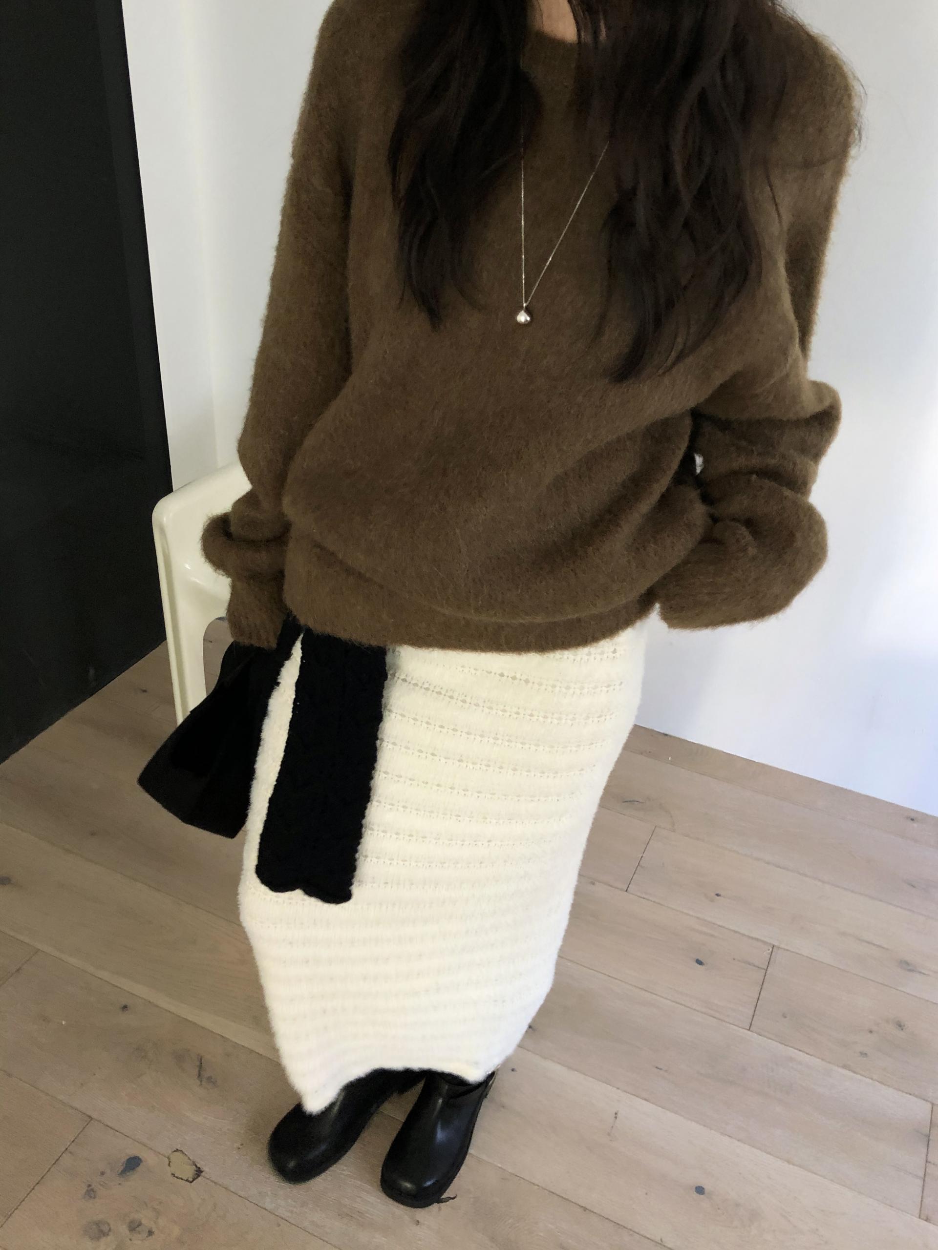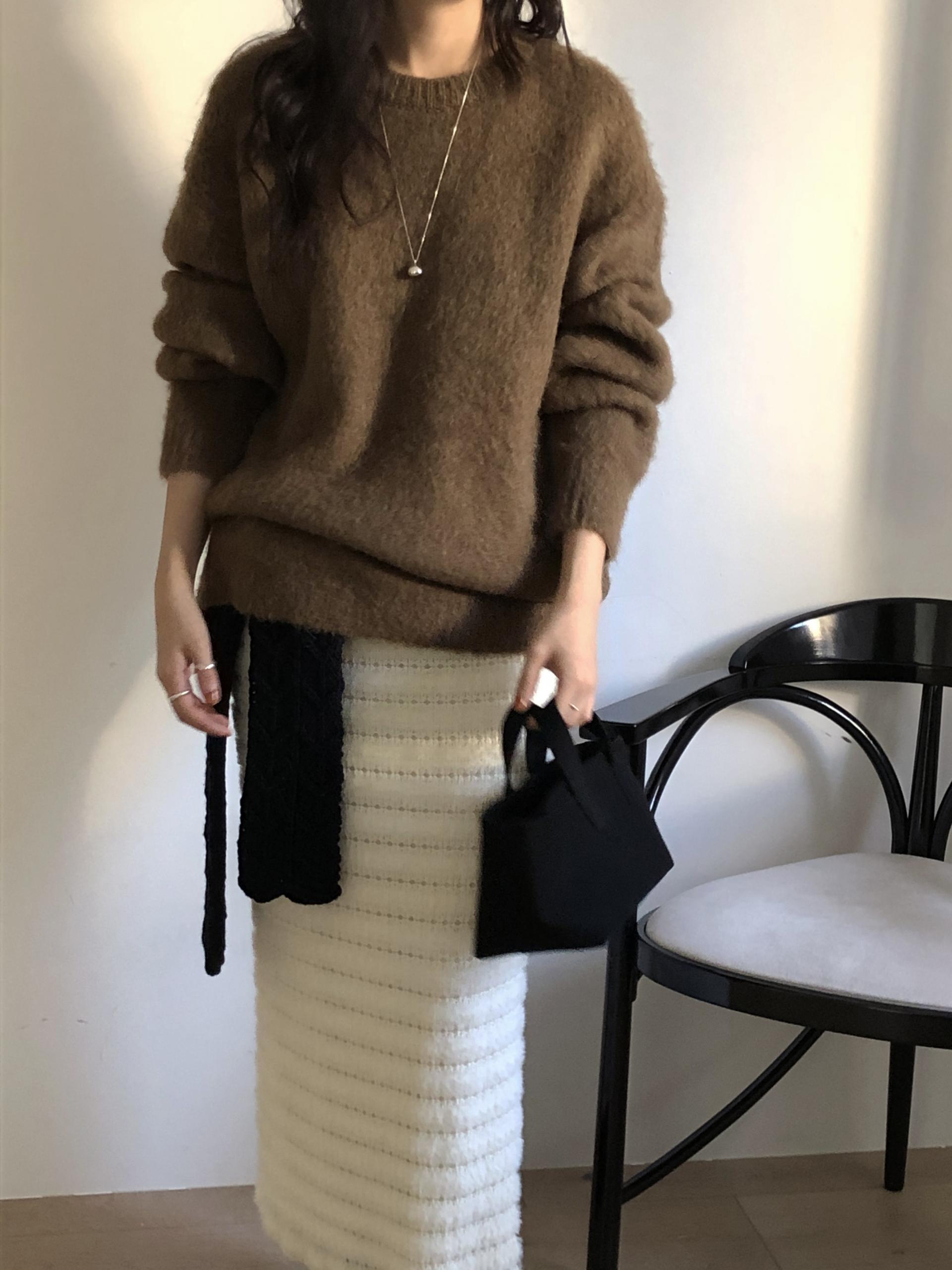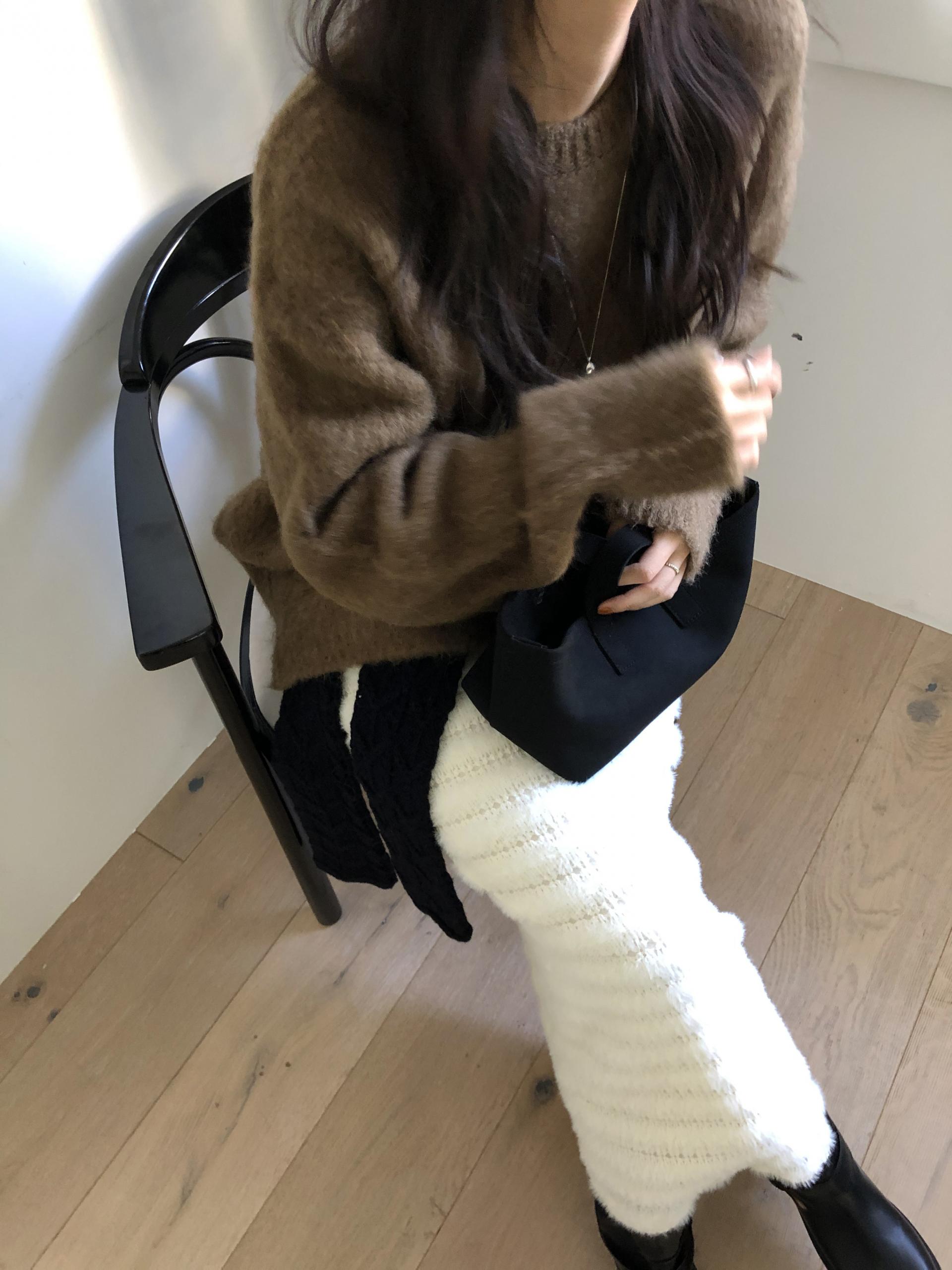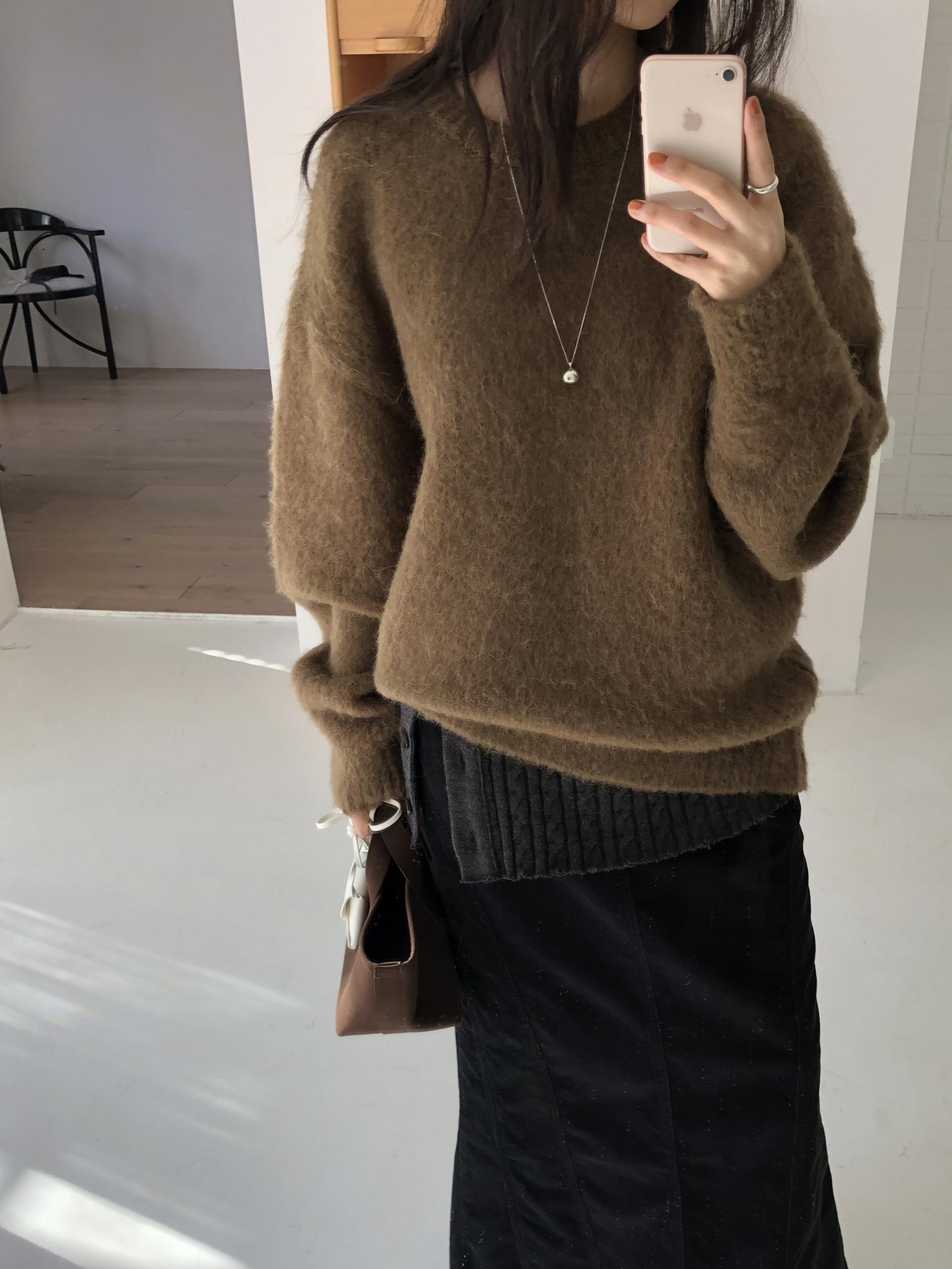 헤어감이 돋보이는 소재로, 소재만으로도 존재감이 확실한 니트예요.