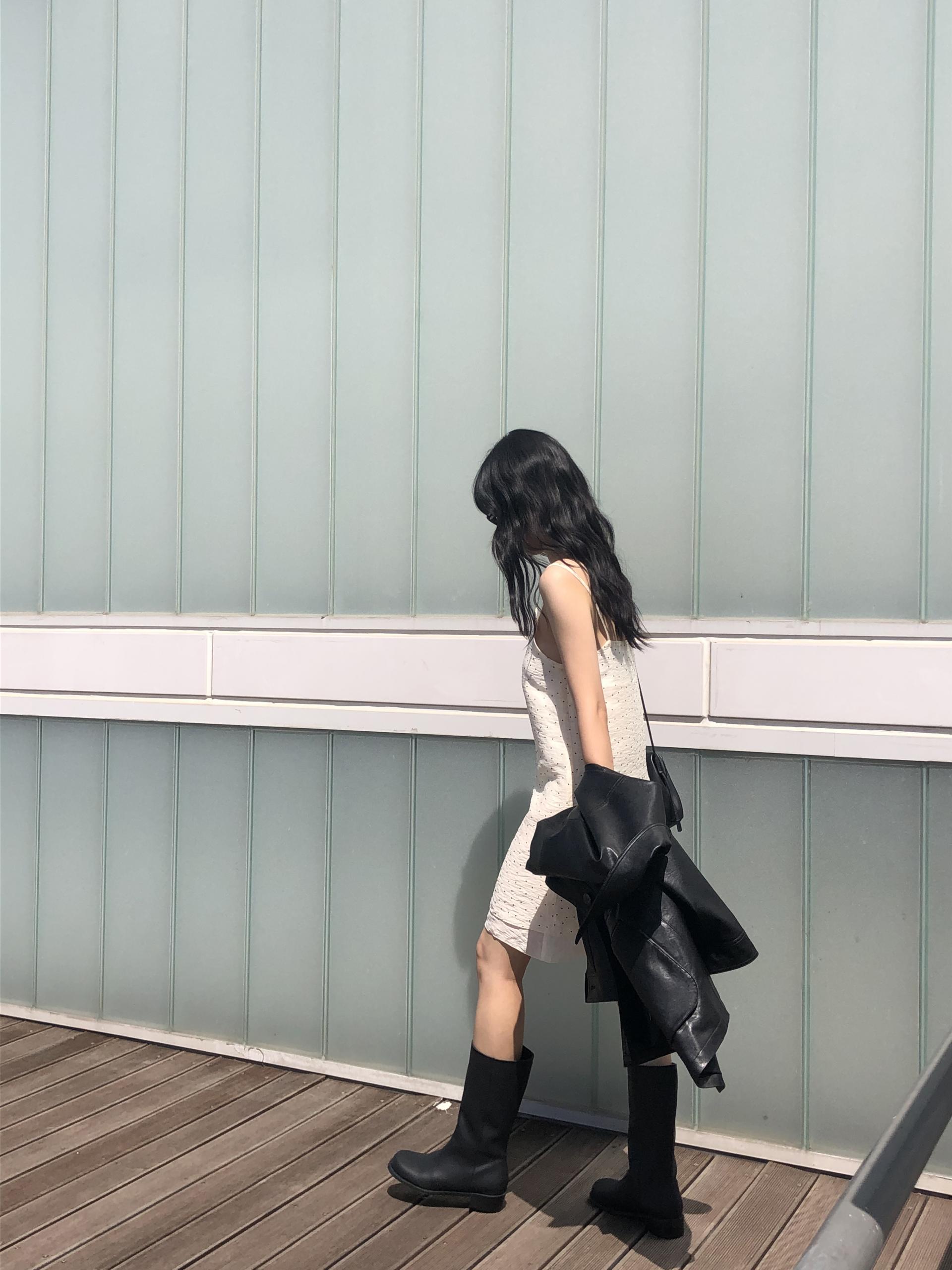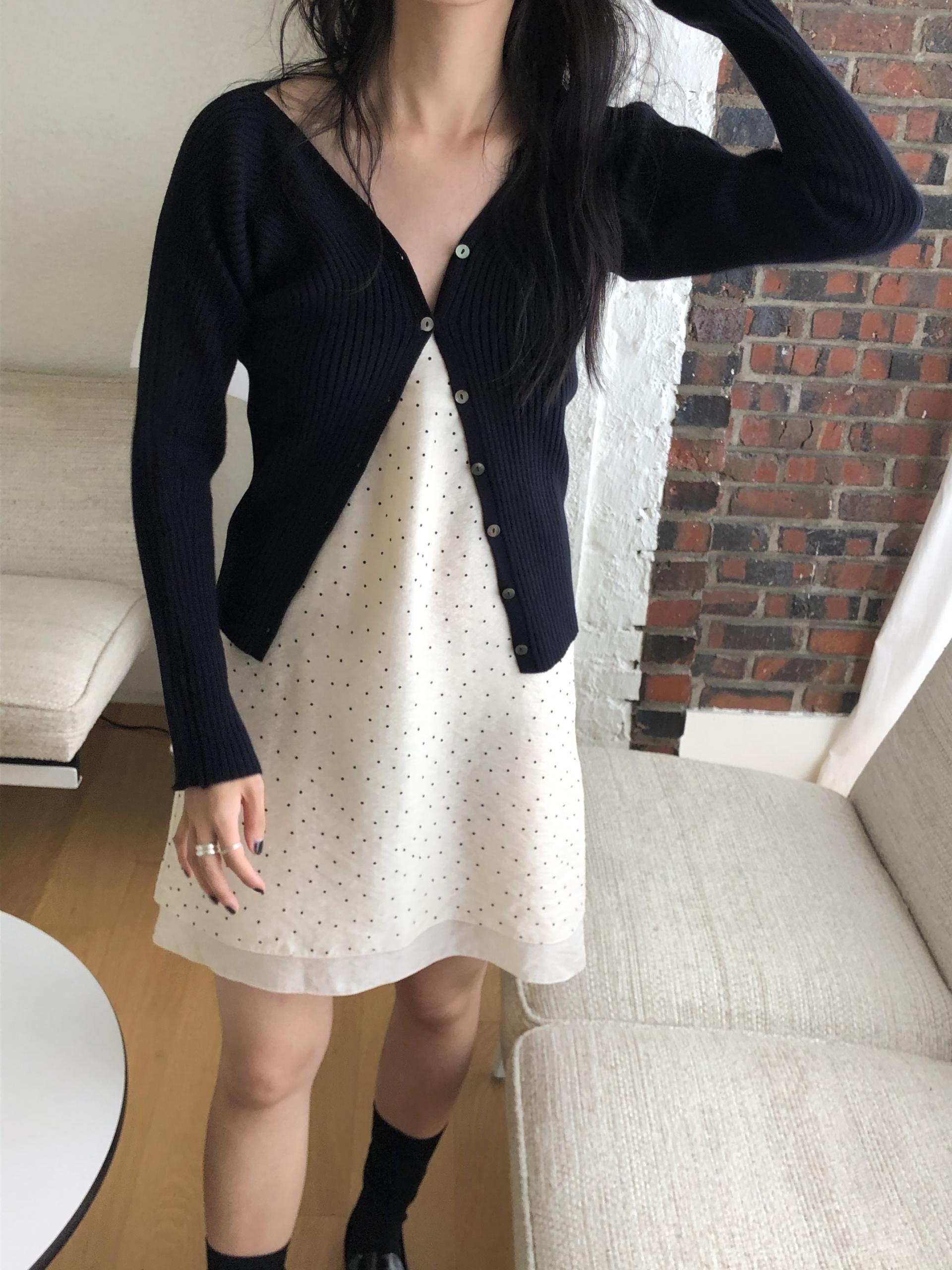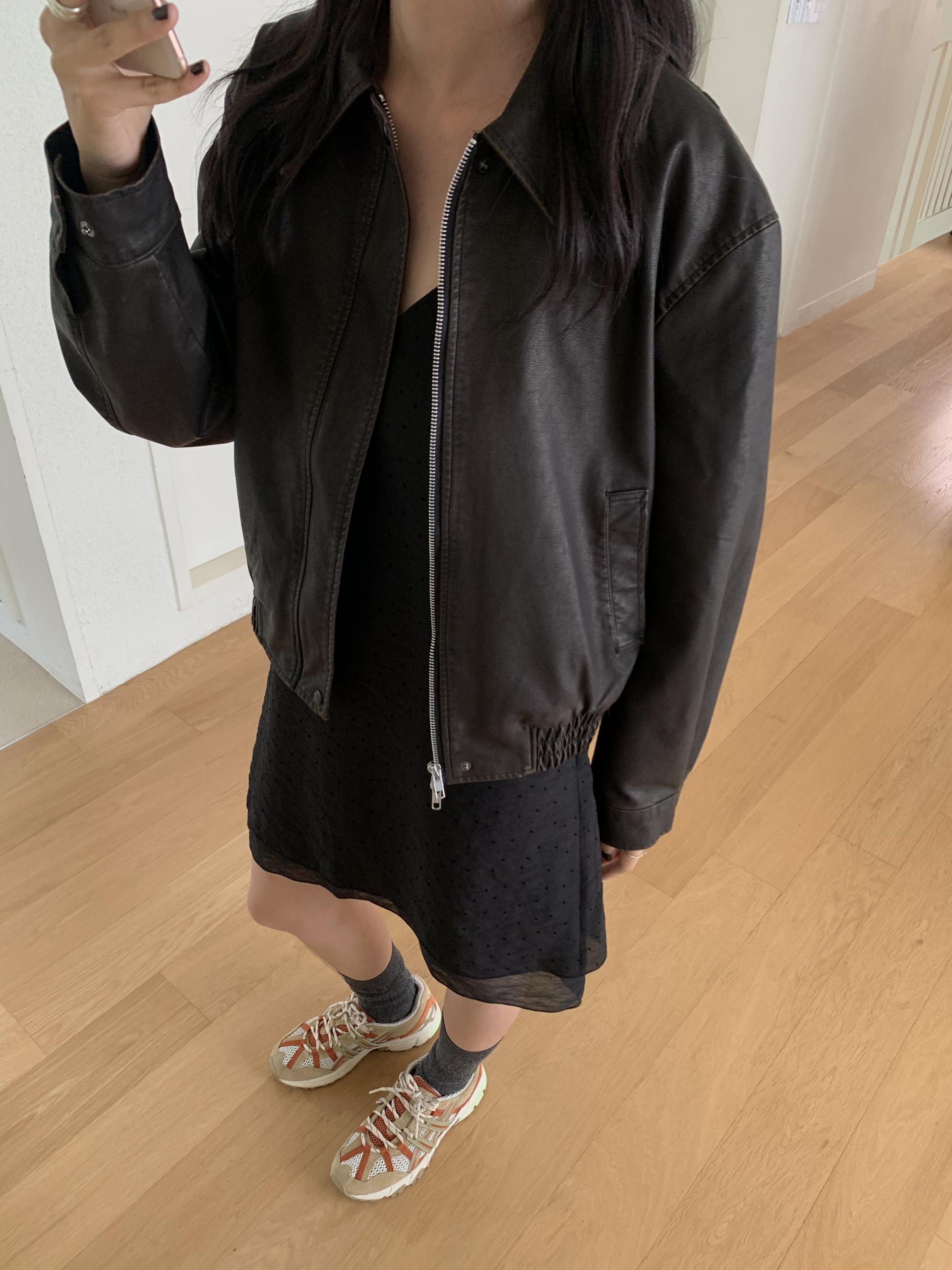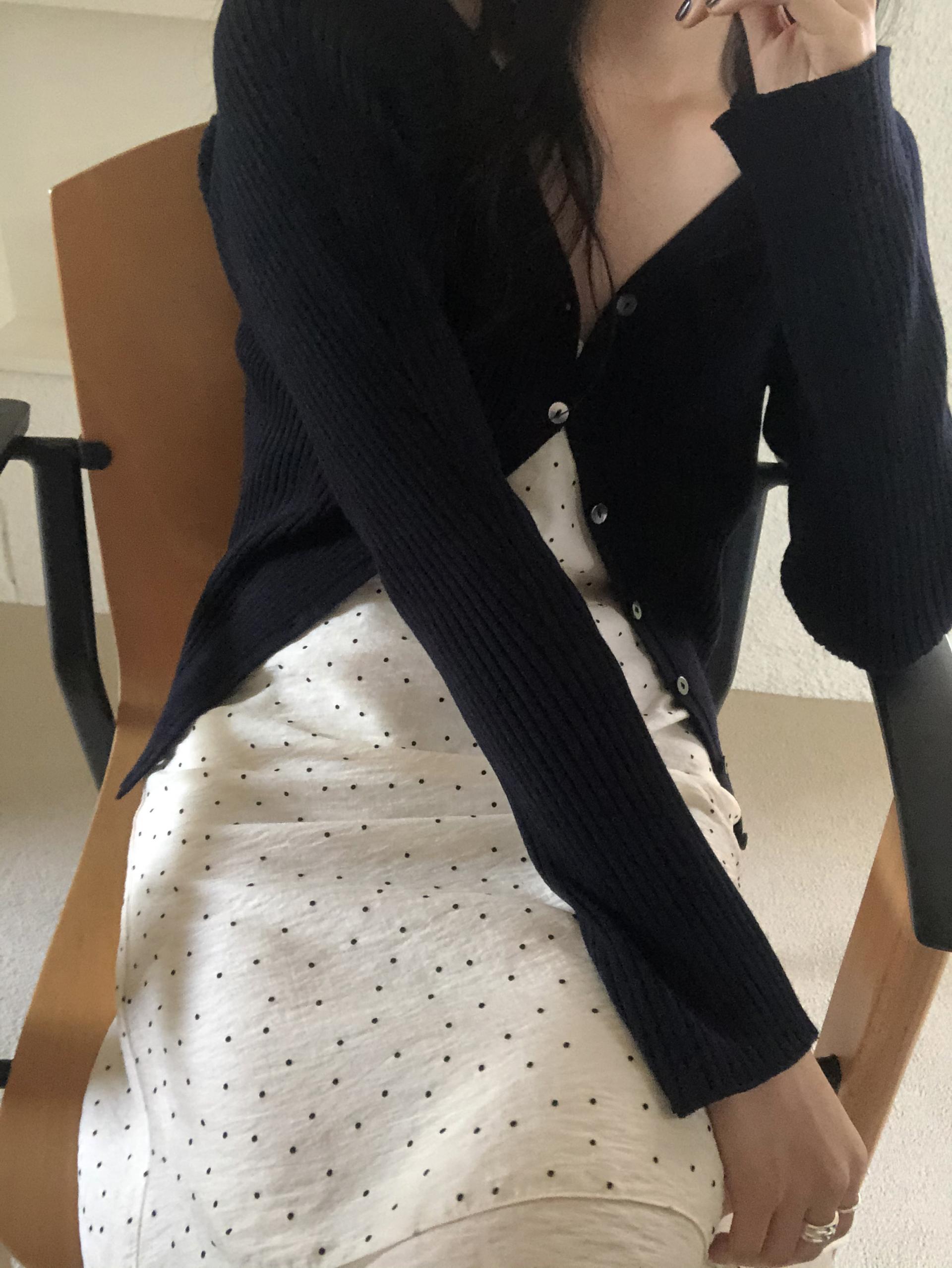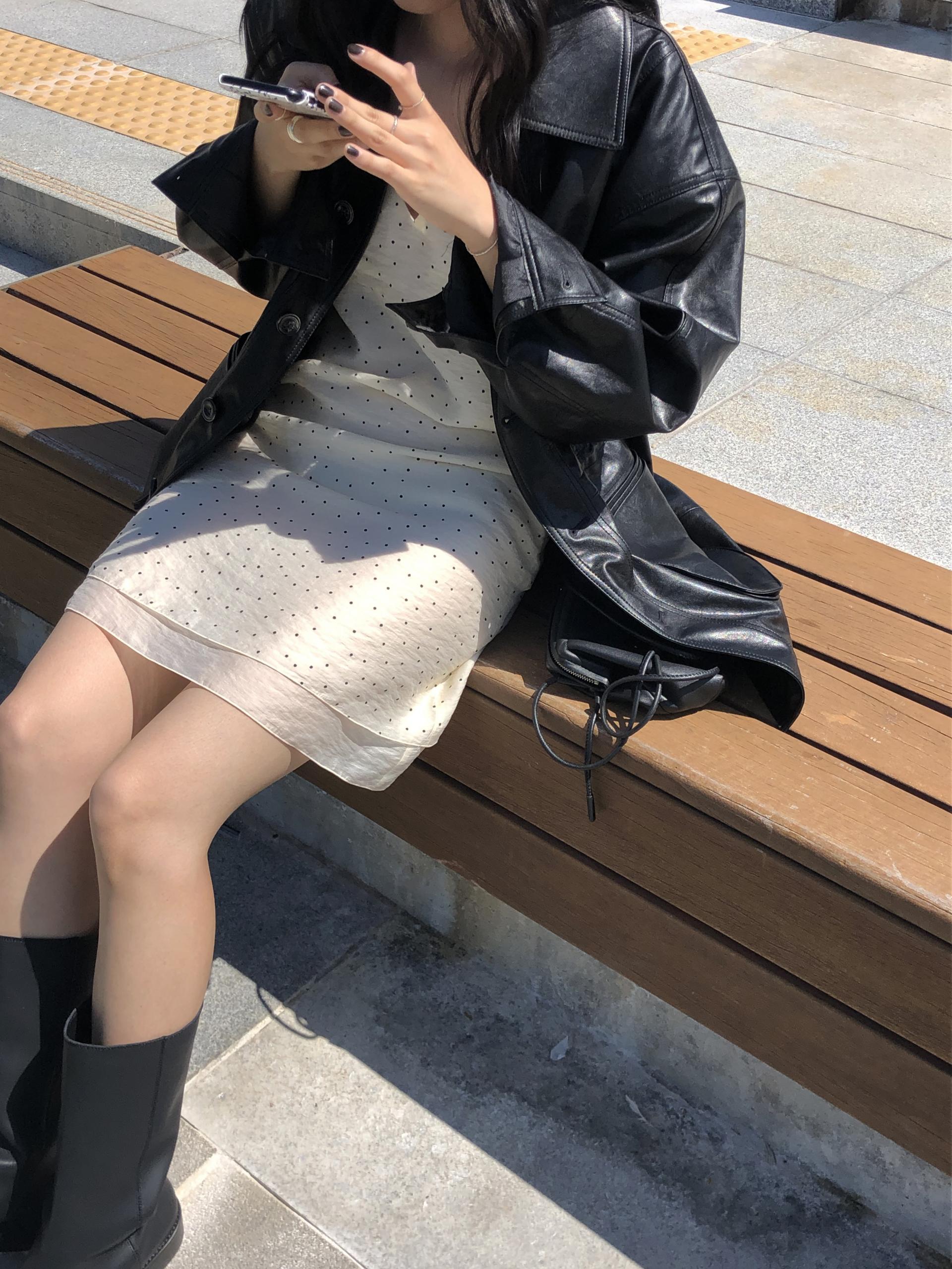 도트 패턴이 더욱 잘 보이는 크림 컬러는 단품 착용 혹은 데님과 함께 했을 때 빛을 발하는 아이템이었어요. 또한 레더 자켓과 함께 하면 빈티지한 매력을 느낄 수 있답니다 !