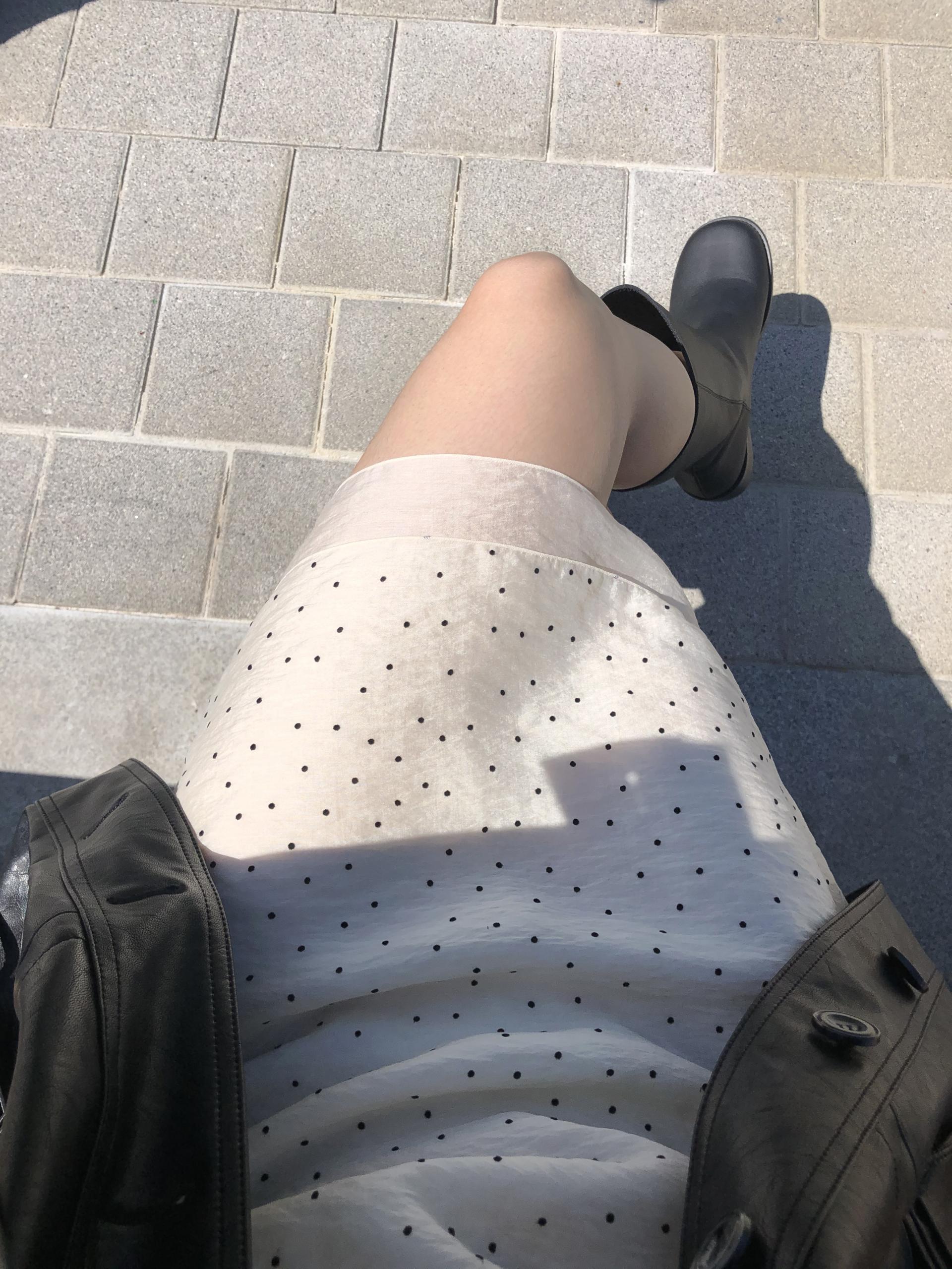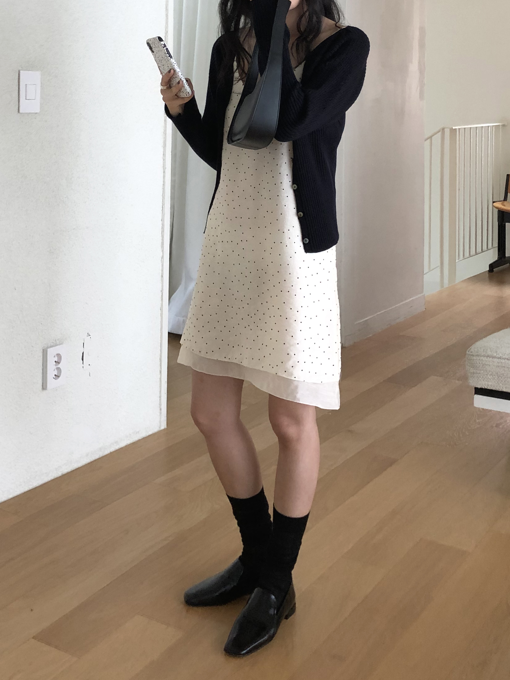 귀여우면서 심심하지 않은 룩을 연출해주는 도트 패턴이 돋보이는 아이템이에요.