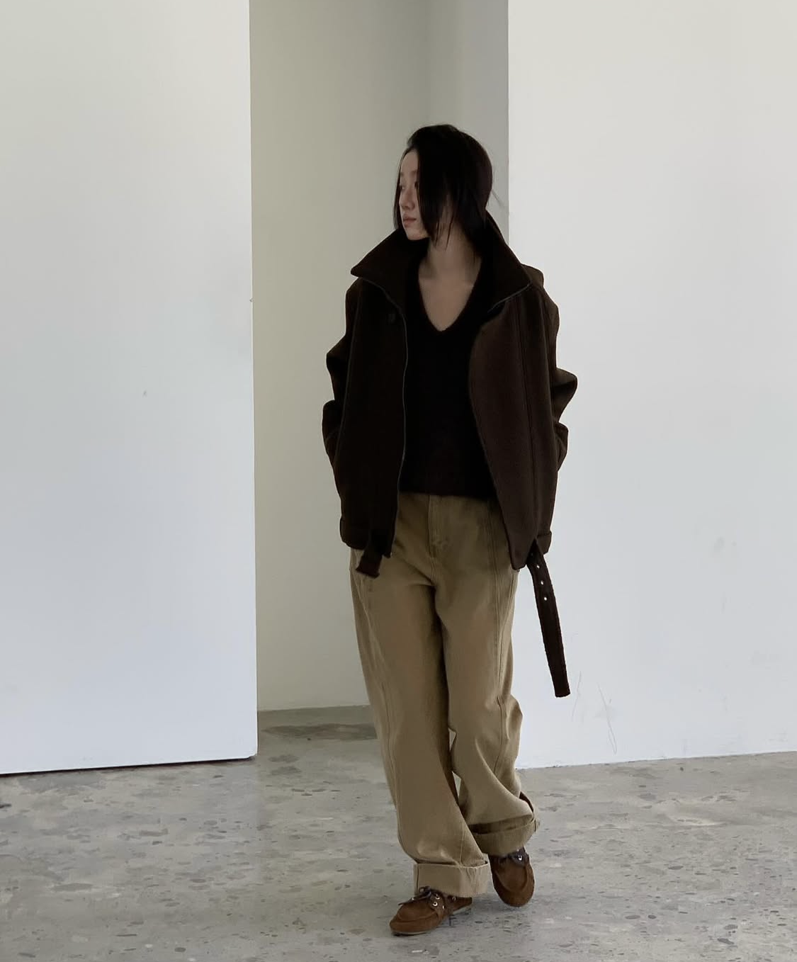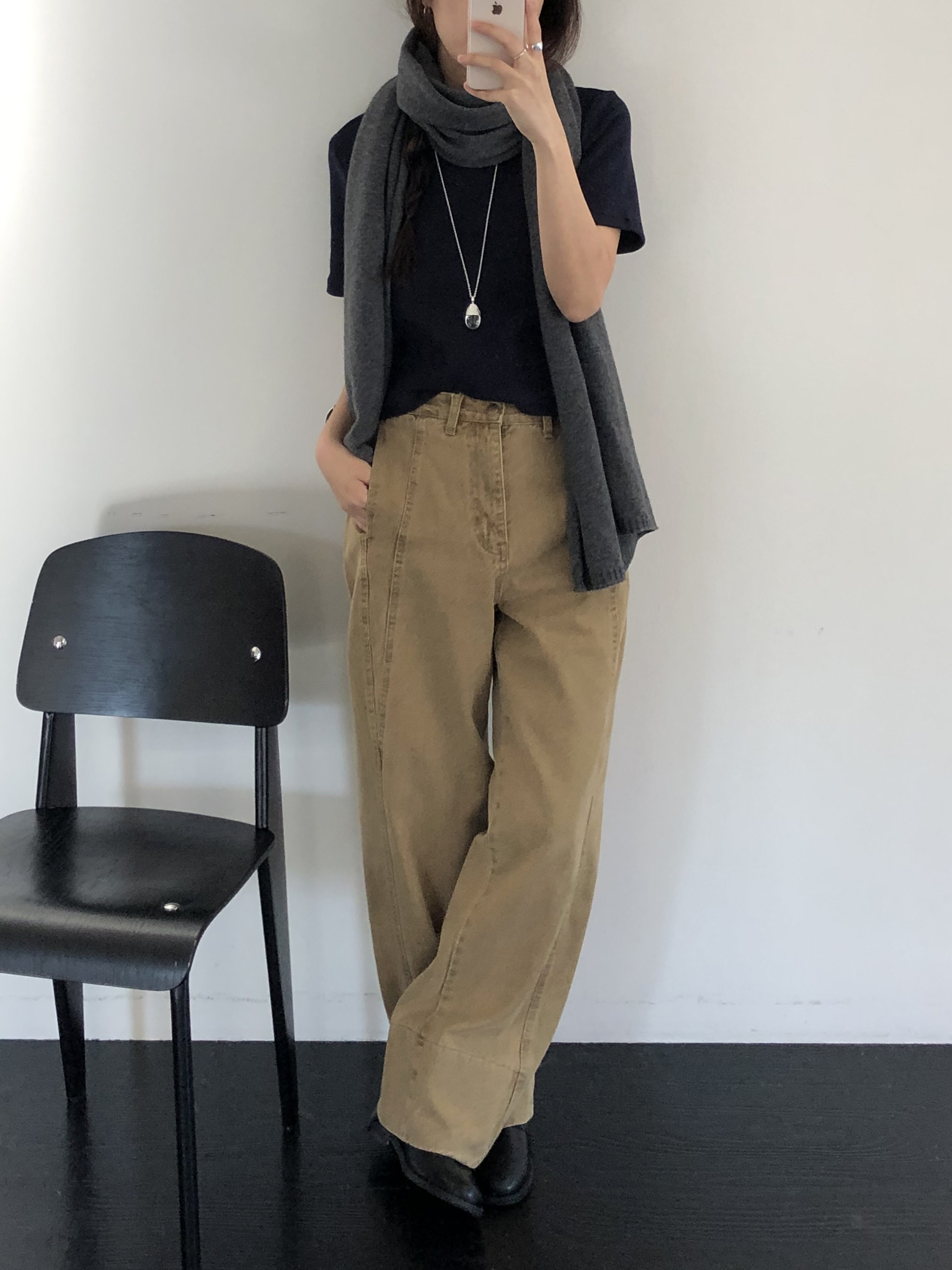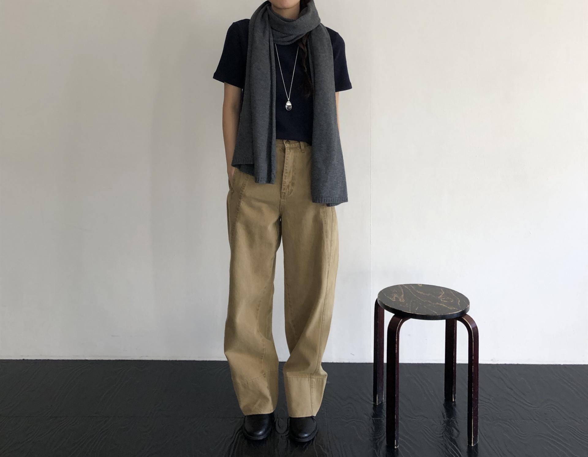 베이지톤이 조합하기 좋은 거 아시죠-? 컬러를 폭넓게 받아주는데다가 겨울 특유의 분위기까지 나는 색이라 아마 겨울 내내 손이 가는 데님이 될 거예요. 추천드립니다. !