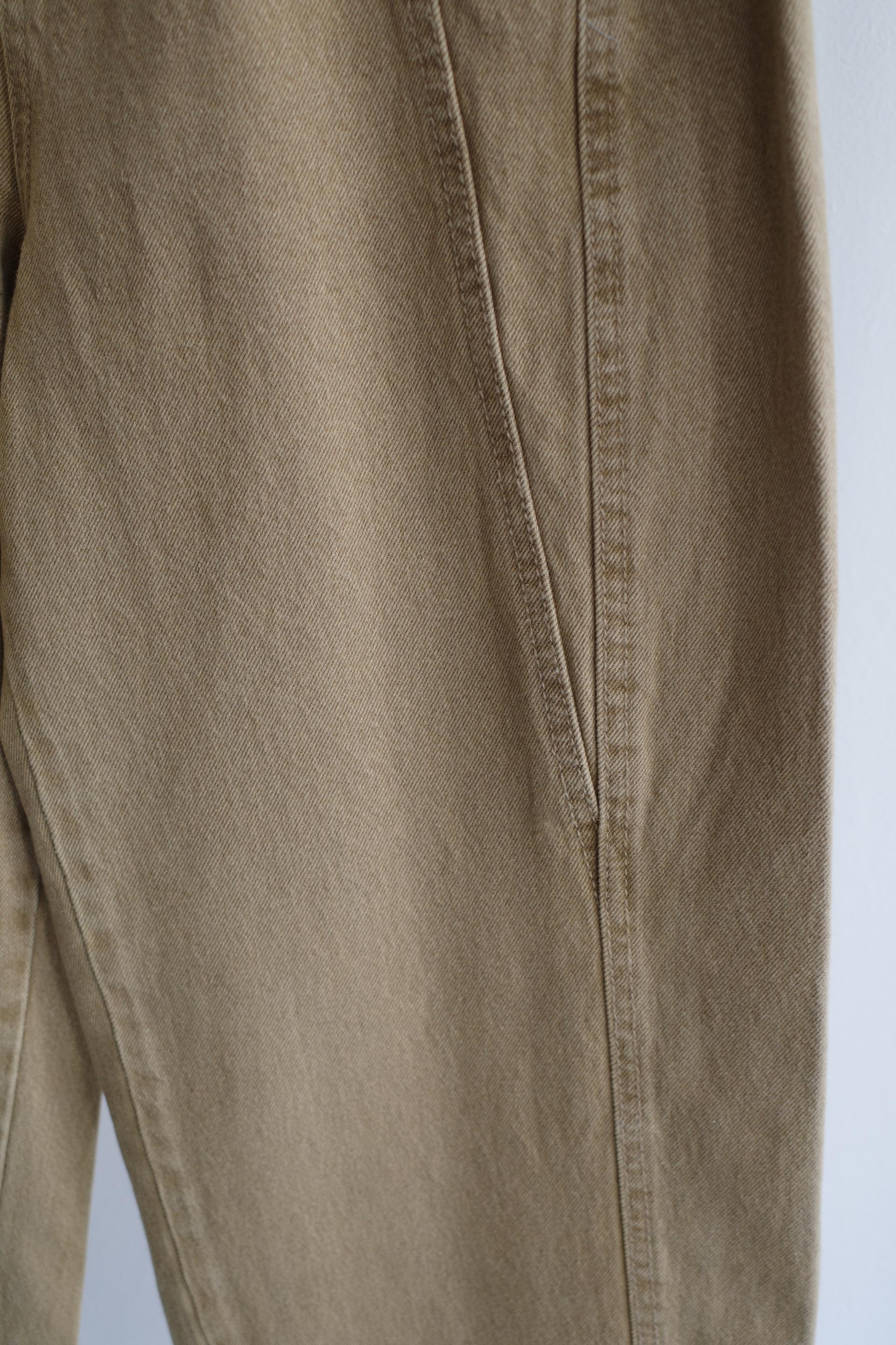 노란빛이 감도는 짙은 모래 색감의 샌드 베이지 컬러의 데님입니다.