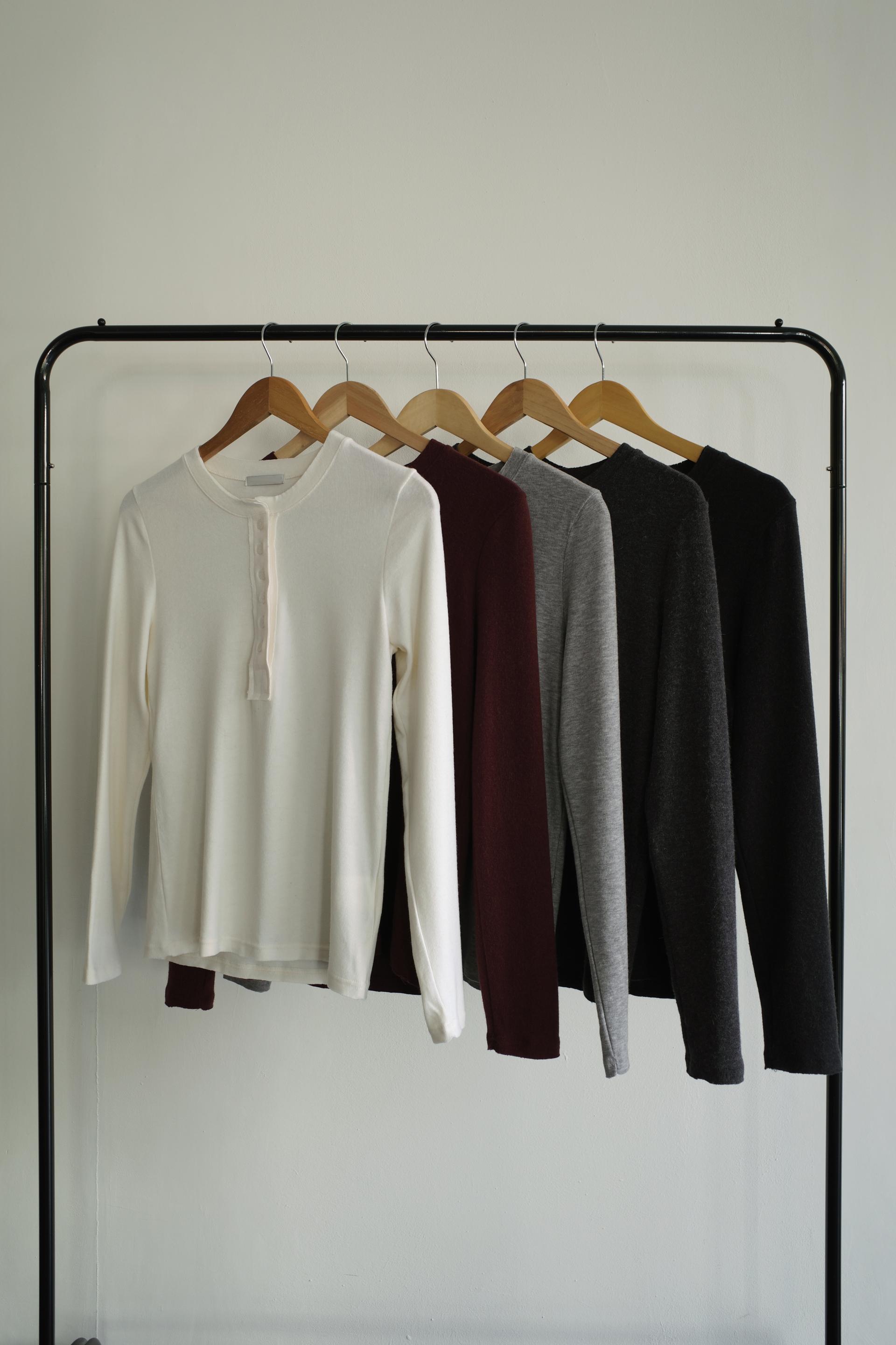 두개 겹쳐입기에는 조금 답답한 감이 있구요- 단독으로 착용하거나 아우터나 니트웨어의 이너로 매치해주세요. 베이직한 컬러 구성이라 아마 입어보시면 다른 컬러도 찾게되실 거예요 ! 적극 추천드립니다 !!