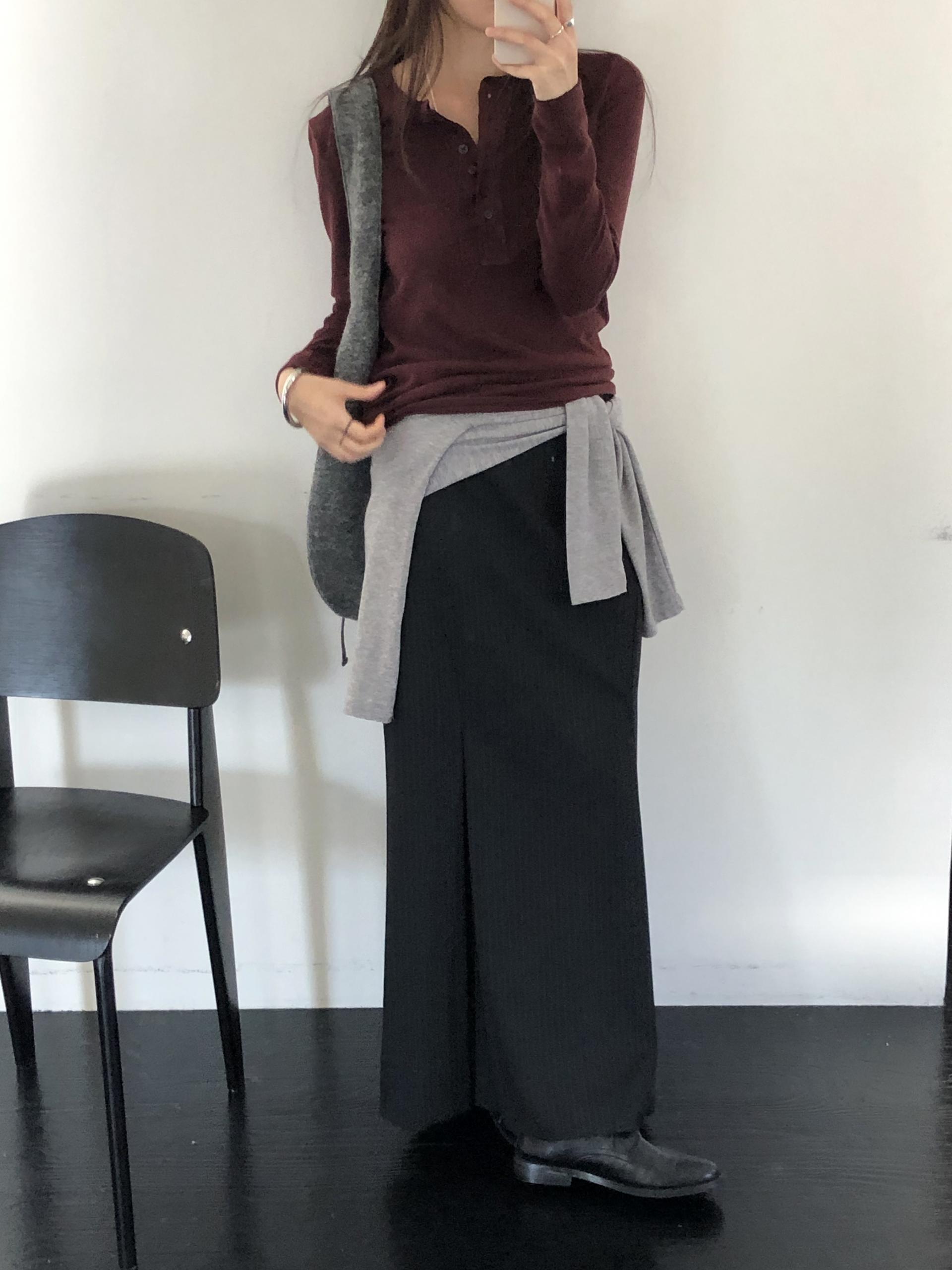 슬림하면서 살짝 여유가 있는 핏, 그 애매하고 간결한 실루엣이 참 마음에 듭니다. 단독으로 입어도, 이너로 레이어드해도 실루엣을 해치지 않는 기특한 아이템이에요.