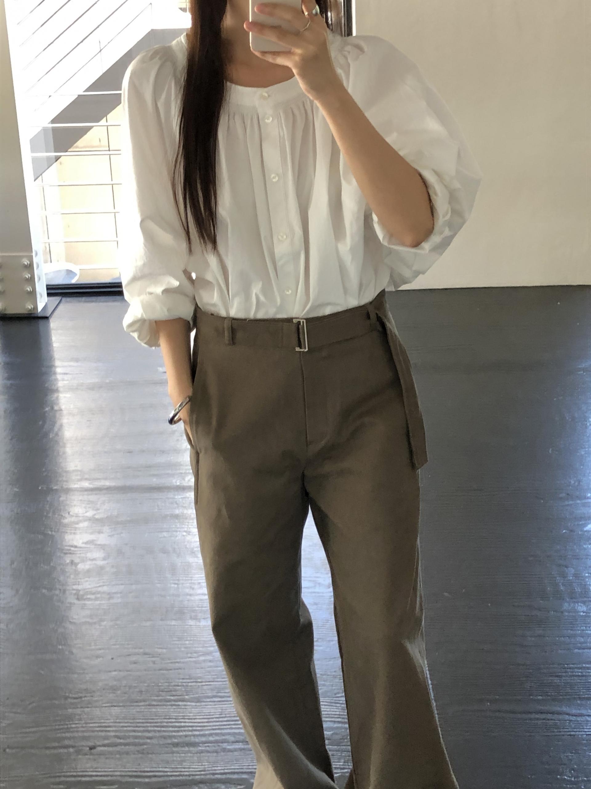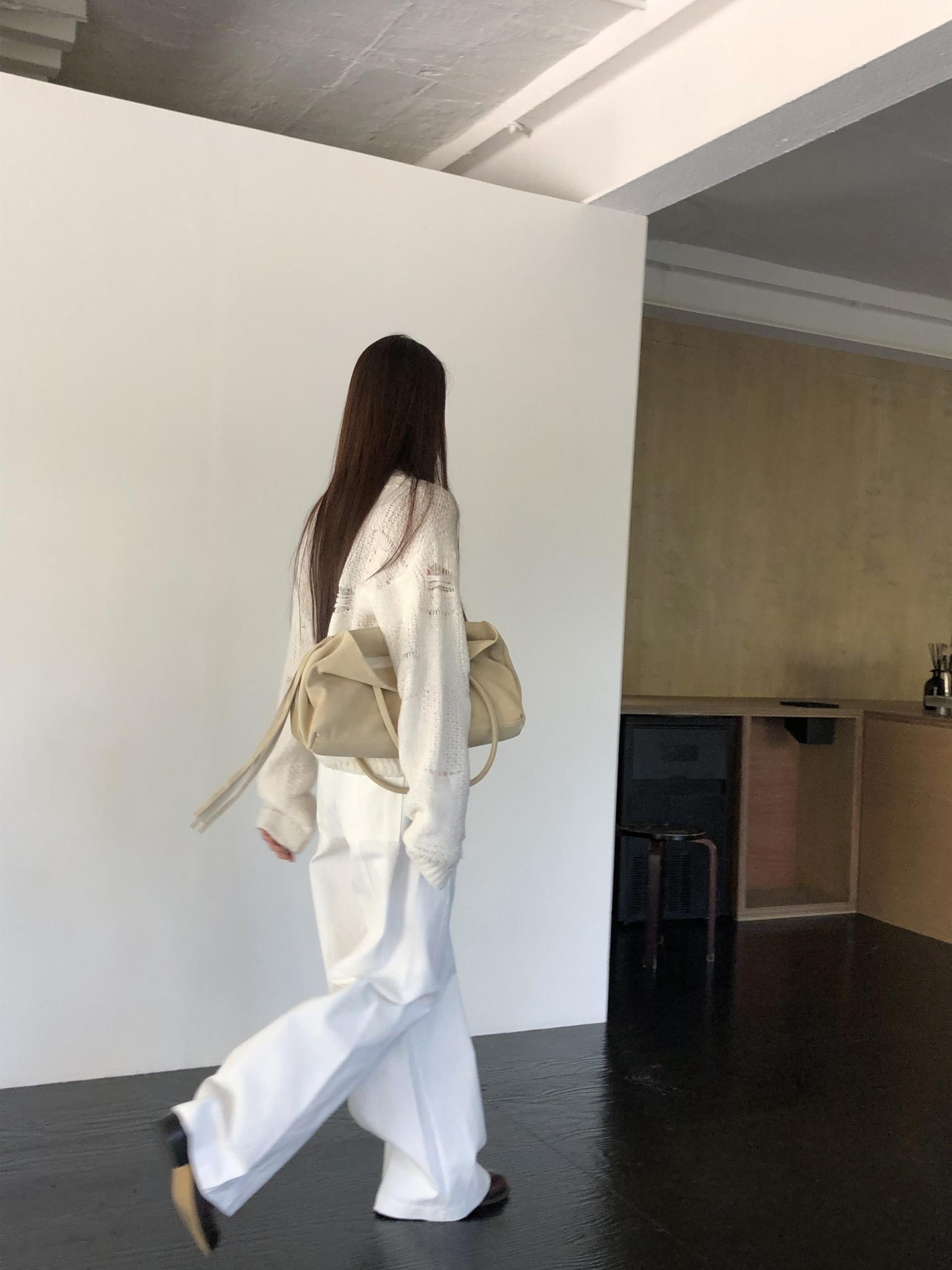 허리에는 제원단으로 제작된 탈부착이 가능한 벨트가 더해졌어요. fw버전은 벨트 길이를 이전보다 줄여 조금 더 깔끔한 이미지입니다.