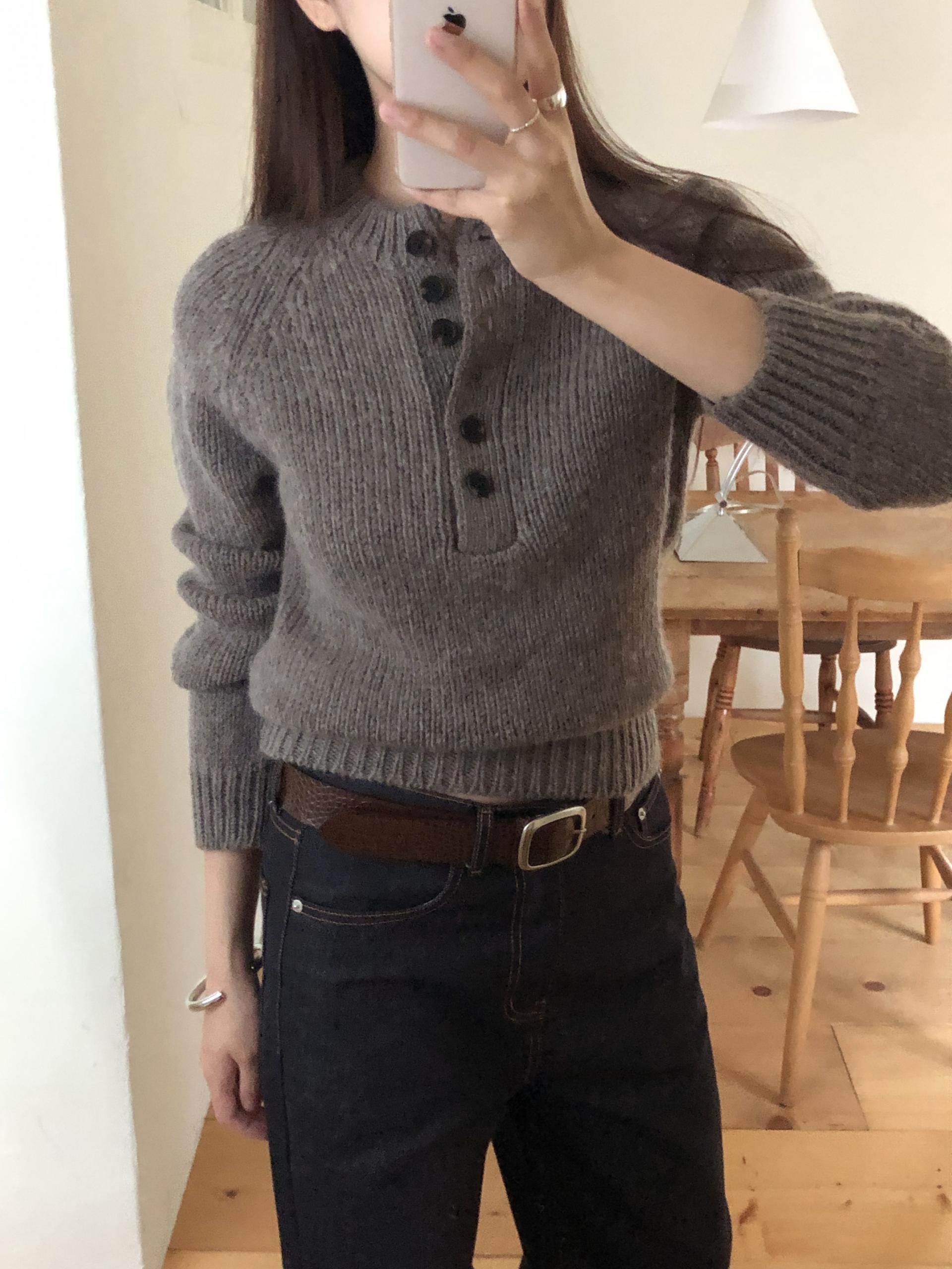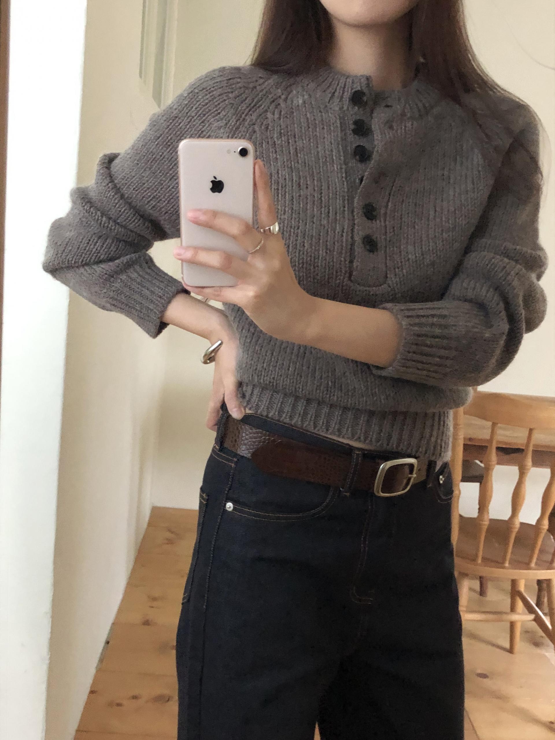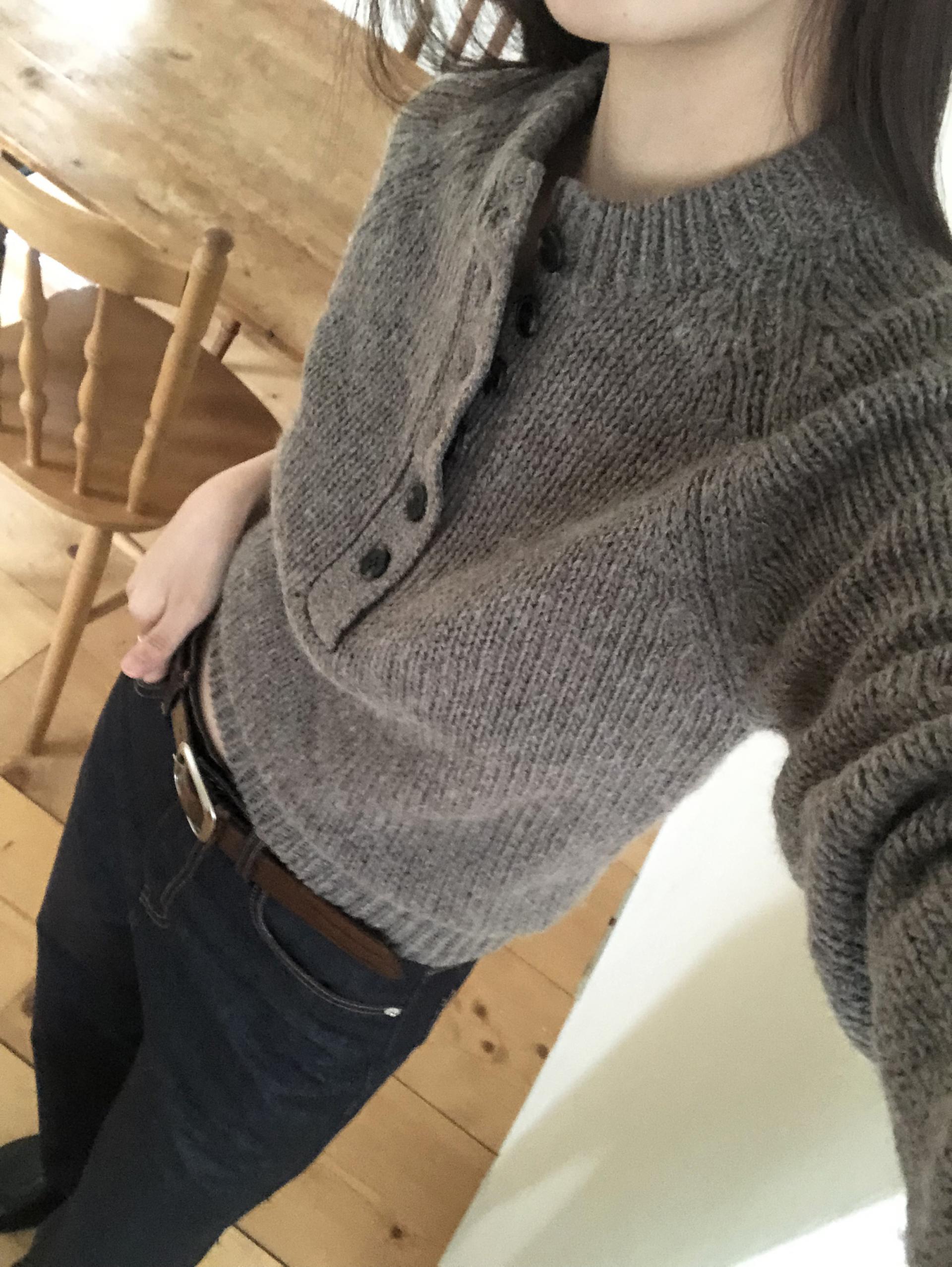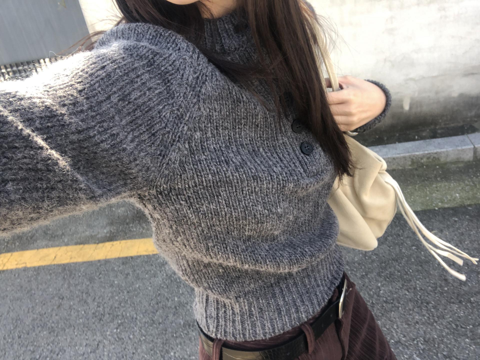 깊은 버튼 디테일이 매력적인 코코 버튼 니트입니다. 보는 것만큼 예뻤던 제품이에요.