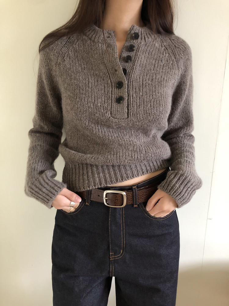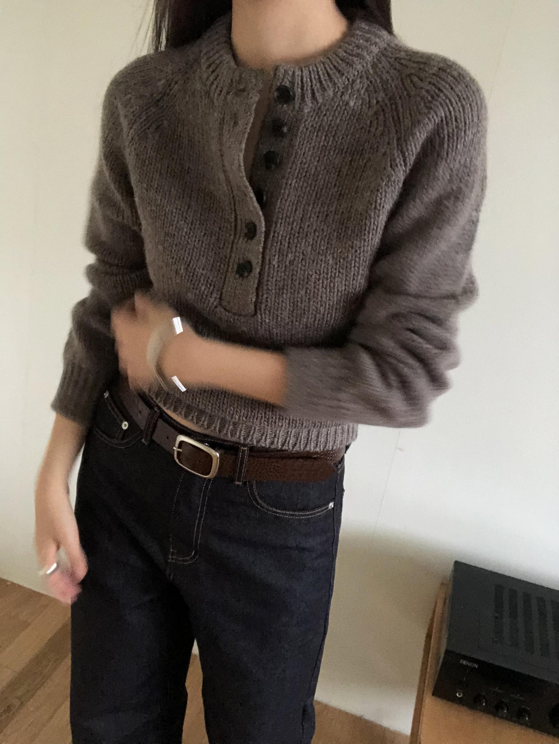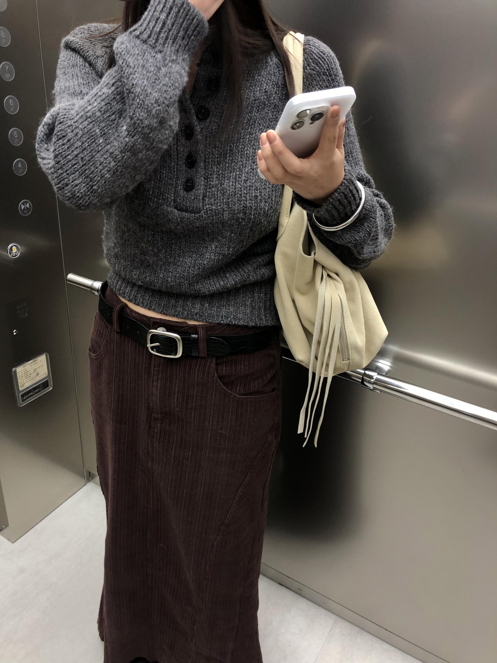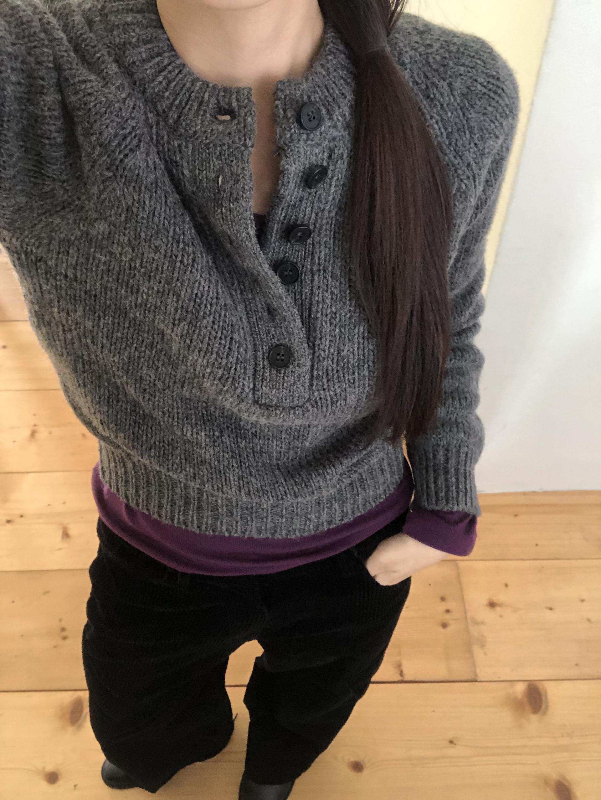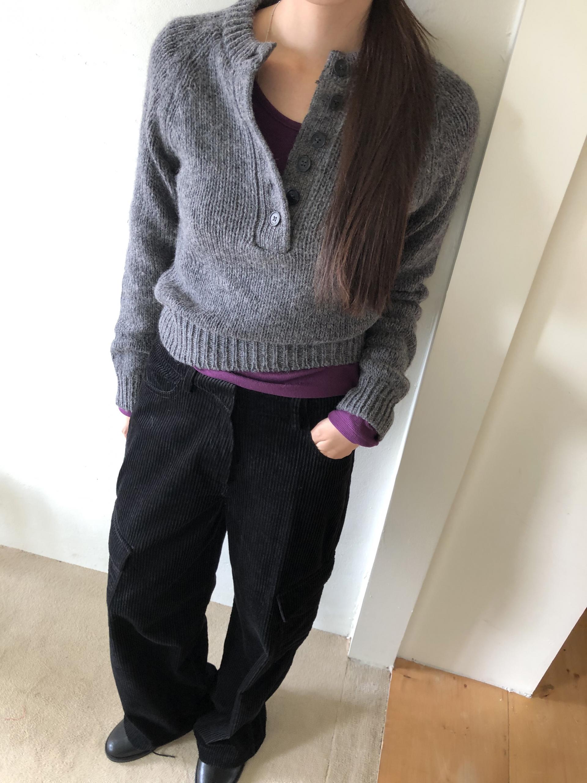 깊은 버튼 디테일이 매력적인 코코 버튼 니트입니다. 보는 것만큼 예뻤던 제품이에요.