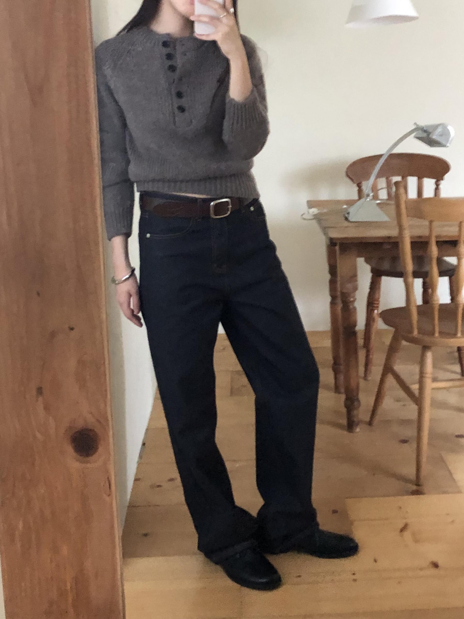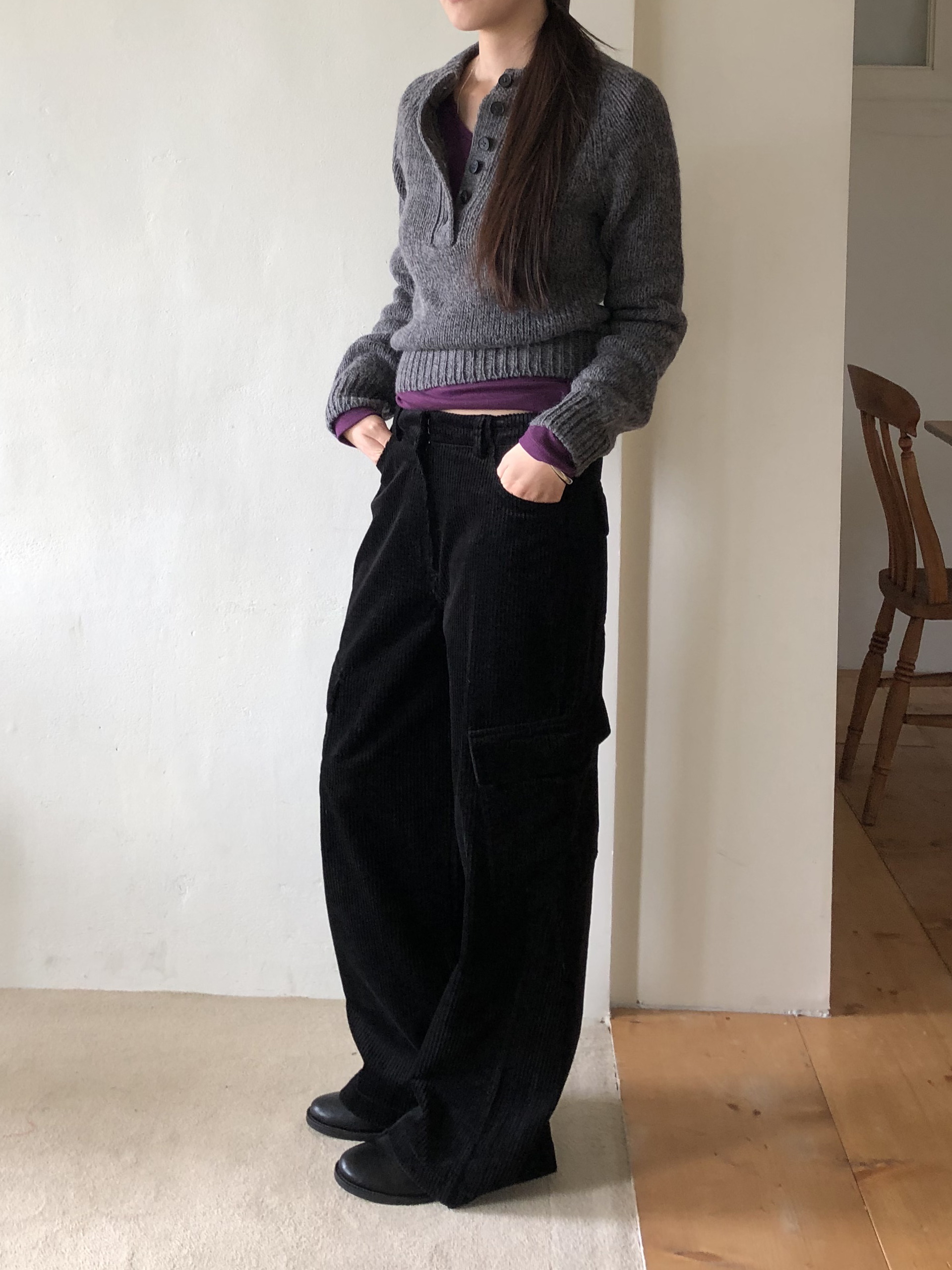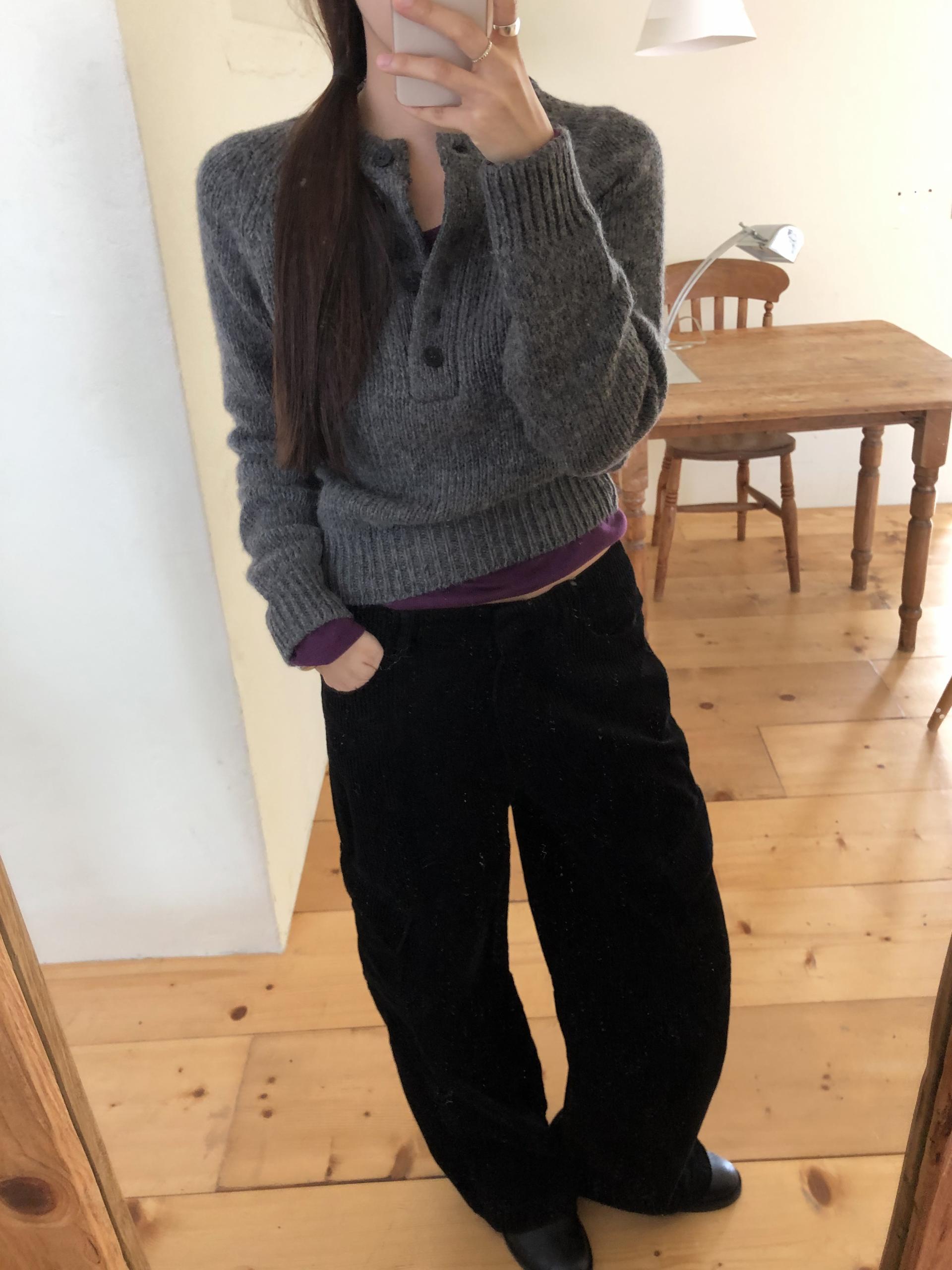 울 혼방의 원사로 도톰하게 제작되었습니다. 지금부터 겨울까지 쭉- 입기 좋아요.