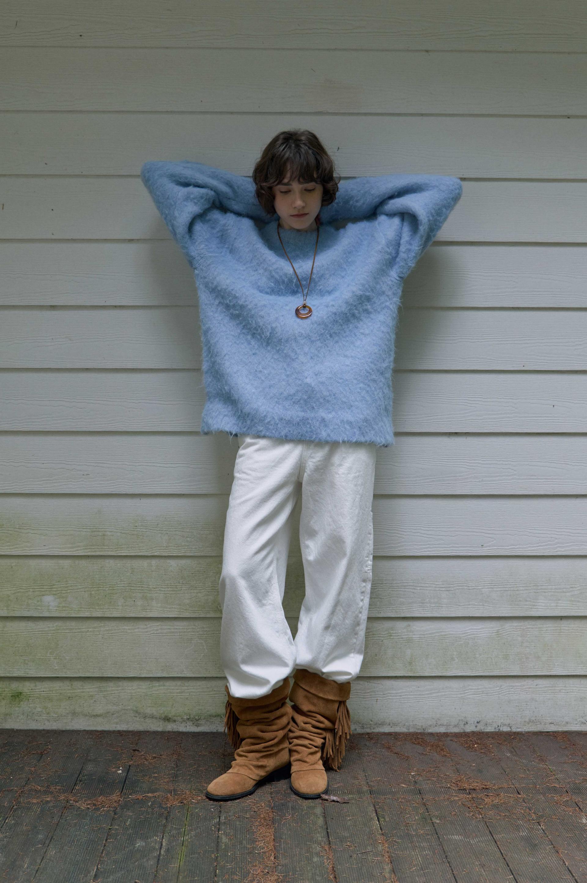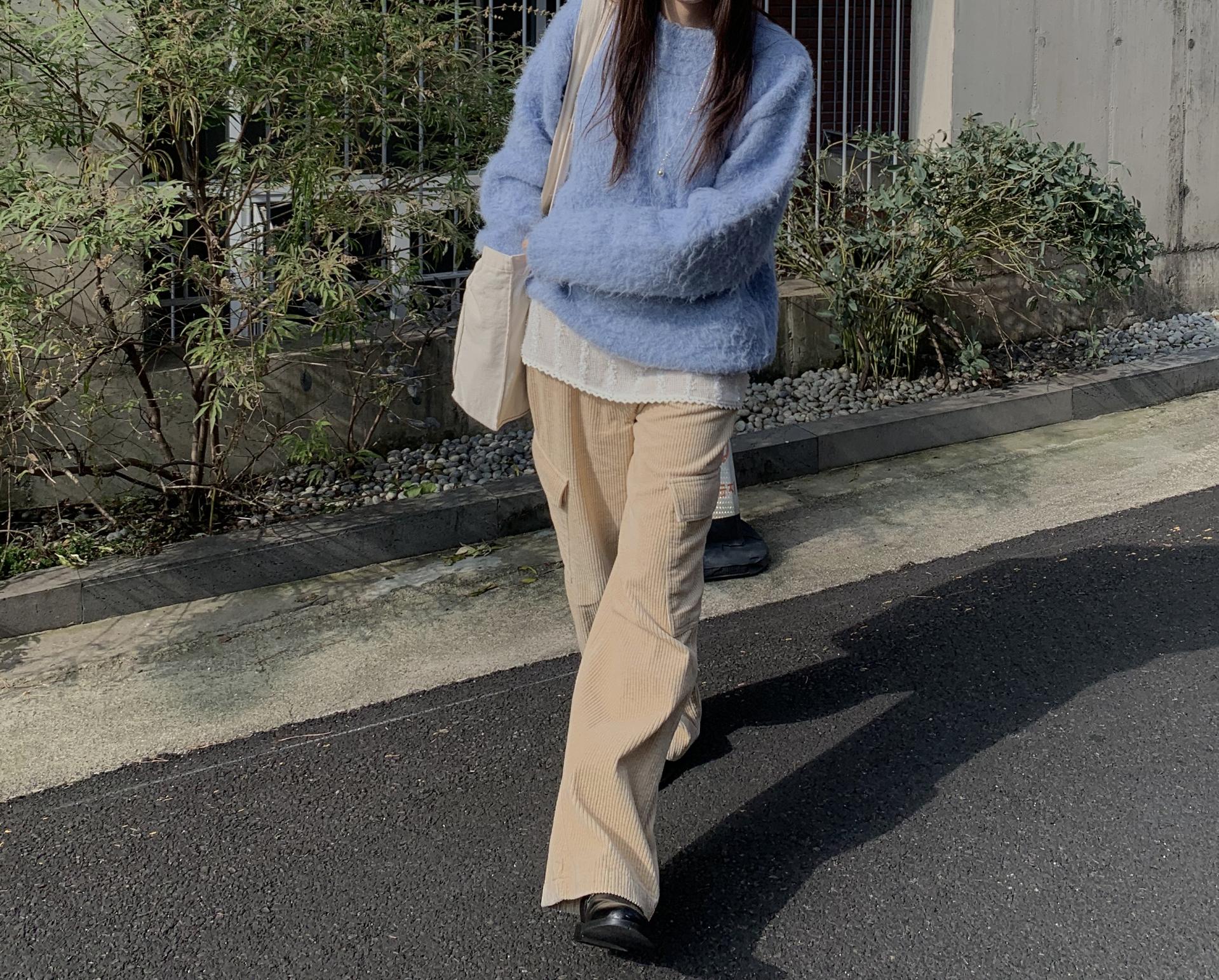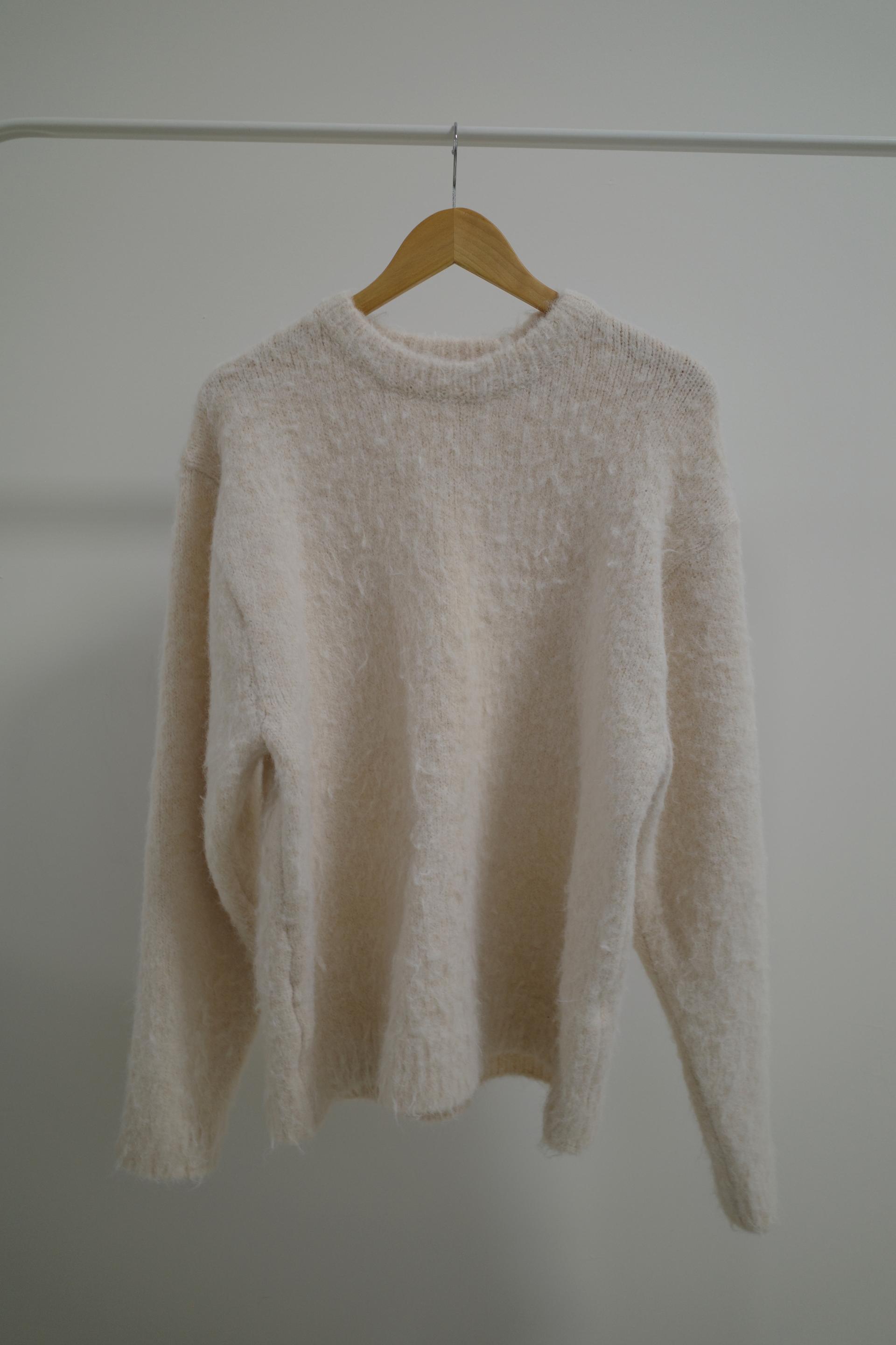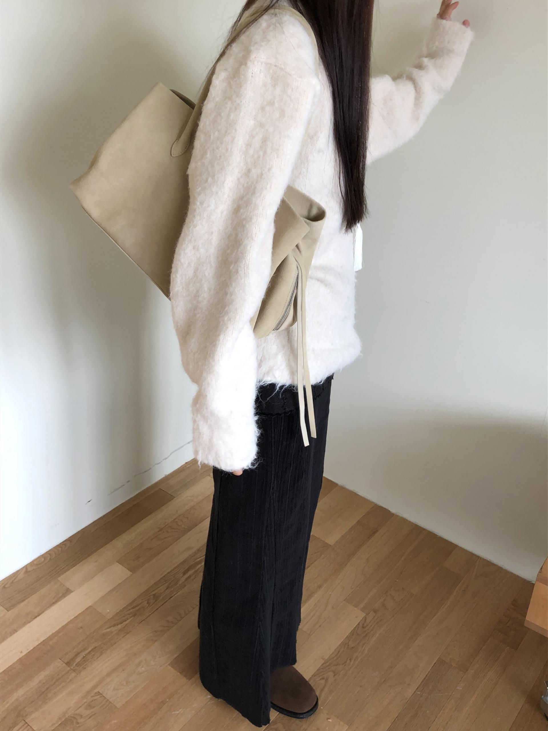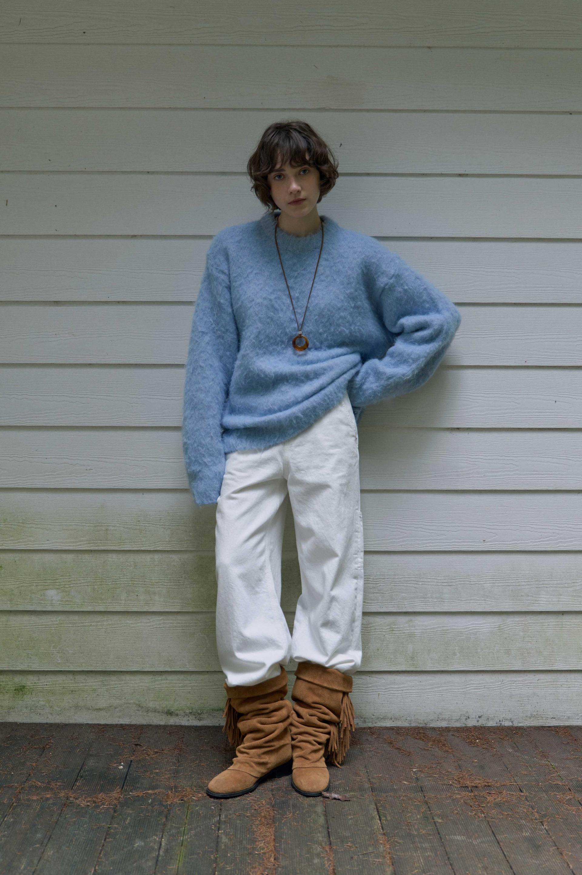 한겨울 설원에서 입으면 특히나 예쁠 것 같은,, 왠지 그런 로망이 생기는 뮤즈 브러쉬 스웨터입니다. 텍스쳐도 색감도 새하얀 눈과 잘 어울리는 듯 해요.