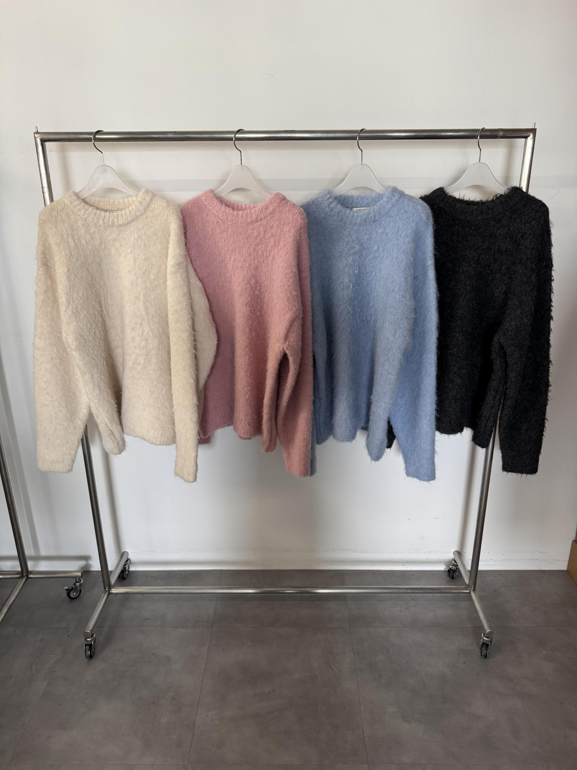 오버핏과 드롭숄더, 긴 소매기장으로 넉넉하게 떨어지며 체형에 구애없이 입기 좋을 거예요. 벌키한 맛으로 입는 뮤즈 스웨터입니다 <3