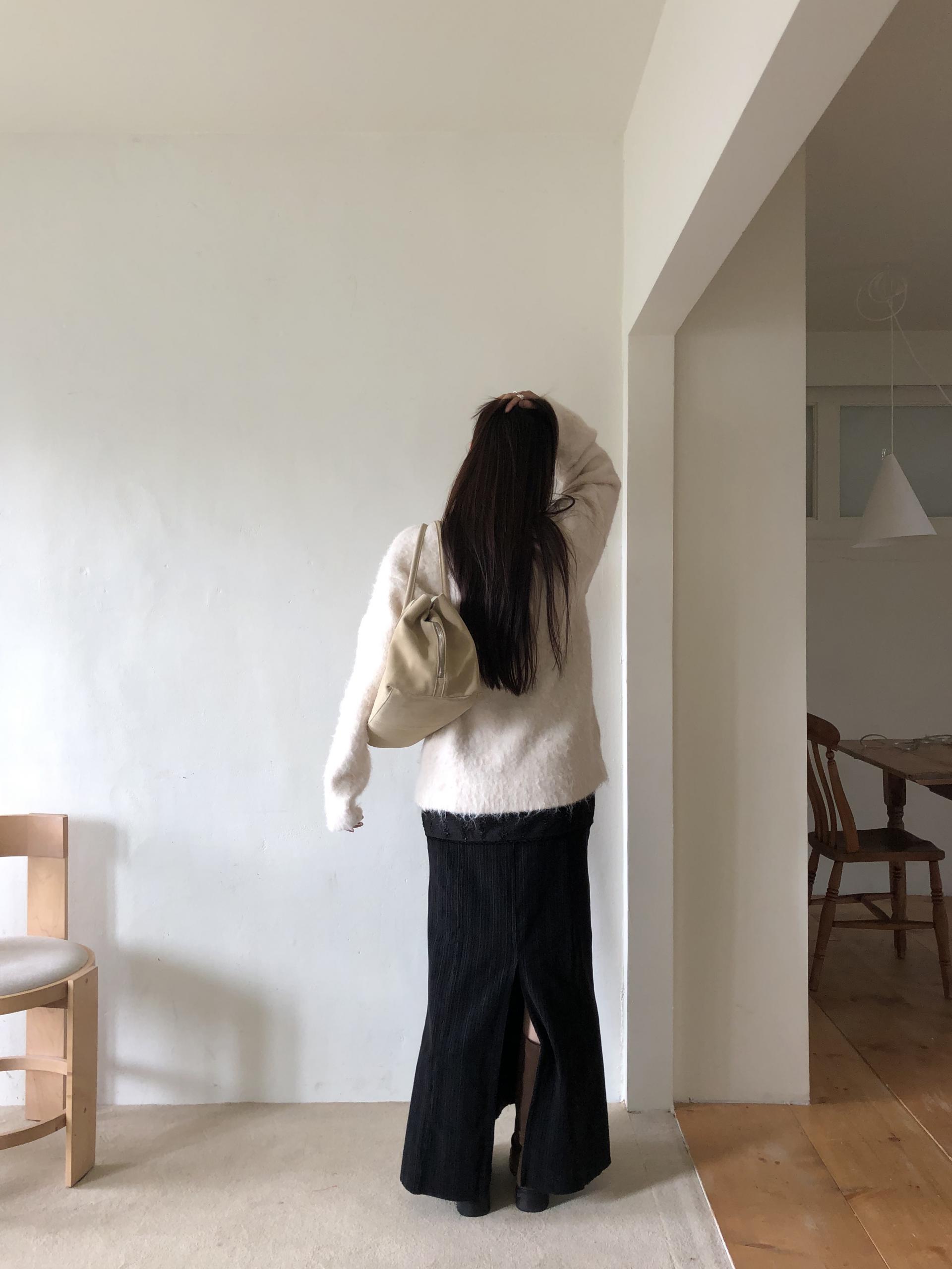 포슬포슬 헤어리한 소재가 돋보입니다. 브러쉬 기법을 사용한 긴 헤어감으로 포근하고 유니크한 멋이 느껴져요. 울 혼방의 밀도 높은 두꺼운 원단으로 한겨울에도 끄떡없이 착용가능한 제품입니다.