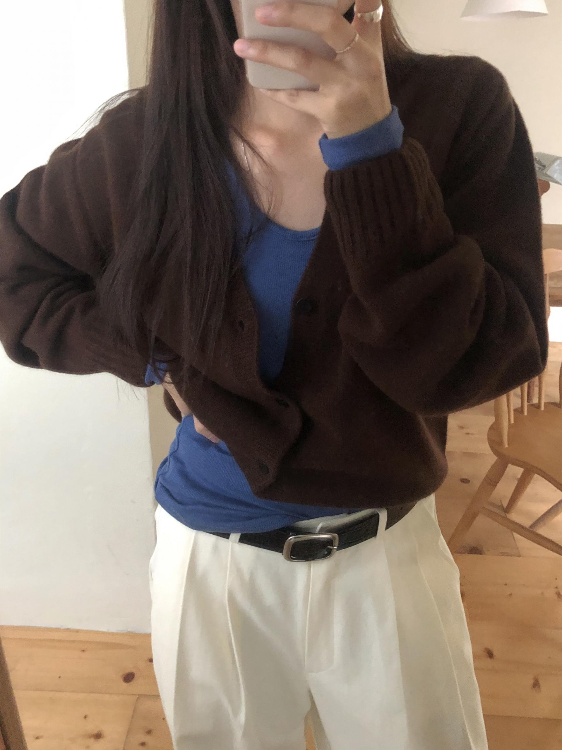 텐셀과 울 혼방으로 부드러운 착용감을 자랑하며, 신축성이 좋은 골지 짜임의 원단으로 편하게 착용됩니다.
