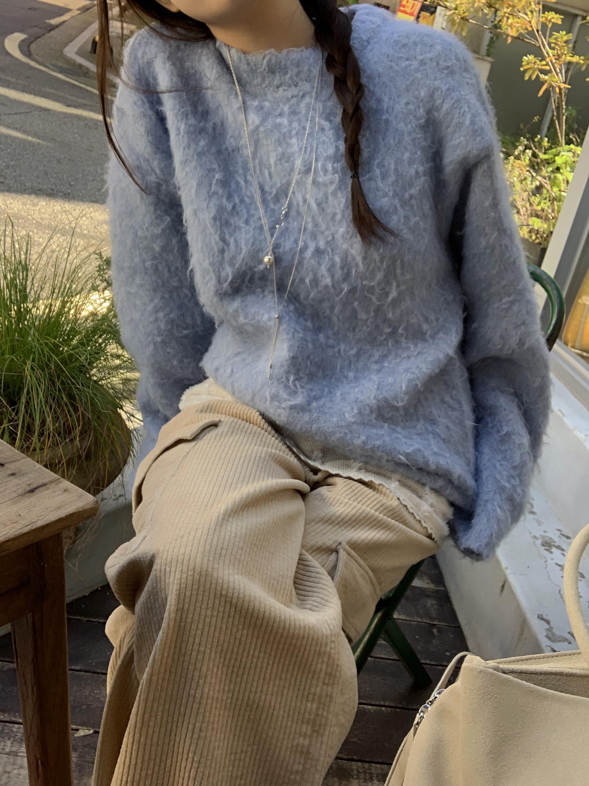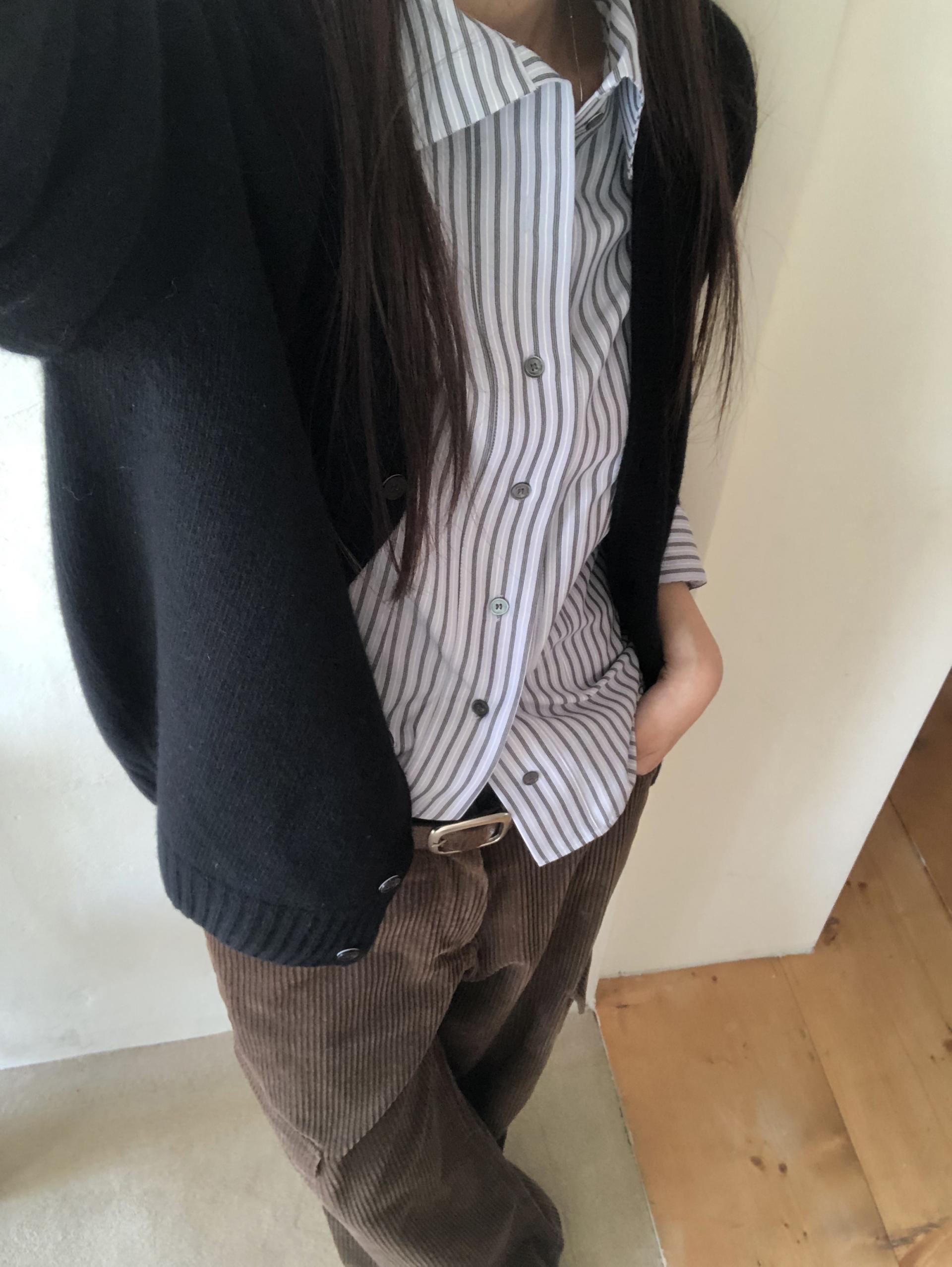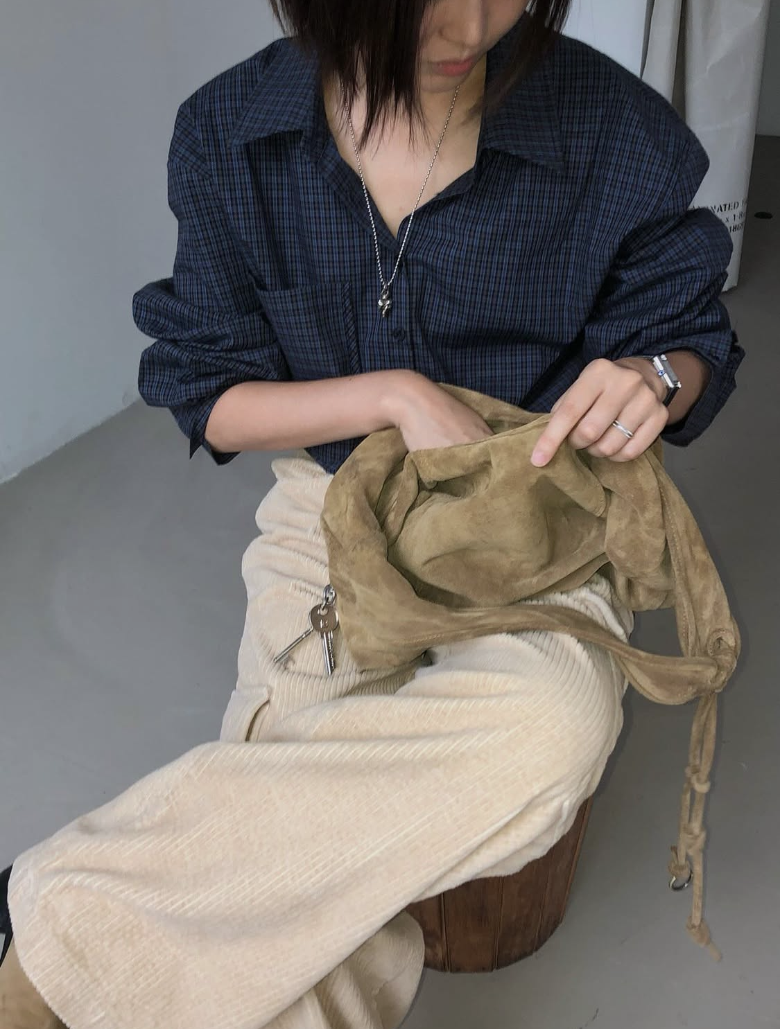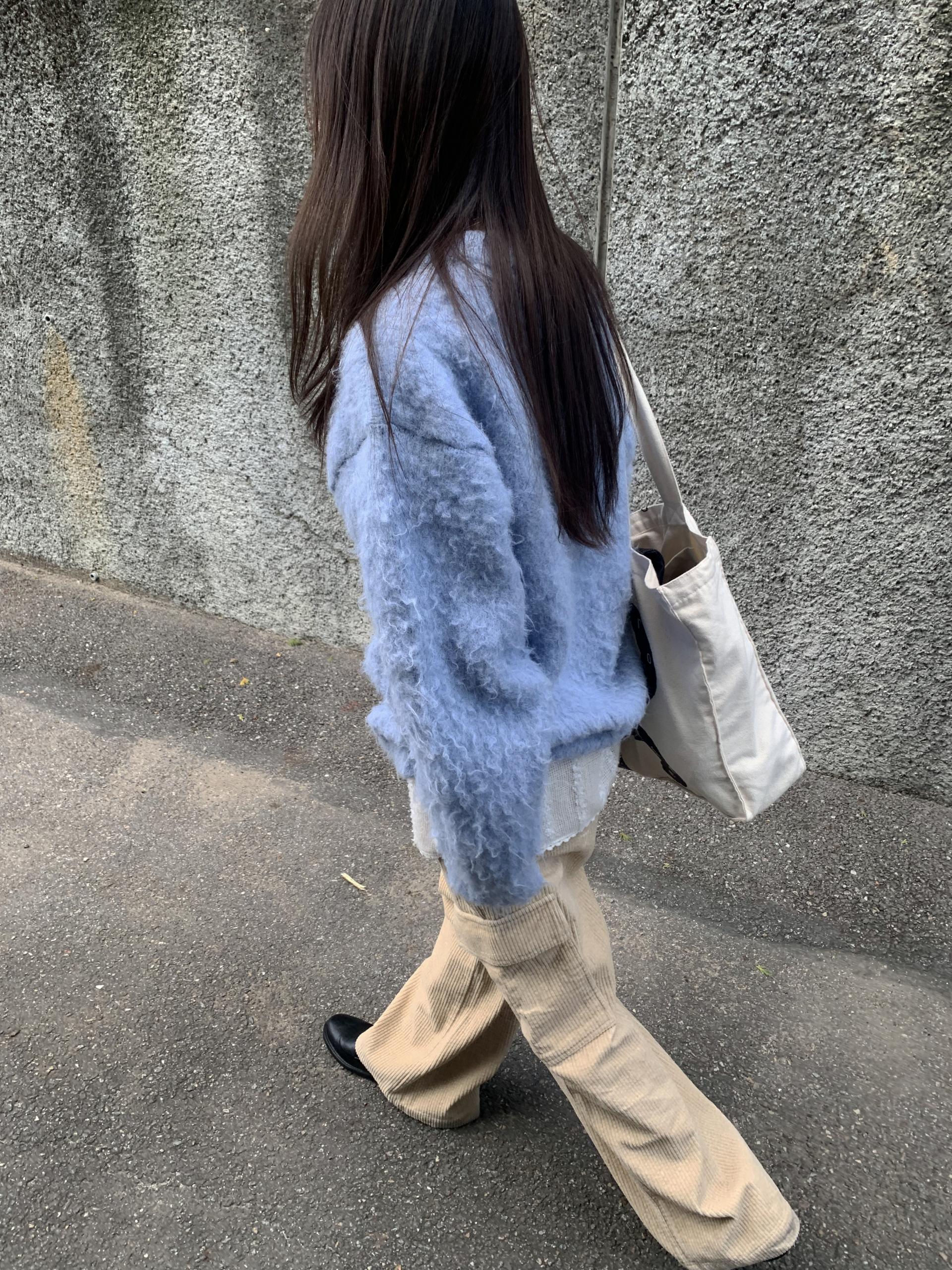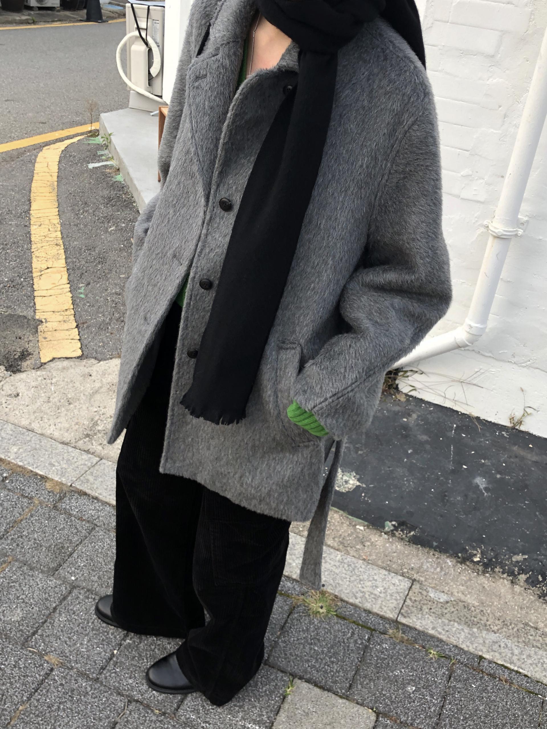 전체적으로 툭 떨어지는 실루엣에 루즈한 핏으로 여유롭게 입기 좋습니다. 도톰한 코듀로이의 골 짜임이 느껴져요. 두께감도 도톰한 편이라 한겨울까지 문제 없을 거예요.