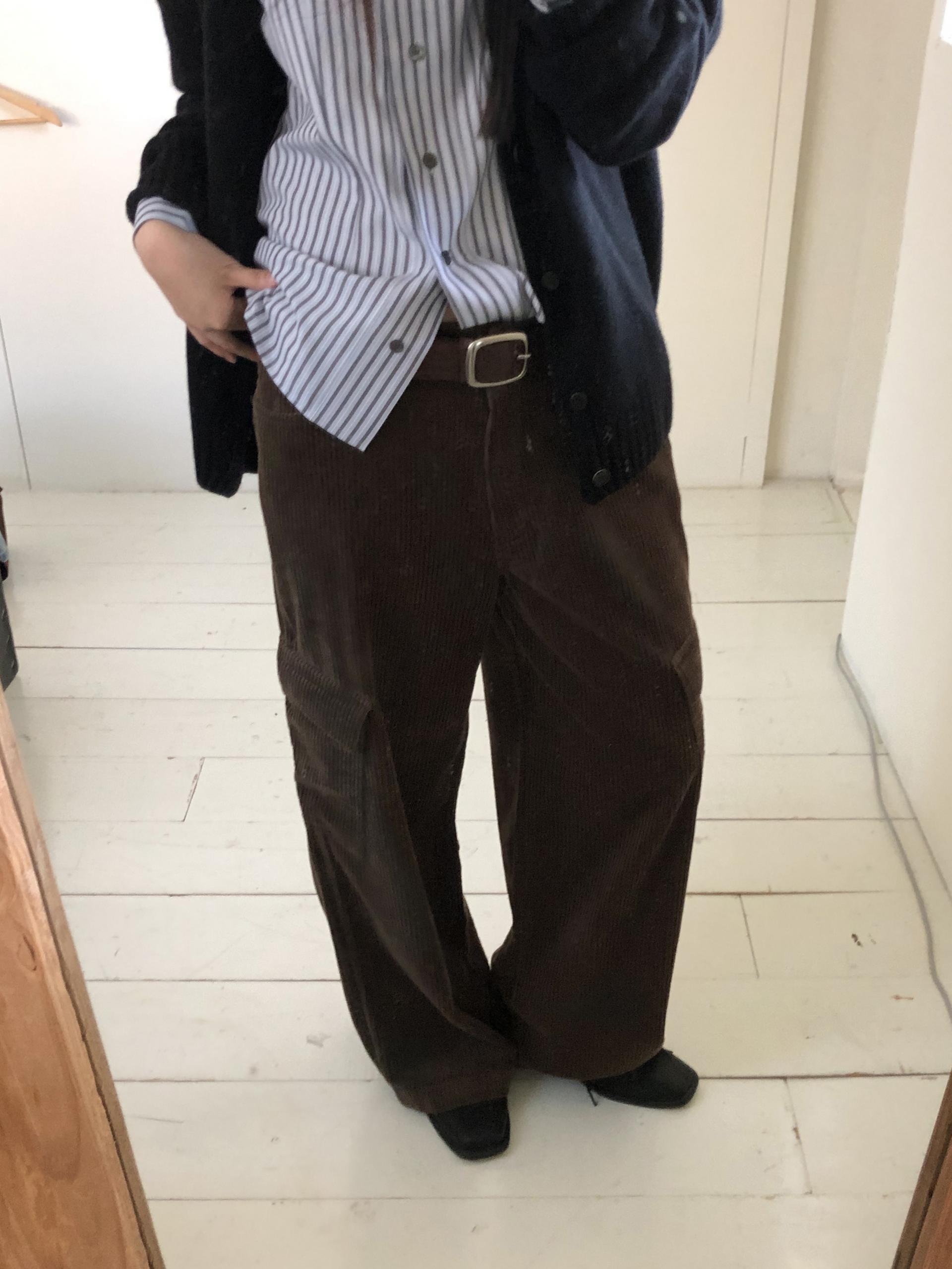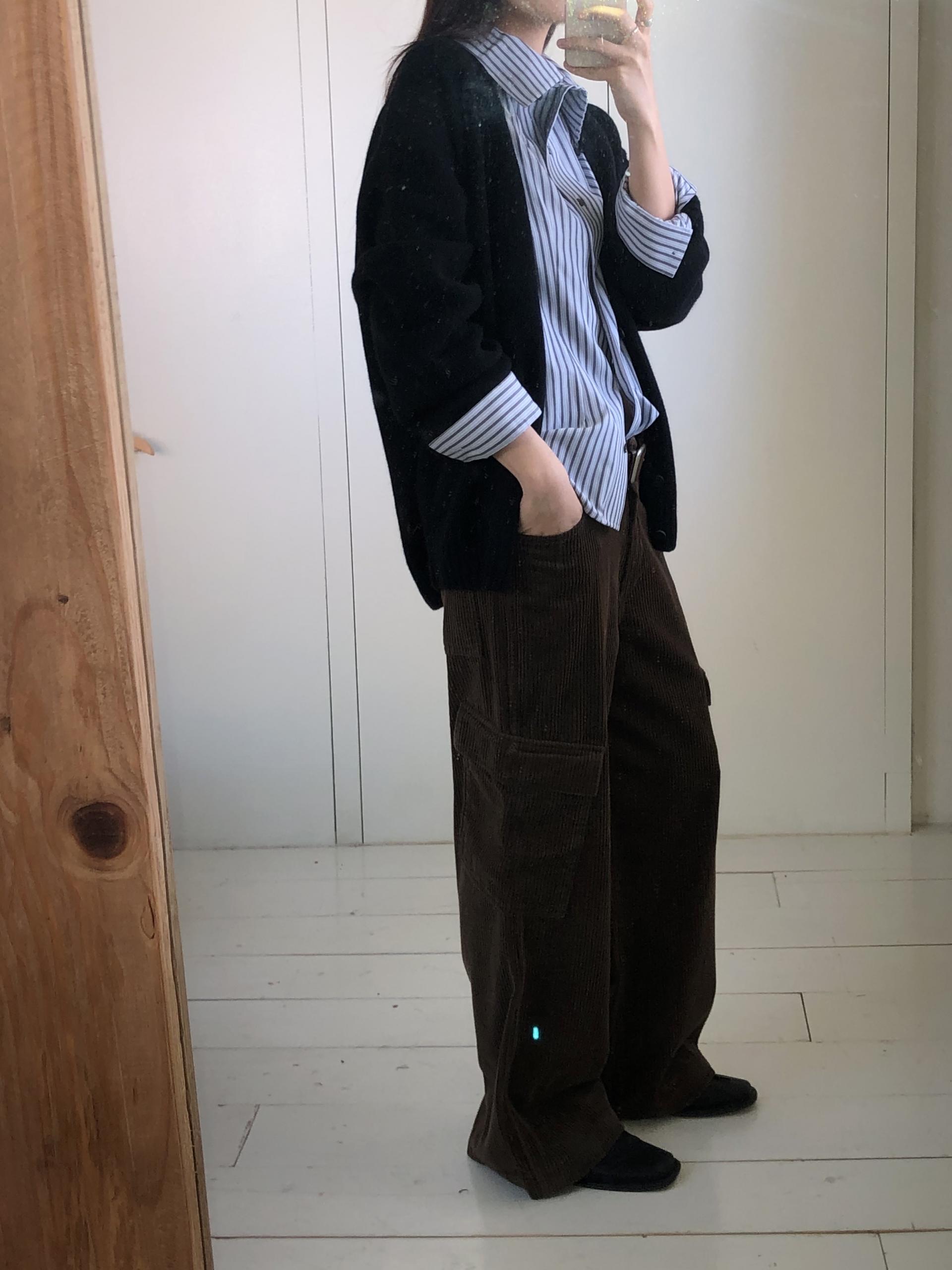 코듀로이 팬츠는 특히 색감이 있는 아이템이 사랑을 많이 받는데, 도톰한 결의 질감이 두드러져 계절감이 잘 드러나기 때문이지 않을까.. 싶어요 !