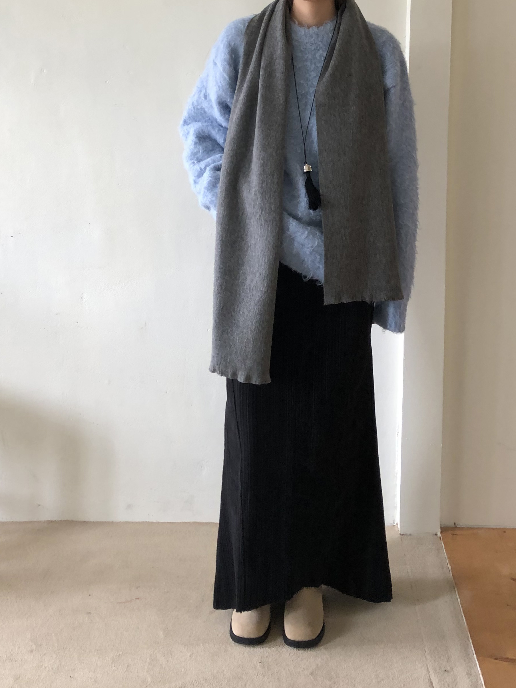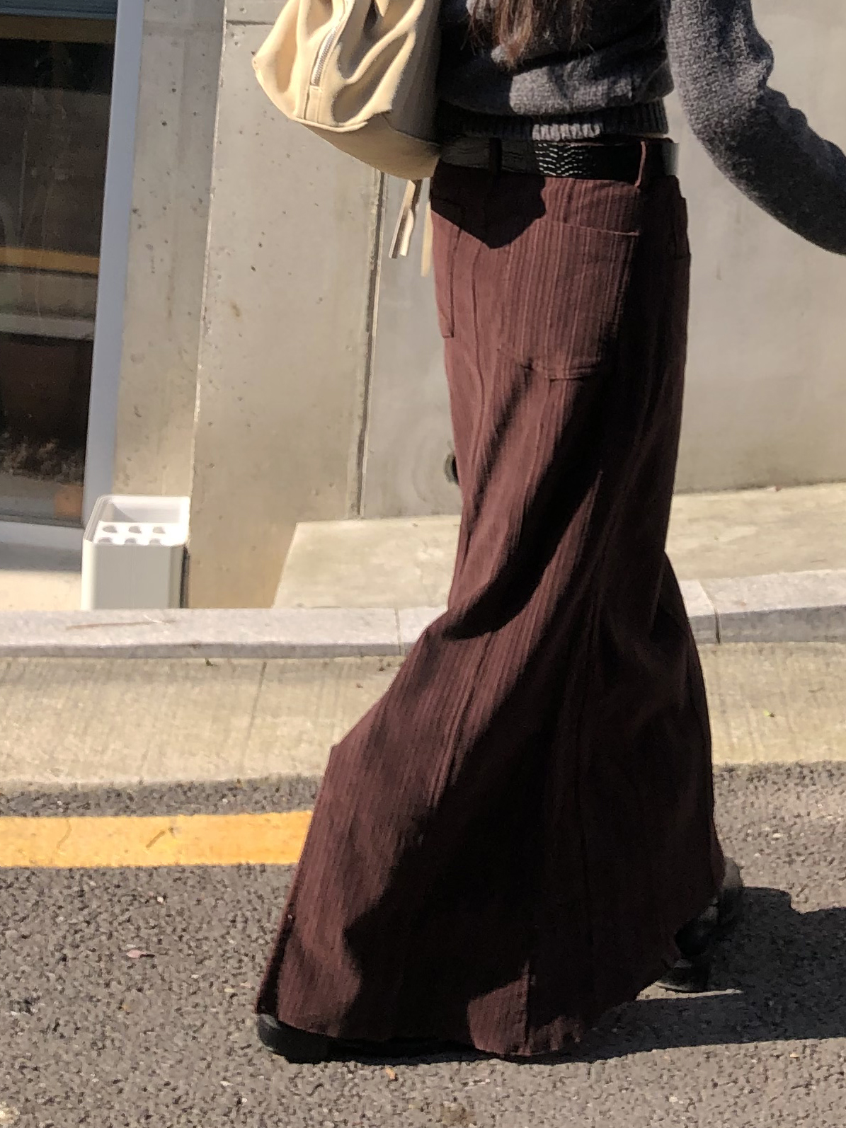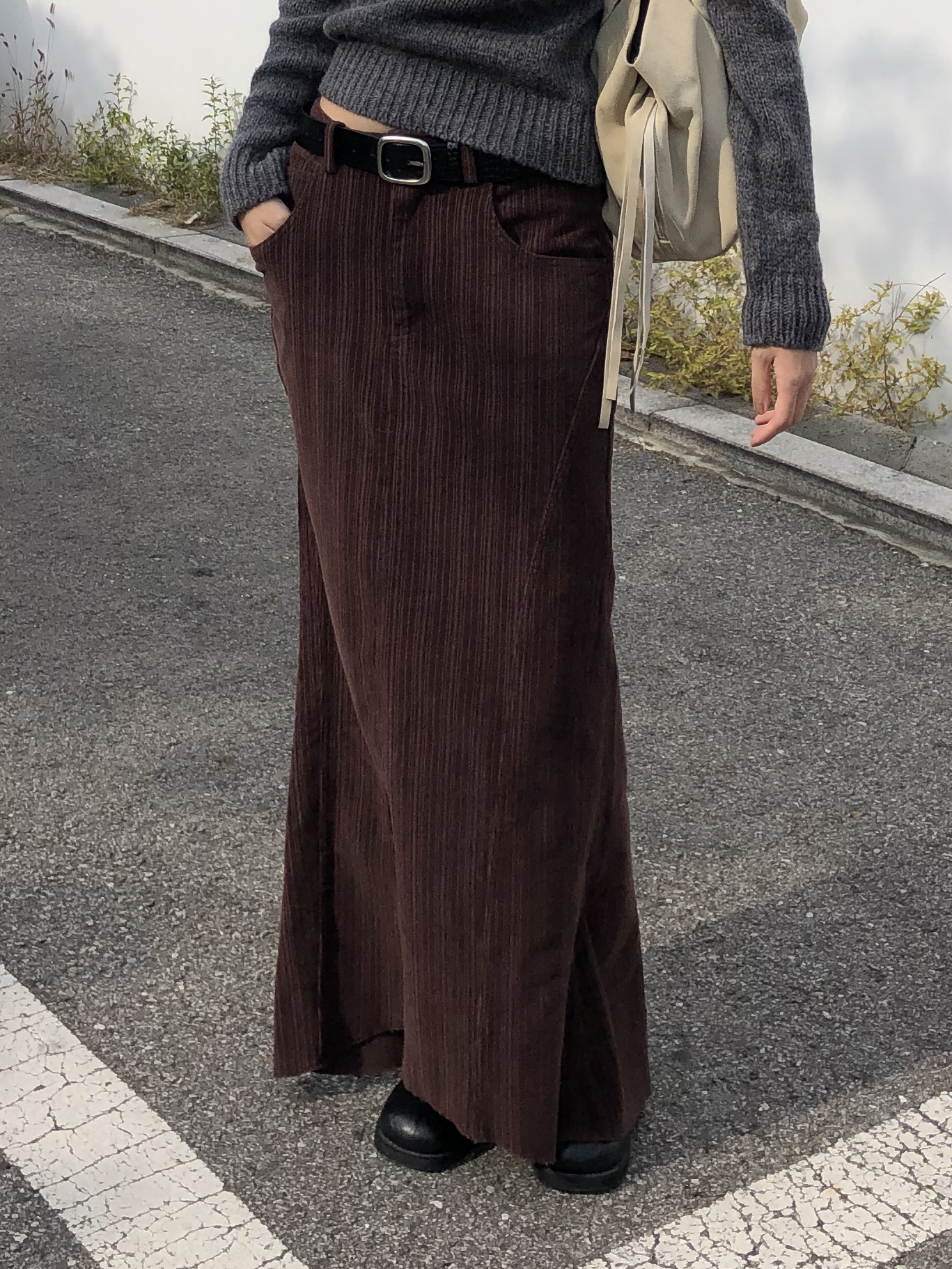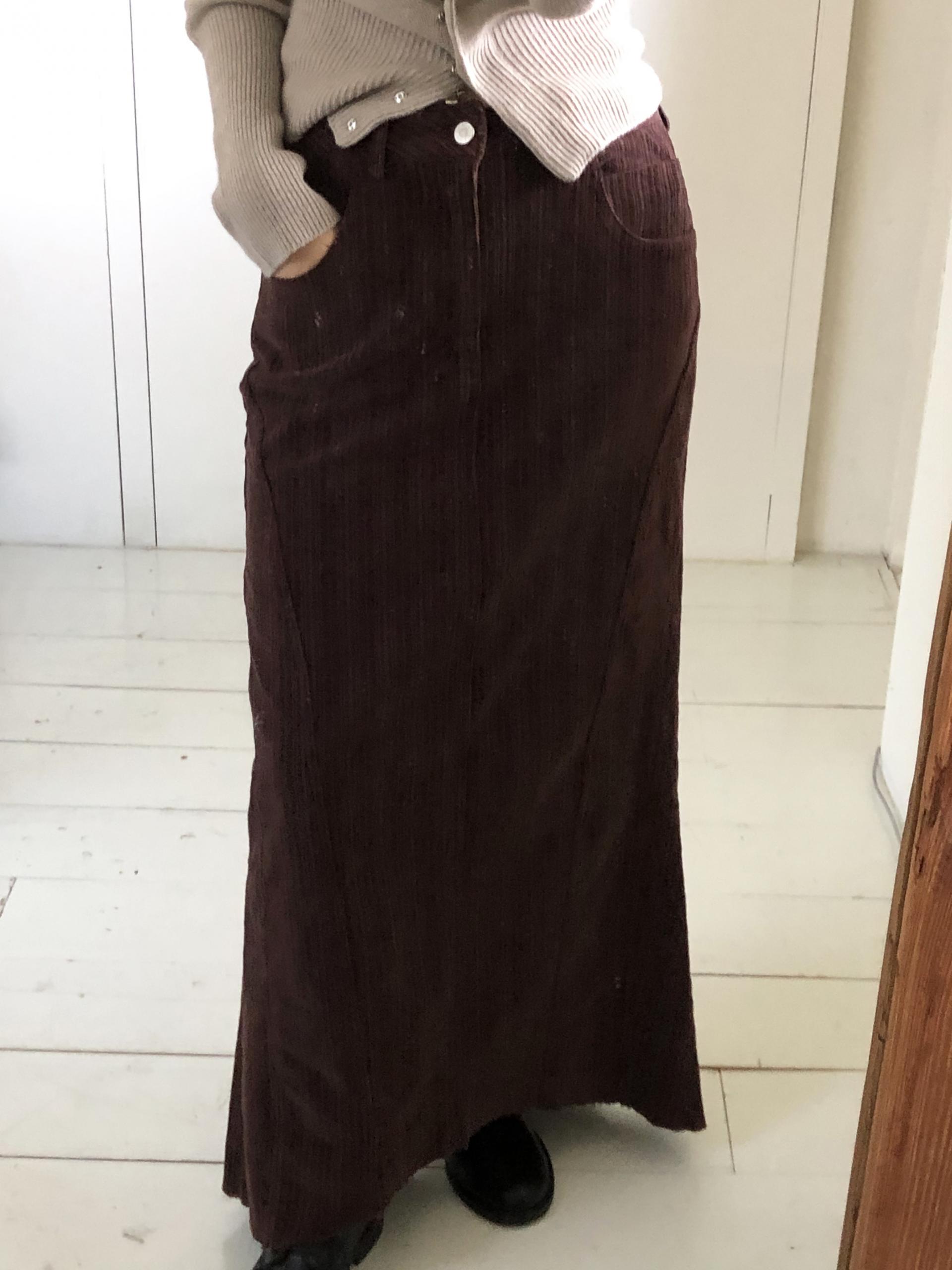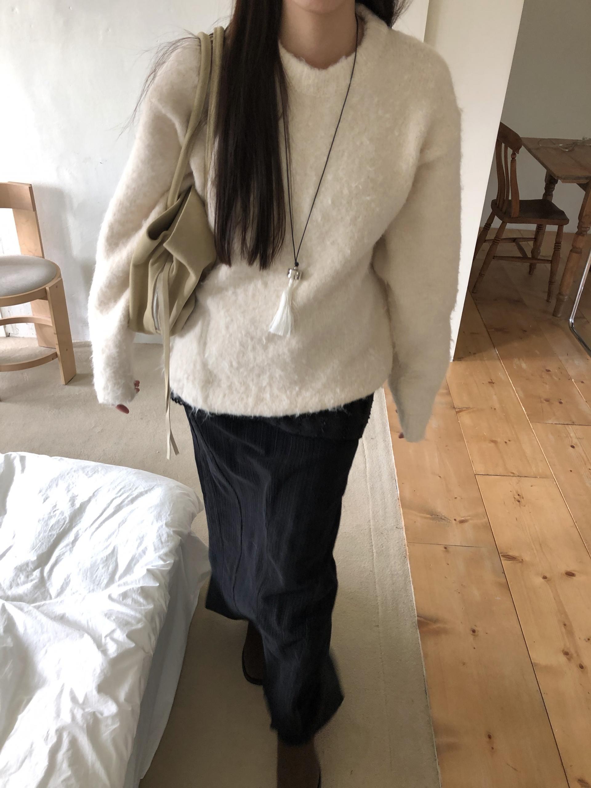 도톰하고 신축성 좋은 원단을 사용했어요. 롱 스커트일수록 원단이 뻣뻣하면 걷는 게 일인데, 뒷트임까지 있어서 편하게 착용 가능합니다.