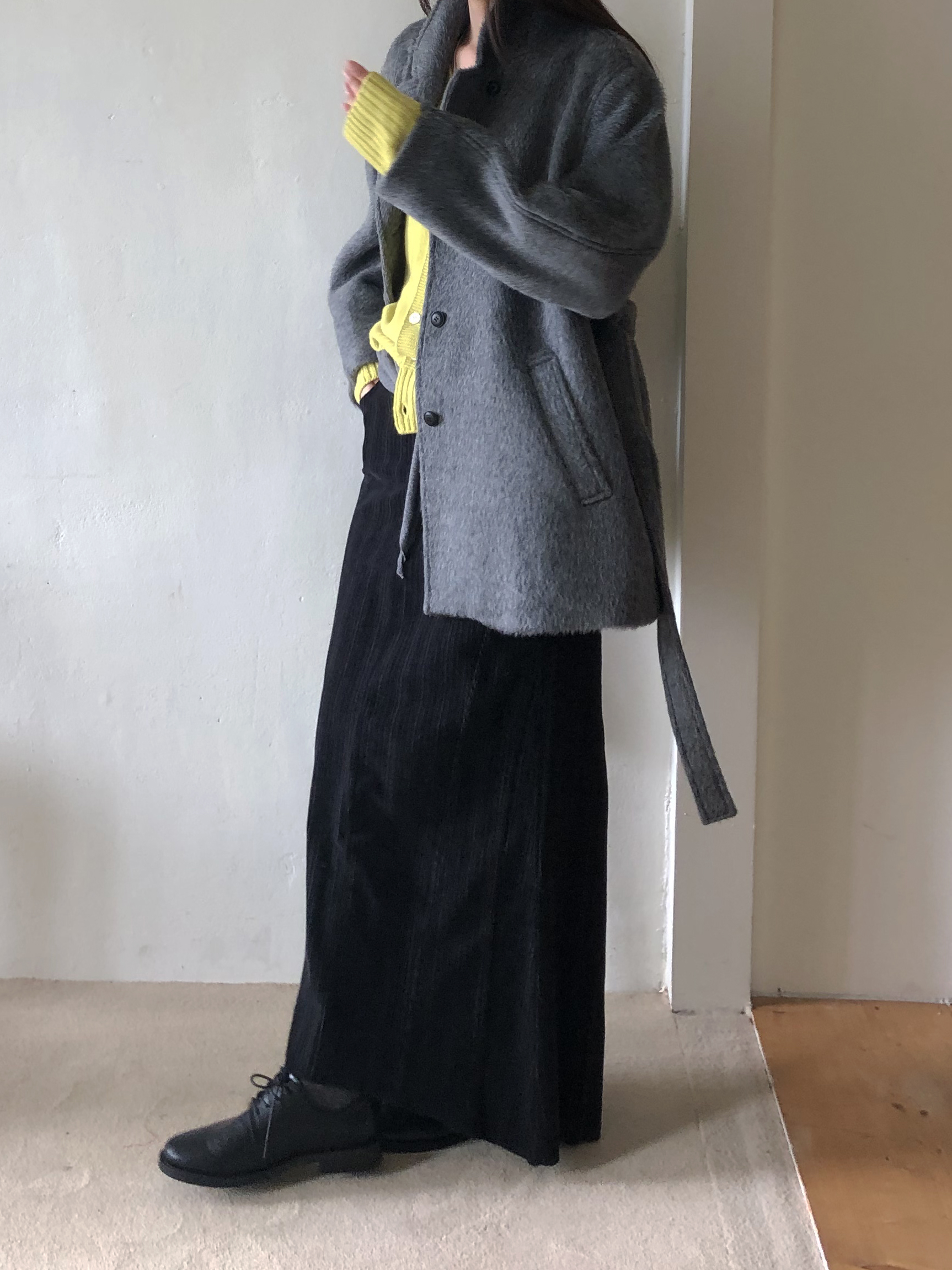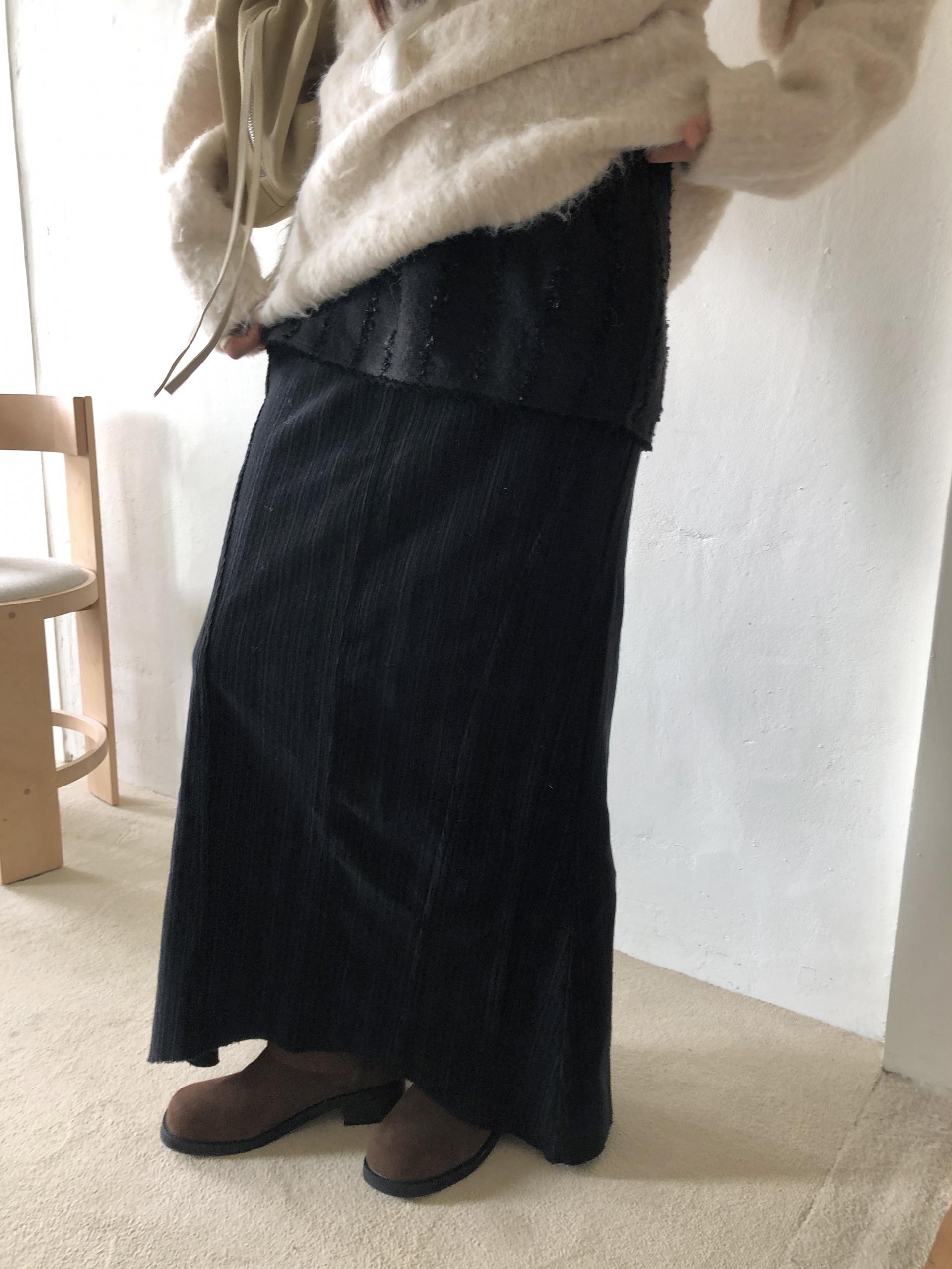 섬세한 절개 패턴의 디자인으로 골반을 잡아주면서 아래로 갈수록 세미 머메이드 라인으로 퍼지는 실루엣입니다. 롱한 기장감과 독특한 실루엣이라 추운 겨울에도 스타일리시하게 입기 좋아요.
