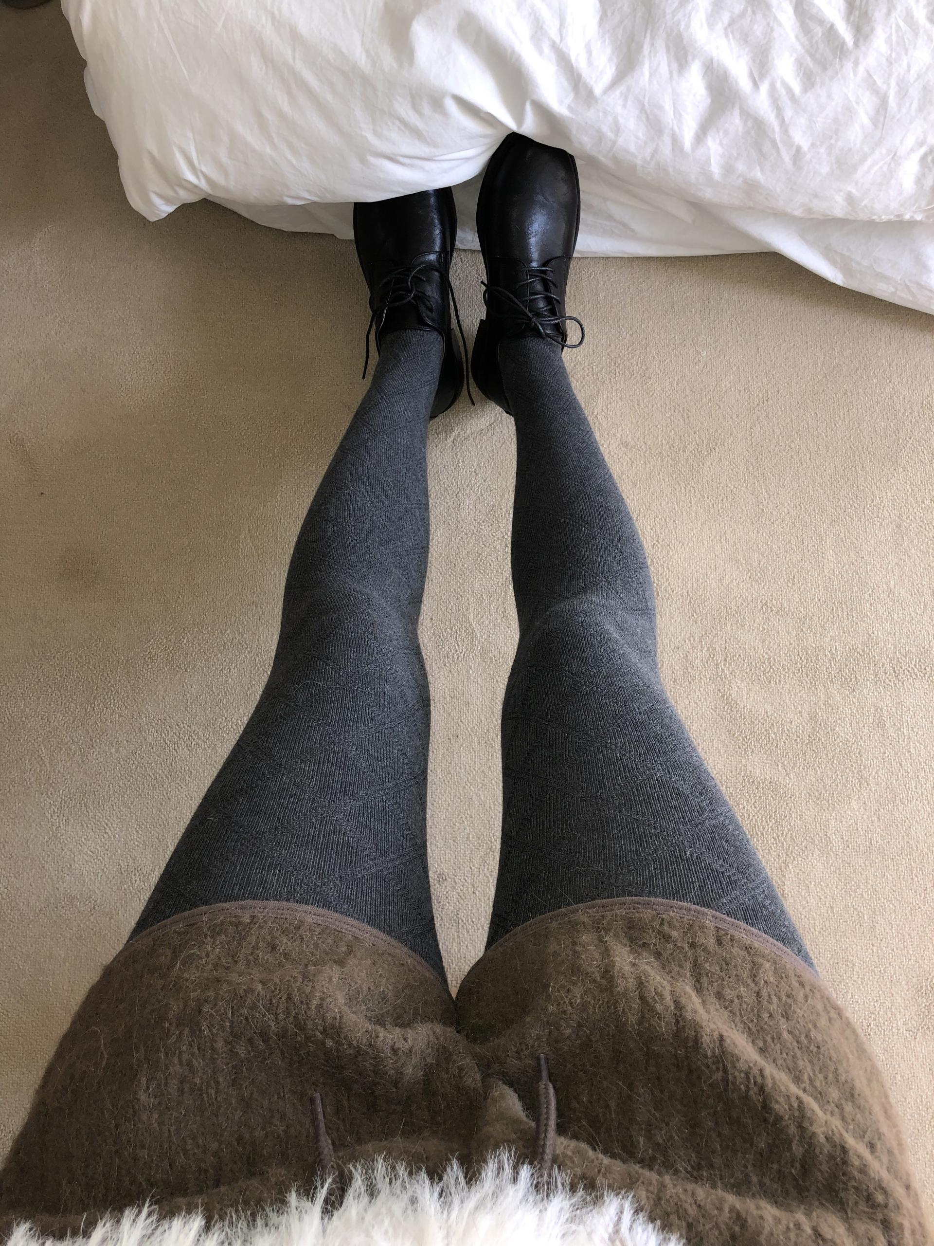 도톰하고 신축성 좋은 겨울 소재로 스커트나 짧은 팬츠 스타일링할 때 함께 매치하기 좋은 아이템이에요.