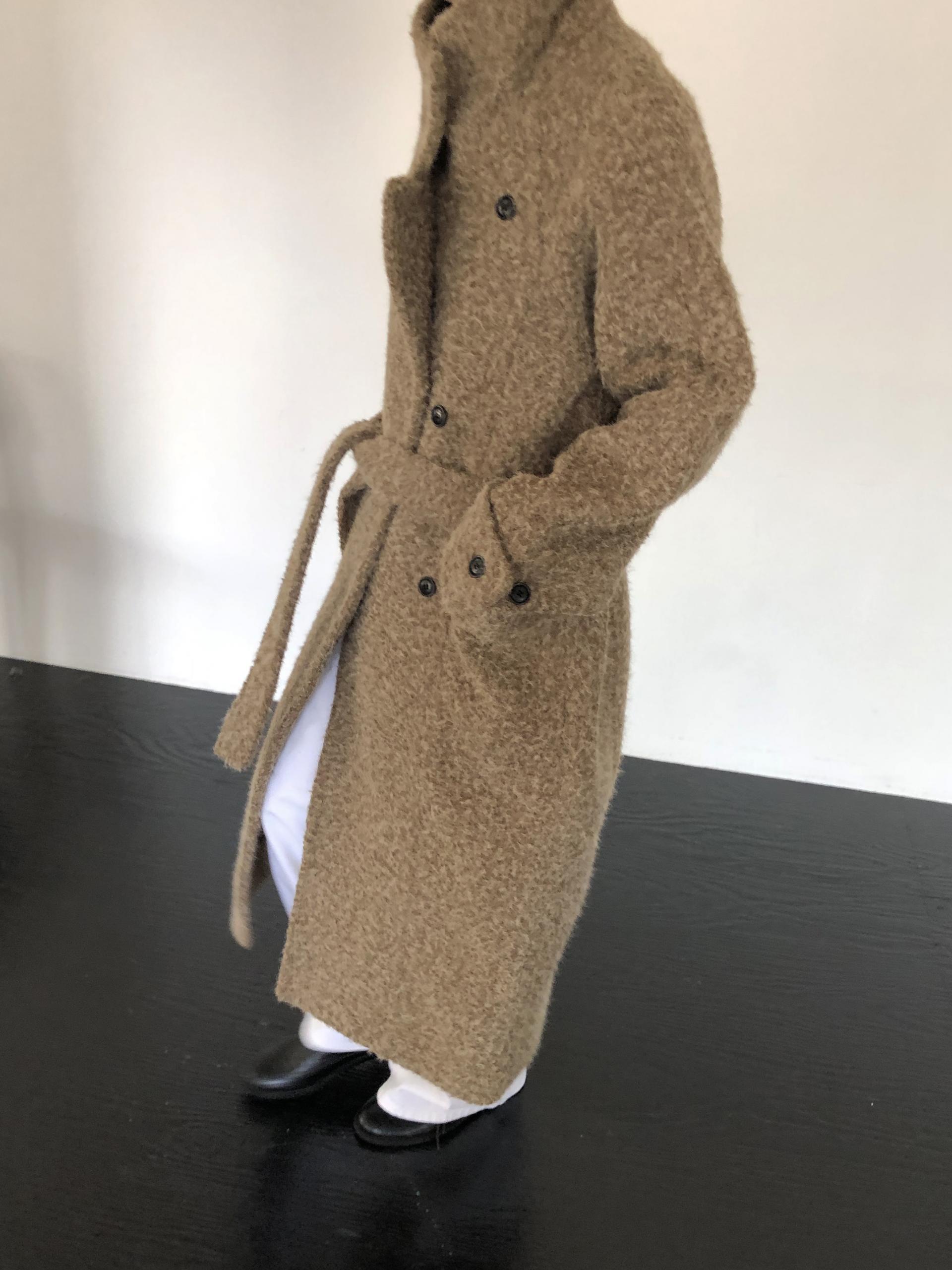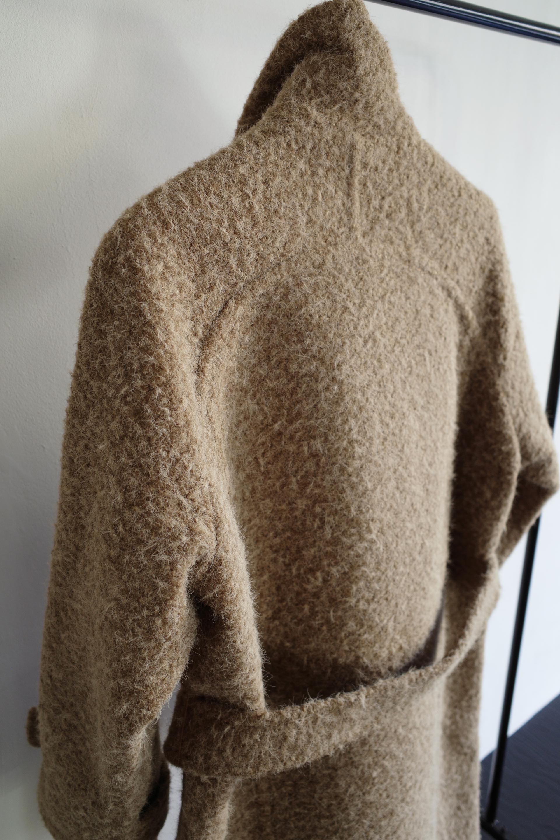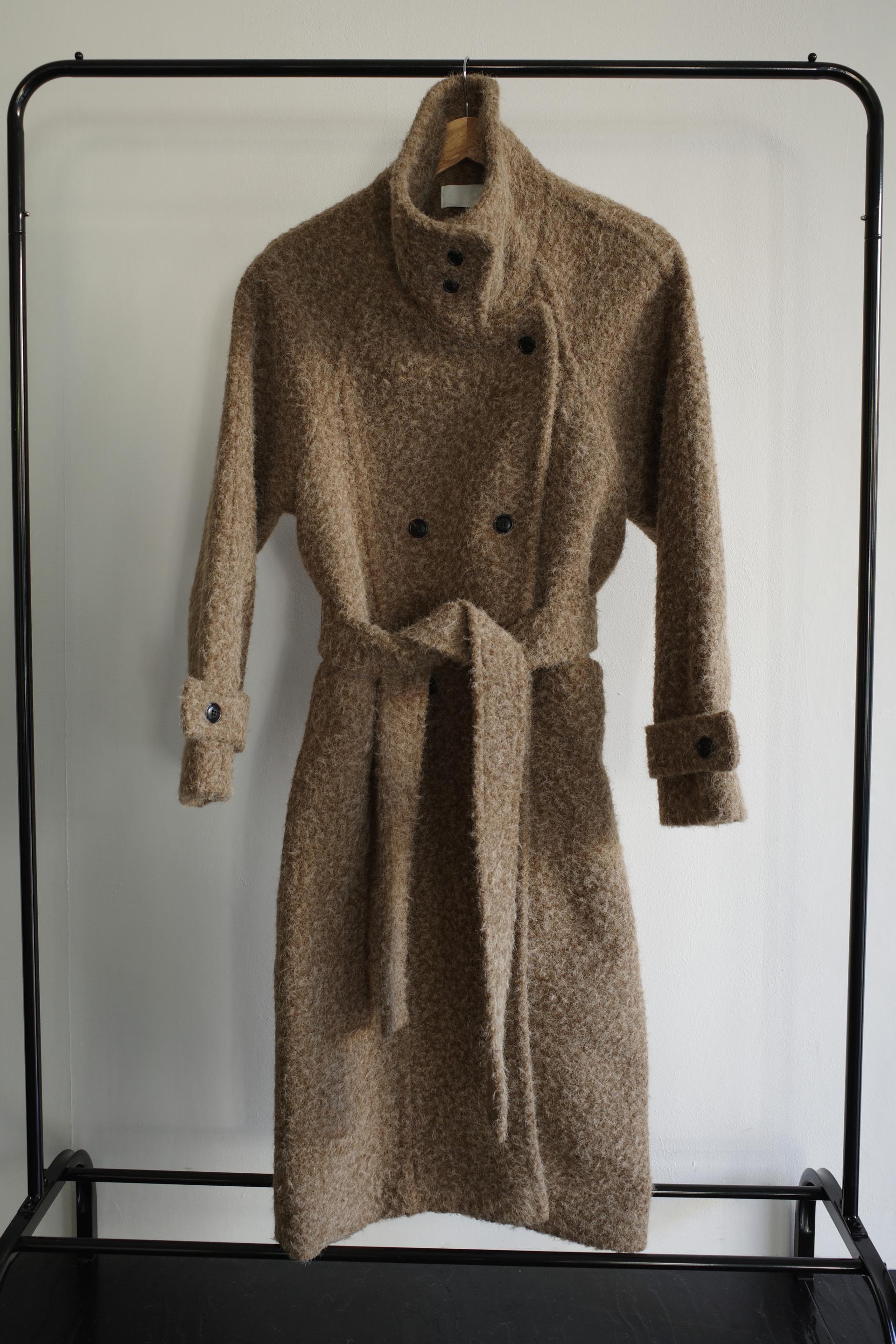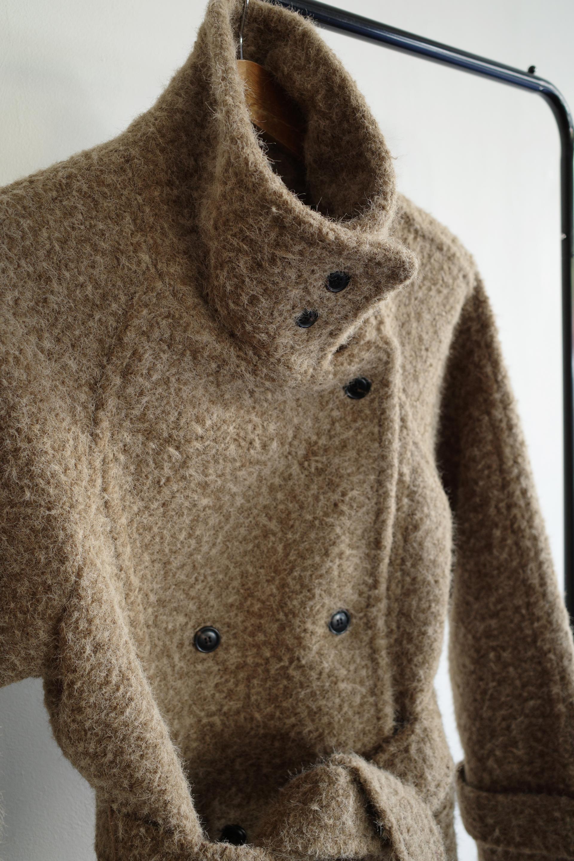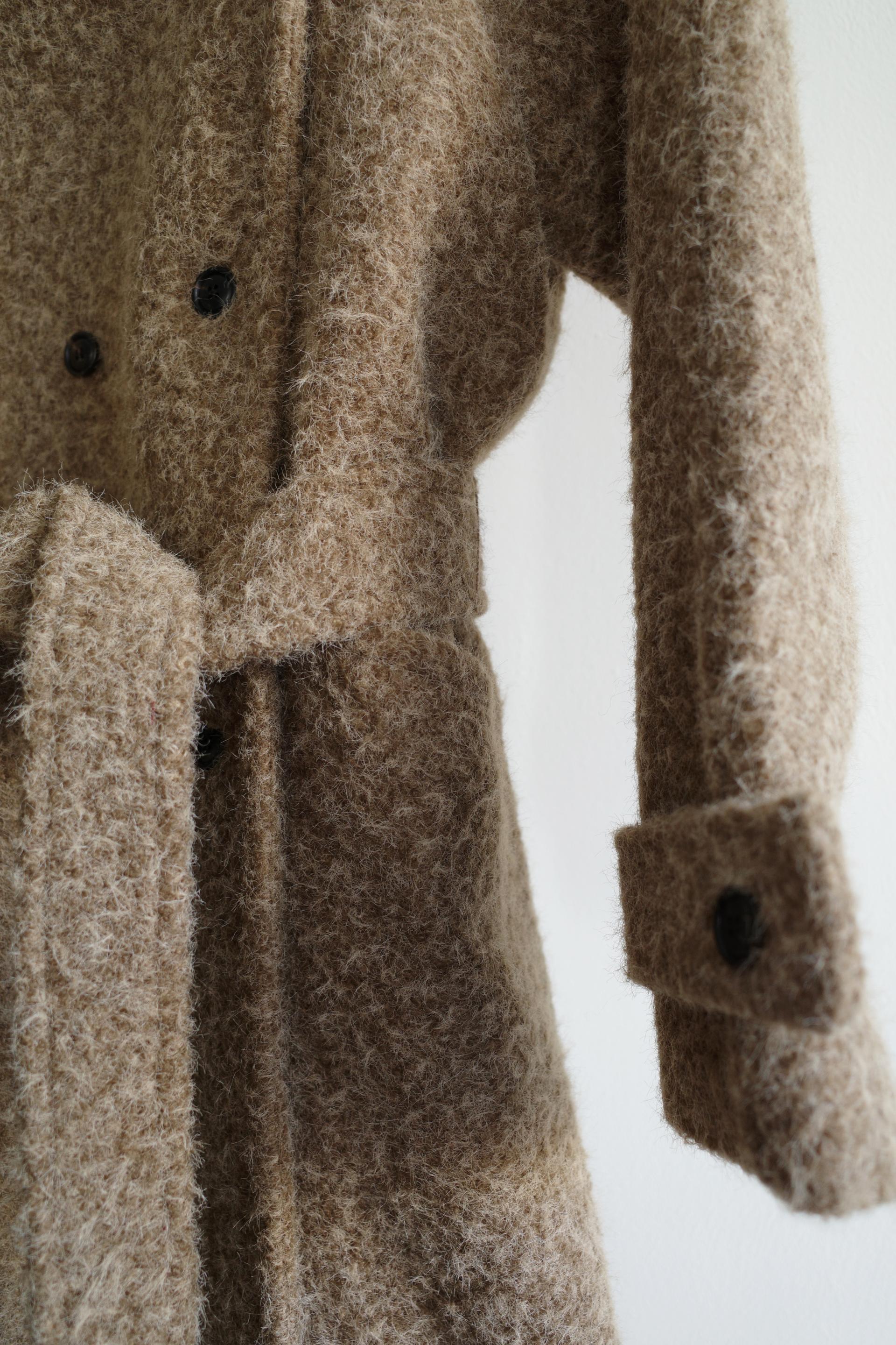 넉넉한 오버핏과 볼드하게 연출되는 하이넥 디자인으로 보온성은 물론 도시적인 분위기가 느껴집니다. 롱~맥시 중간의 꽤나 긴 기장으로 실루엣에서 오는 드라마틱함이 있어요. 여기에 더해진 벨티드 디테일로 오픈했을 때와 또 다른 분위기를 연출합니다.