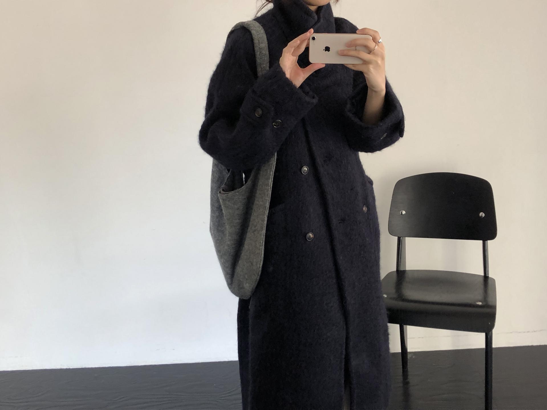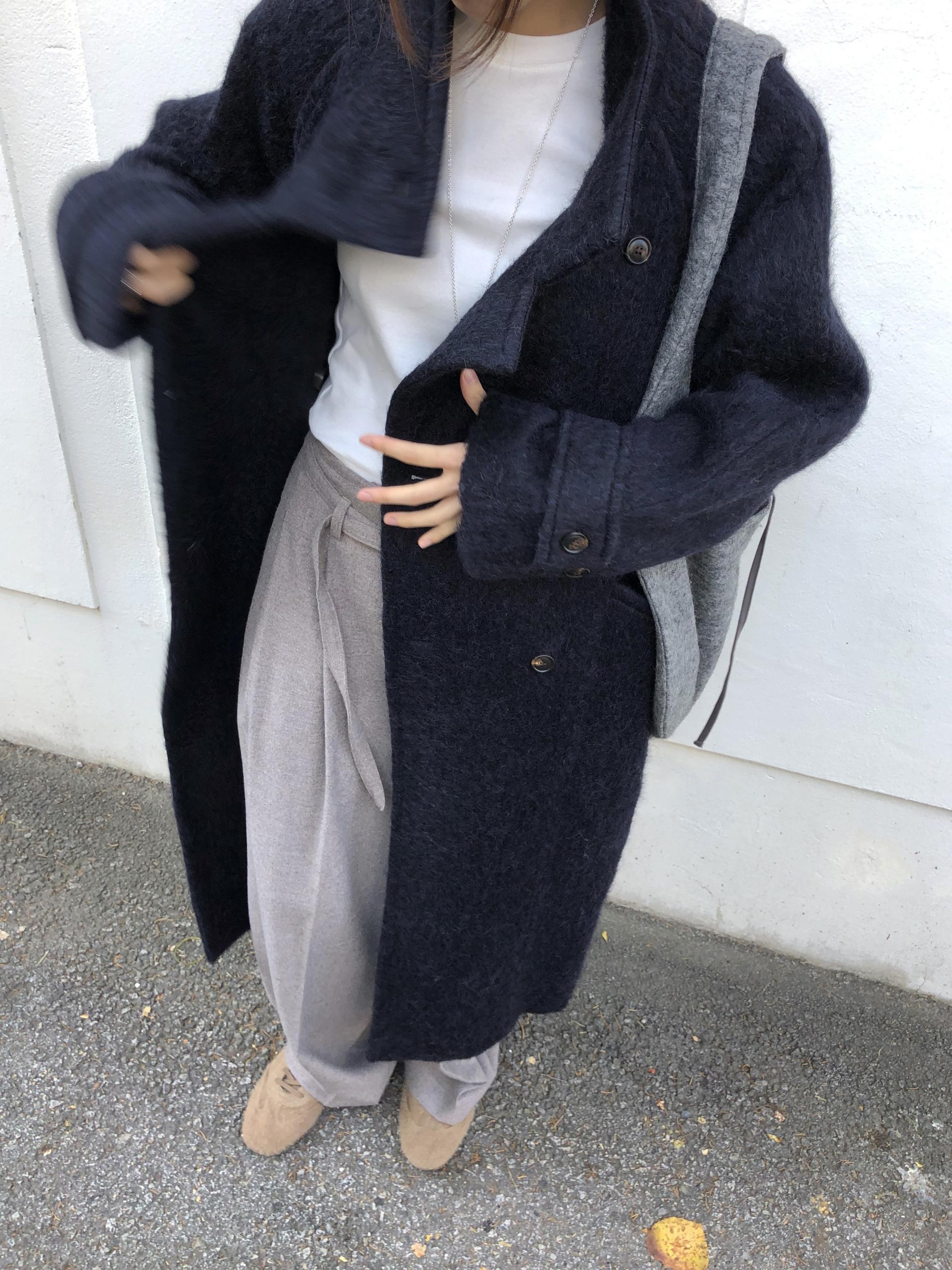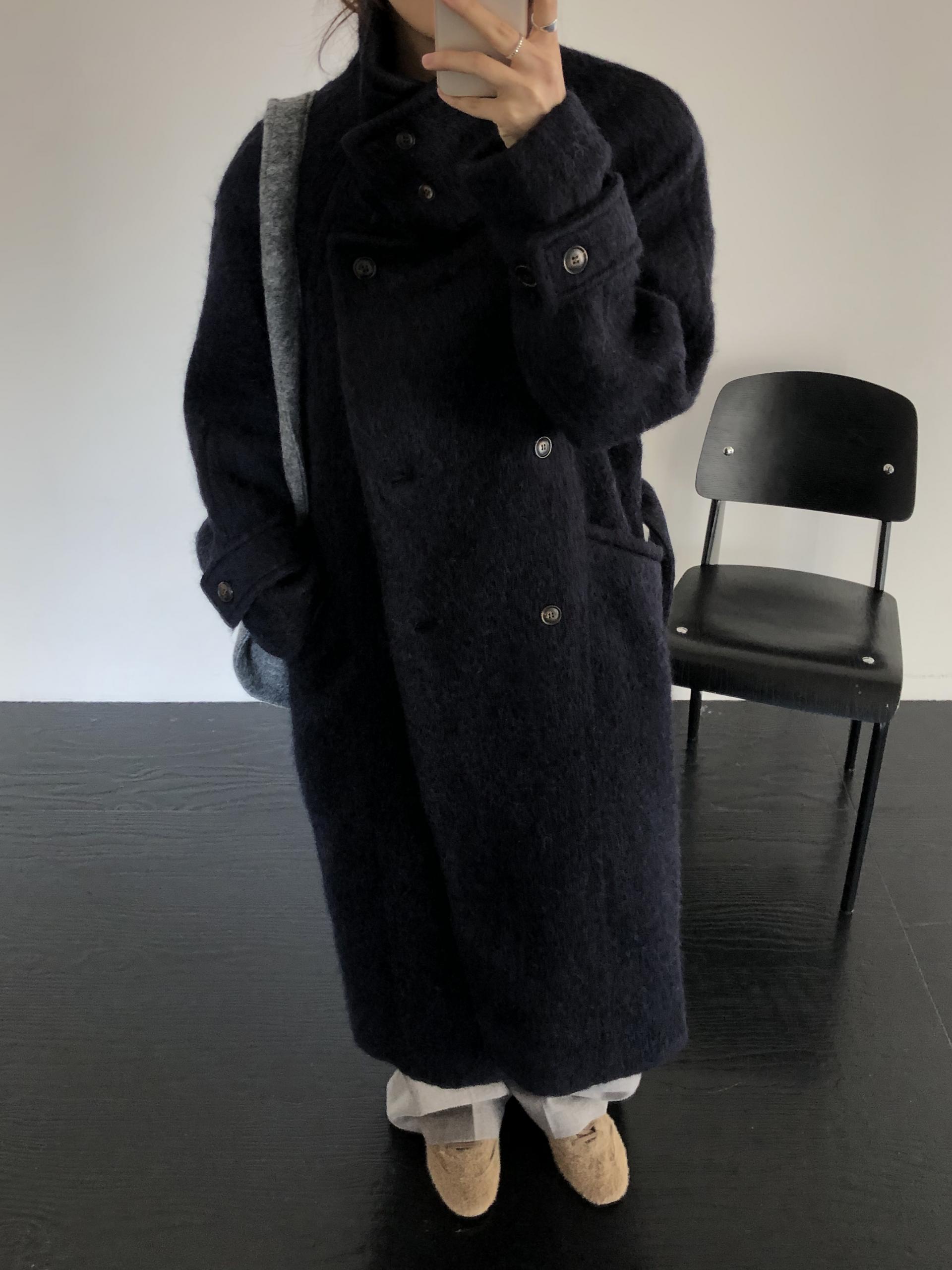 베이지~브라운의 중간 색감, 헤어감이 잘 드러나는 컬러라 더욱 매력적이에요. 온기가 감도는 따뜻한 분위기를 더해줍니다. 코트의 전체적인 분위기와 잘 어울리는 네이비는 클래식하면서도 도시적이에요. 캐주얼부터 포멀한 스타일링까지 아우르는 컬러로 손이 자주 갈 것 같습니다.