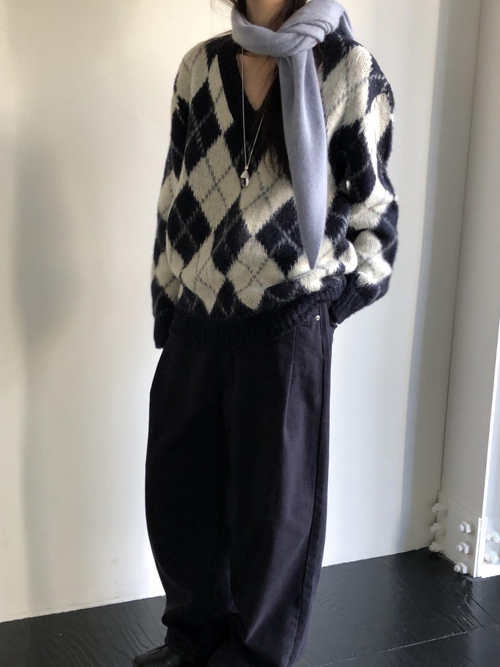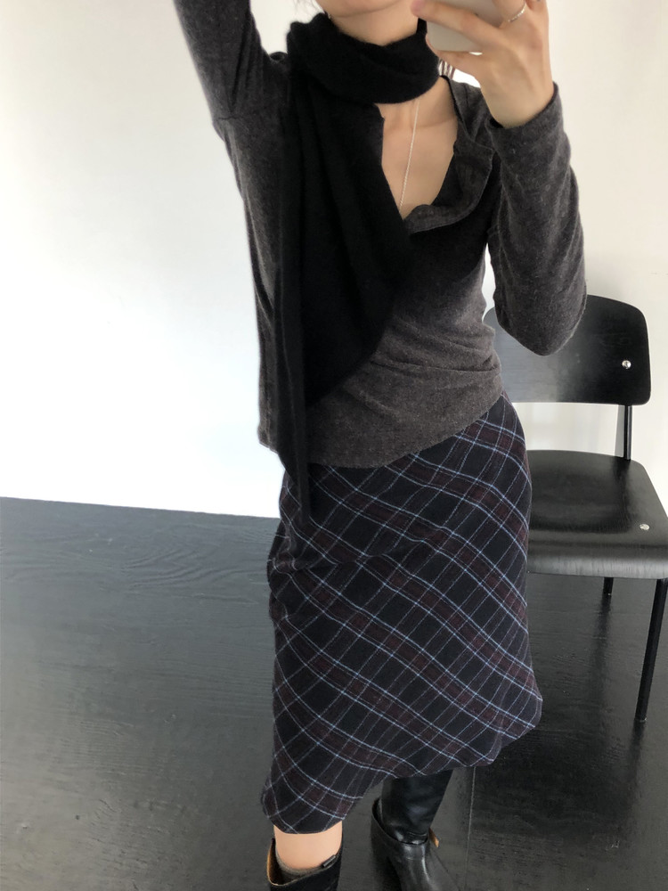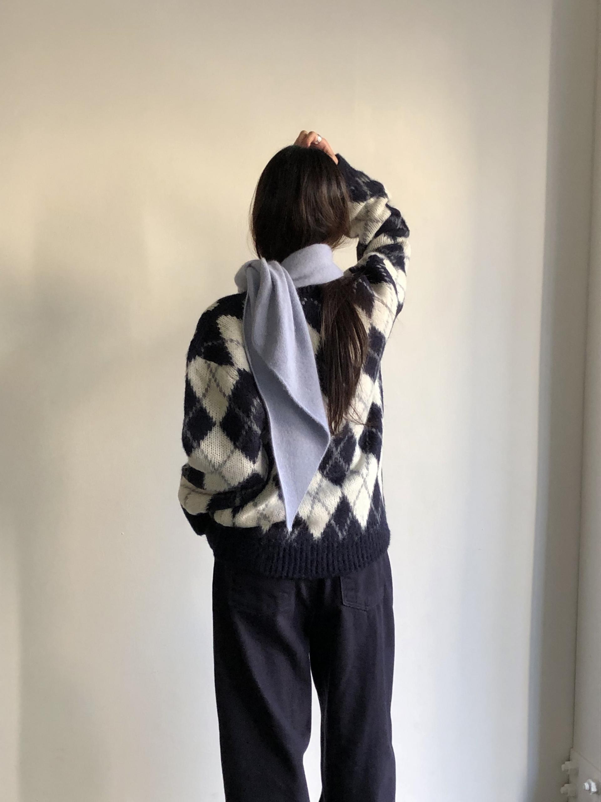 전체적인 형태는 양 끝을 사선으로 커팅해, 자연스럽게 흘러내리는 예쁜 드레이프 실루엣을 연출해요. 이렇게 끝이 사선인 패턴이 목에 둘렀을 때 매듭 모양도 깔끔하게 떨어지고, 끝으로 갈수록 볼륨감이 과하지 않아 더 세련된 이미지를 주더라구요 :)